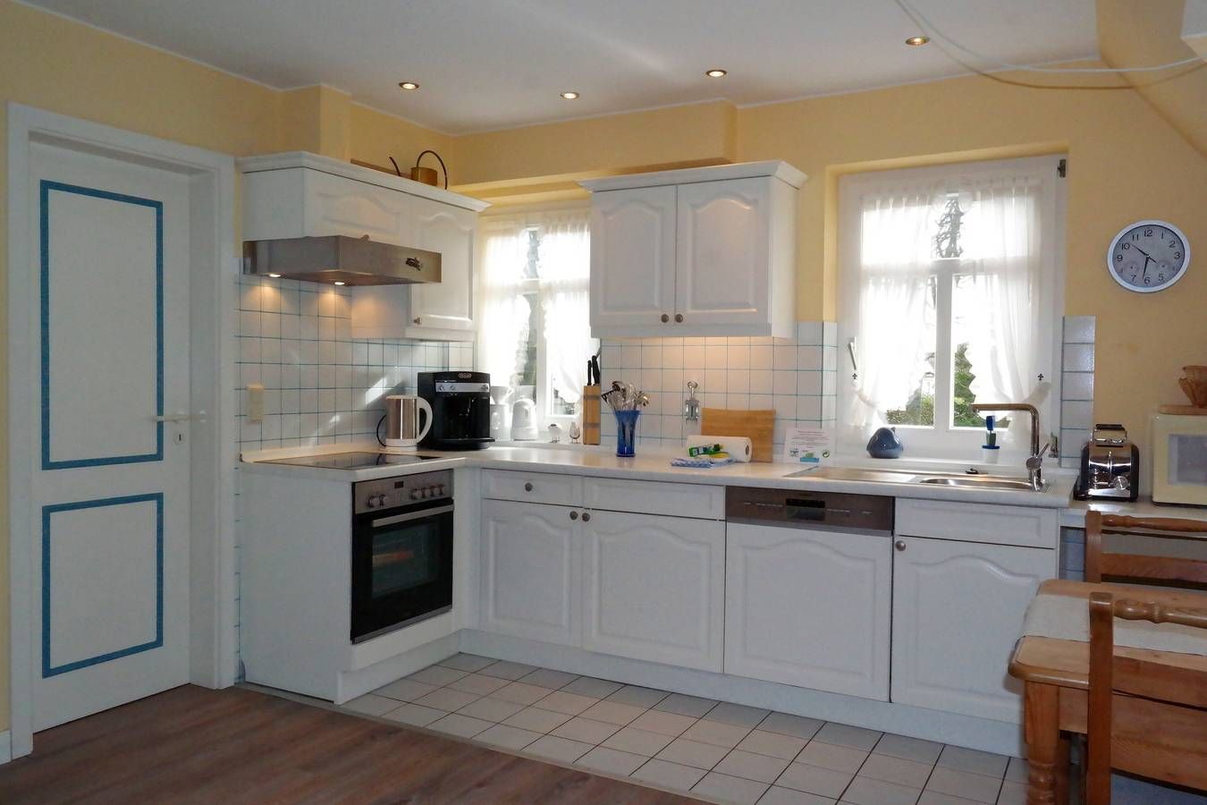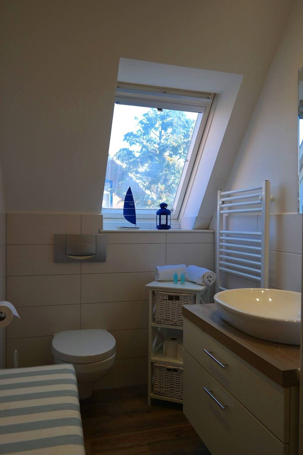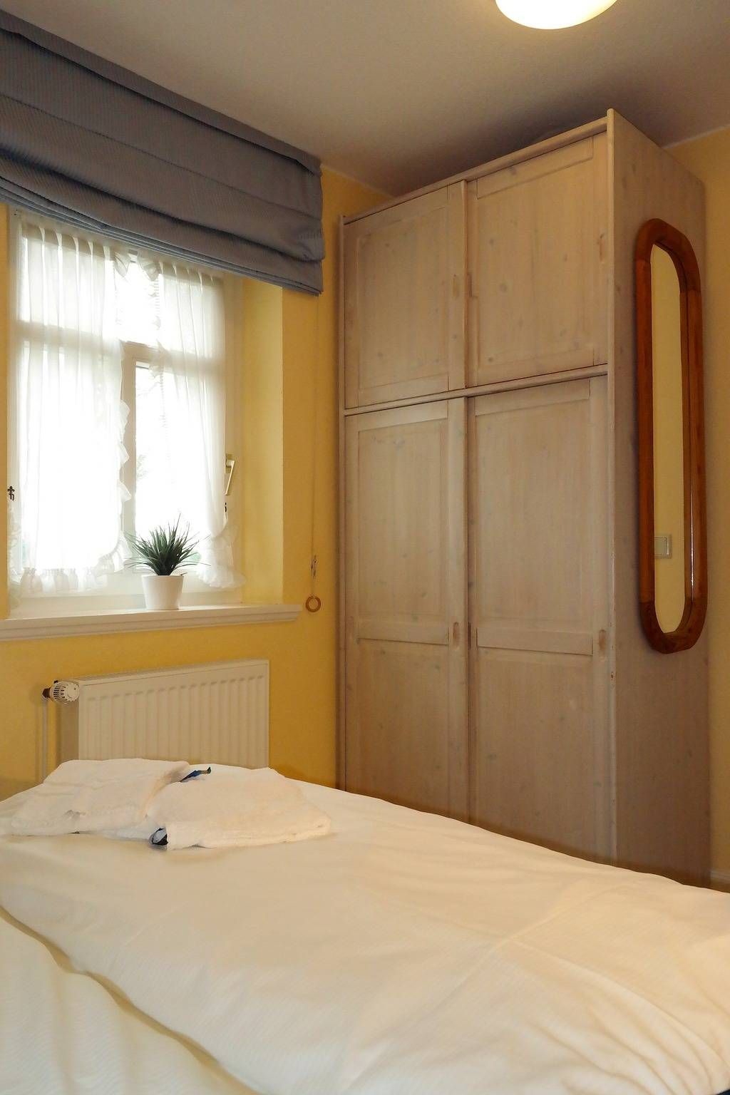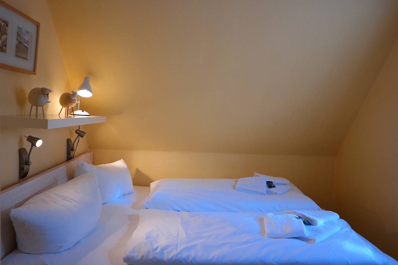 Zentral in Wyk liegen die drei Wohnungen des Hauses Gud Tidj in einer Ferinhausanlage auf einem ca. 3000 m² großen Grundstück mit viel Platz zum Toben und Spielen für unsere kleinen Gäste. Selbstverständlich sind Spielgeräte vorhanden. Die gemütliche Ferienwohnung wurde liebevoll eingerichtet und dekoriert und verfügen über eine umfassende Ausstattung die keine Wünsche offen lässt.Kabel-TV, Telefon und Stereoanlage sowie in das Wohnzimmer integrierten Küchenzeile mit Backofen, Geschirrspüler, Wasserkocher usw. bieten Ihnen den gehobenen Komfort, den Sie von der Wohnung erwarten dürfen. Die Wohnung 03 (ca. 35 m²) befindet sich im 1. OG und verfügt über ein Schlafzimmer mit Doppelbett. Außerdem gehört ein Schwimmbad, Sauna und ein Fitnessraum mit Crosstrainer, Ergometer und Schrägbank zur Anlage. Nur drei Gehminuten zur Promenade und zum großen Badestrand. In unmittelbarer Nähe befinden sich der Park an der Mühle sowie alle Erholungs- und Einkaufsmöglichkeiten, Cafés & Restaurants. Der Fährhafen ist in wenigen Minuten zu Fuß erreicht.