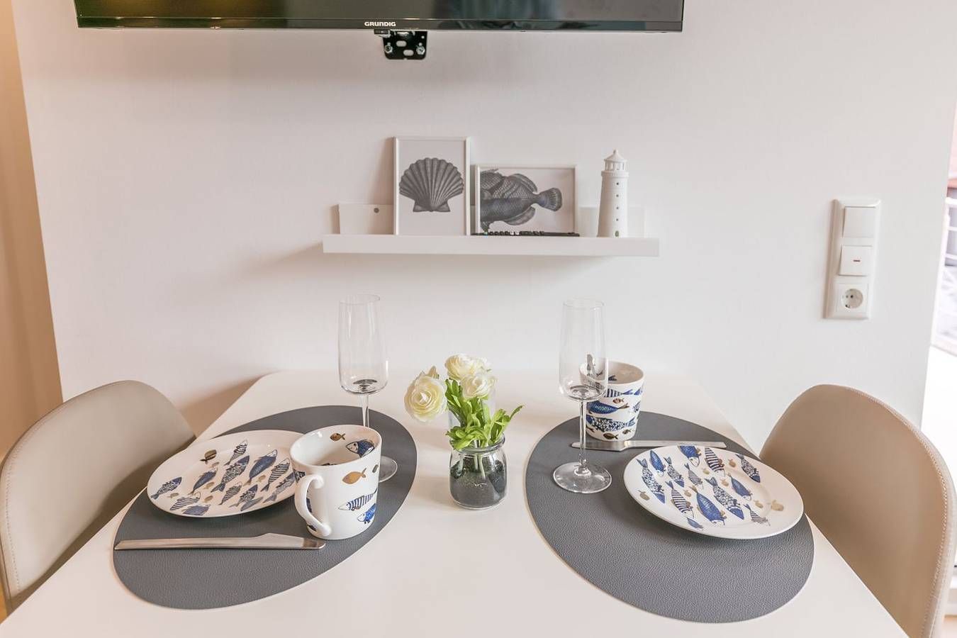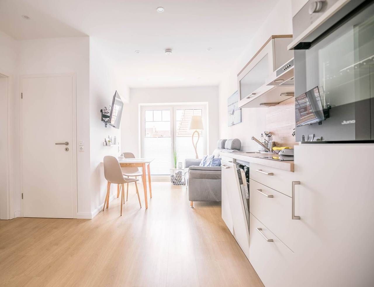 Ankommen und wohlfühlen! Die gemütlich und modern eingerichtete Neubauwohnung bietet für 2 Personen Platz, um einen wunderschönen Urlaub in Büsum zu verbringen. Den Strand und das lebendige Zentrum erreichen Sie fußläufig in nur wenigen Gehminuten. Der Hafen mit vielen maritimen Punkten ist nur 150m entfernt! Für Ihr Fahrzeug gibt es einen separaten Unterstellplatz am Haus und für Ihre Fahrräder einen abschließbaren Fahrradraum. Die Ferienwohnung Hafenkoje erreichen Sie über eine Außentreppe. Wir freuen uns auf Sie - in der kleinen aber feinen Fewo "Hafenkoje"! Wohnzimmer: Sofa, Flachbild TV, DAB+ Radio, Esstisch mit 2 Stühlen, Plissee, Außenrollo, Zugang zum Balkon Küche offen zum Wohnzimmer: Cerankochfeld mit 2 Platten, Backofen, Kühlschrank mit Eisfach, Geschirrspüler, Senseo Pad-Kaffeemaschine, Wasserkocher, Toaster, Eierkocher Schlafzimmer: Boxspringbett (200cmx 180cm x 60cm), Kleiderschrank 3-türig, Nachttisch mit Nachtleuchten, Ganzkörperspiegel, Flachbild TV, Plissee, Außenrollo, Fliegengitter Bad: Dusche, WC Spiegel, Waschbecken mit Unterschrank, Haartrockner, Fenster mit Plissee, Fliegengitter Haus & Service: überdachter Balkon mit Balkonmöbel und Sichtschutz in Geländerhöhe, Garderobe, 1 offener kostenloser Garagenparkplatz (2,47m breit und 5,00m lang), Fahrradabstellraum abschließbar, Bücher, Wäsche optional dazu buchbar Für einen last Minute Urlaub in dieser Unterkunft melden Sie sich bitte telefonisch bei uns.