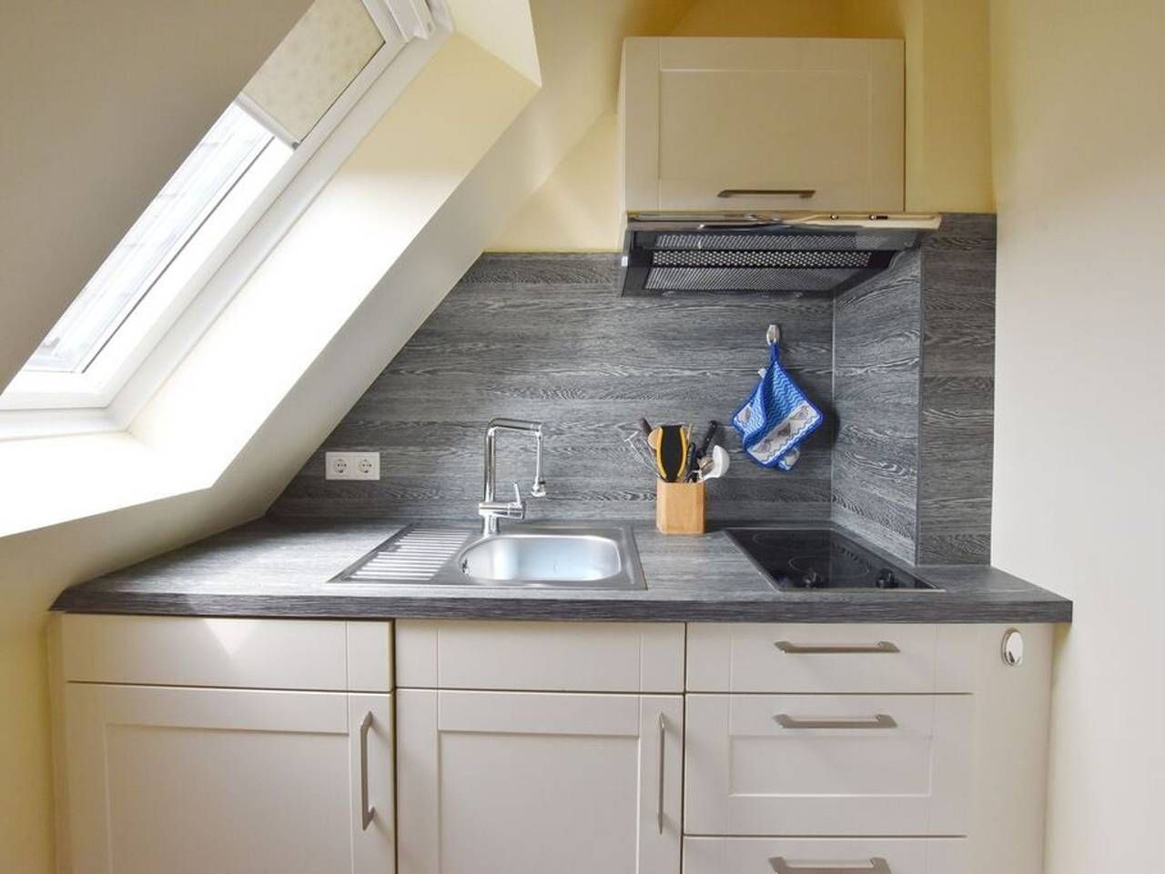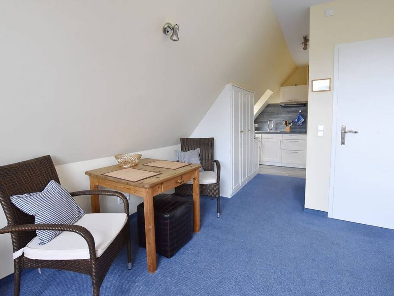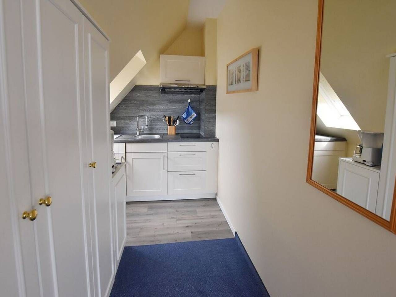 1 Zimmer-Nichtraucherwohnung (DG), Wohn/Schlafraum mit fest stehendem Doppelbett ( französisches Maß ), Kleiderschrank, Eßecke, Fernseher, offene Pantry Küche, Badezimmer mit Dusche, WC und Waschbecken, Waschmaschine im Haus (gegen Gebühr) , 1 PKW-Stellplatz