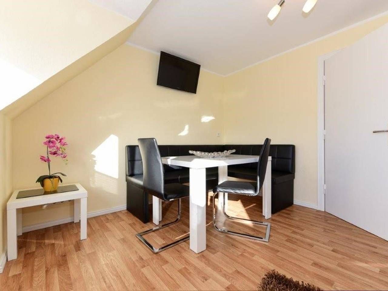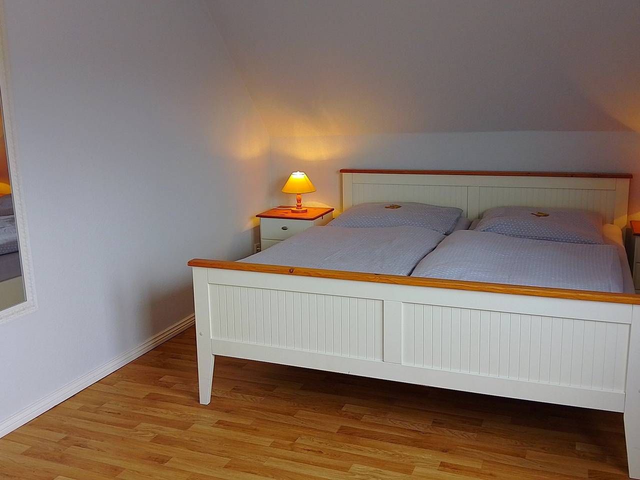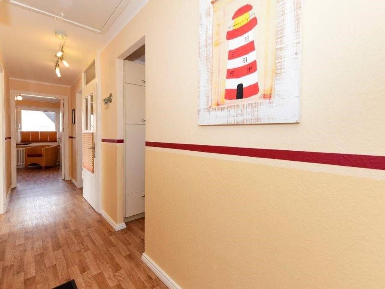 Die helle, freundliche Obergeschosswohnung ist 80m² groß und bietet Platz für 2 bis 5 Personen. Es erwartet Sie eine geräumige Ferienwohnung mit einer separaten Küche, einem gemütlichen Wohnzimmer mit einer Essecke, drei Schlafzimmern und einem Duschbad. Ein schöner Gartenplatz mit Strandkorb lädt zum Entspannen ein. Ihre Fahrräder können untergestellt werden und es steht ein Stellplatz für Ihren PKW zur Verfügung. Das Zentrum ist fußläufig in ca.10 Minuten erreichbar. Hier finden Sie die Flaniermeile am Sandwall, wo auch der Badestrand ist. Viele kleine Läden laden zum Stöbern und einige Cafés und Restaurants zum Verweilen ein. Von hier aus haben Sie einen wunderschönen Blick auf die Halligen und das Wattenmeer. In anderer Richtung erreichen Sie auch den Südstrand fußläufig in 10 Minuten. Ihre Unterkunft befindet sich auf der Insel Föhr, der Zweitgrößten Insel in der Nordsee. Föhr liegt mitten im Nationalpark Schleswig-Holsteinisches Wattenmeer und hat durch den Golfstrom ein mildes Seeklima. Schon bei der Anreise mit der Fähre durch das Wattenmeer, entlang der Sandbänke, fängt der Urlaub an. Vielleicht sieht man hier schon den ersten Seehund ;). Ob eine Fahrradtour durch die grüne Natur, ein Strandtag am Meer oder eine Wattwanderung - die Insel Föhr ist sehr vielfältig. Ein Urlaub auf der schönen Insel Föhr lohnt sich in jeder Jahreszeit. Das Team von Clausens Vermietung ist gerne behilflich bei der Objektsuche - sei es in der kleinen Stadt Wyk oder über Land in den schönen Friesendörfern. Diese geschmackvoll eingerichtete Ferienwohnung befindet sich im 1. Obergeschoss und ist ca. 80 m² groß. Die Aufteilung der Räumlichkeiten ist wie folgt: 1 Schlafraum mit Doppelbett, 1Schlafraum mit zwei Einzelbetten, 1 Schlafraum mit Einzelbett, 1 Wohnraum, 1 separate Küche, 1 Badezimmer mit Dusche. Auszeichnung: Haustiere nicht gestattet, Nichtraucher. Außenbereich: Parkplatz, Garten, Außensitzplatz mit Strandkorb, Unterstellmöglichkeit für Fahrräder. Küche / Haushalt: Backofen mit Ceranfeld, Filterkaffeemaschine, Geschirrspüler, Wasserkocher. Service: Bettwäsche/Handtücher, Waschmaschine und Trockner gegen Gebühr Unterhaltung / Kommunik.: Flachbild-TV, Satelliten-TV, WLAN-Zugang.