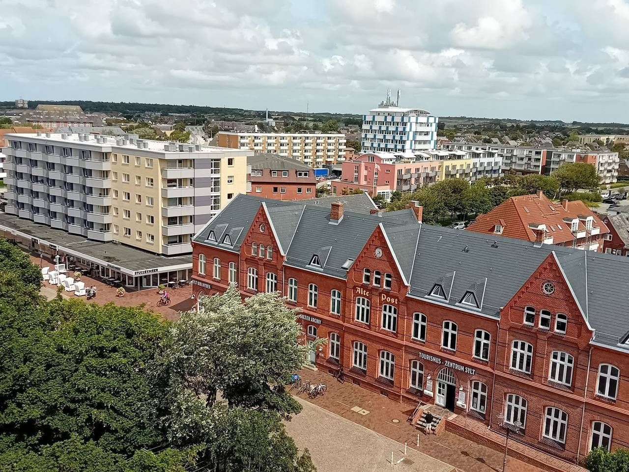 Das Hanseatenhaus liegt in der Maybachstraße. Die Ferienwohnung befindet sich in der 8. Etage eines 8-geschossigen Appartementhauses mit Fahrstuhl. Sie haben vom Balkon eine herliche Sicht über den Osten von Sylt. Bei gutem Wetter können Sie in Morsum das Watt sehen. Im Zentrum Westerlands, schräg gegenüber der Fußgängerzone Friedrichstrasse, ist der Haupteingang des Hanseatenhauses. Entfernung zum Strand ca. 400 m, ca. 5 Gehminuten zum Bahnhof. Kostenlose Internetnutzung über Wlan. im Zentrum Westerlands, gegenüber der Fußgängerzone Friedrichstrasse. Entfernung zum Strand ca. 400 m, ca. 5 Gehminuten zum Bahnhof. In der Maybachstraße 1 im Hanseatenhaus befindet sich die hochwertig eingerichtete Ferienwohnung für 1-2 Personen (ca. 42 m²). Die Ferienwohnung Eastview hat, auf Grund ihrer Höhe in der 8. Etage, einen fantastischen Ausblick über die Stadt bis hin zum Wattenmeer. Ein kombinierter Wohn-Schlafraum mit Sofagarnitur, Sideboard, Doppelschrankbett und Essecke ist der Mittelpunkt dieser hell eingerichteten Wohnung mit Designboden. Die separate Küche mit Ceranfeld, Mikrowelle, Kaffeemaschine, Spülmaschine, Wasserkocher, Kühlschrank mit Gefriermöglichkeit und Geschirr für den täglichen Bedarf steht Ihnen selbstverständlich zur Verfügung. Ein modernes, neu renoviertes Bad mit Dusche, WC, Waschbecken und Haartrockner. Ihren Parkplatz (Nr. 49) finden Sie auf dem Oberdeck. Kostenloser Zugang ins Internet durch W-Lan ist möglich. Mit Rücksicht auf nachfolgende Gäste ist das Rauchen in diesem Objekt nicht gestattet. Haustiere sind nach Absprache willkommen. Sie gelangen mit dem Fahrstuhl in die 7. Etage und gehen dann über 8 Treppenstufen in den 8. Stock.