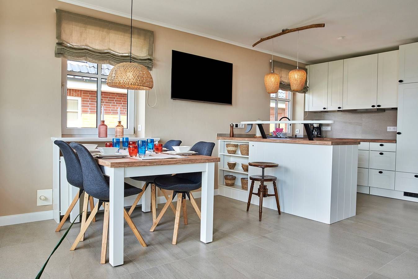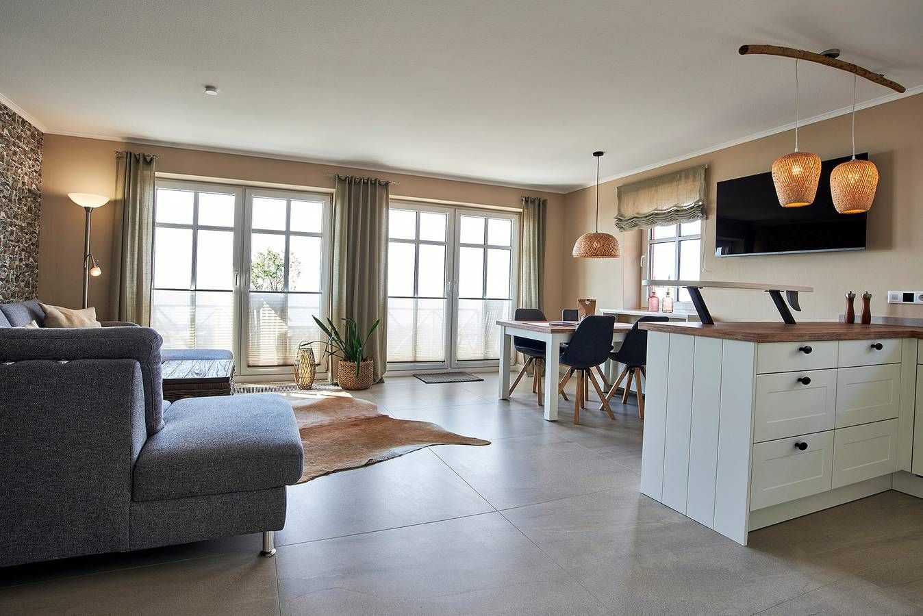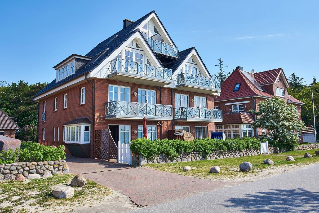 Luxeriöse Ferienwohnung mit Panoramablick auf den Strand und das Meer in erstklassiger Lage am Stockmannsweg in Wyk. Das Haus Hardina am Stockmannsweg 11 liegt direkt am Strand in 1.Reihe mit Blick auf die nordfriesischen Halligen. Die einmalige Lage, das traumhaft schöne Haus und die darin befindliche Wohnung Haus Hardina Whg. 3 lassen Sie auch in der Wohnung Nordseeluft schnuppern und bietet den perfekten Ausgangsort für viele Unternehmungen. Schwimmbad, Innenstadt, Bäcker, Schlachter, Strandcafe und Pizzeria befinden sich in der Nähe und natürlich unmittelbar vor der Haustür der schöne Südstrand und das Meer. Die großzügige, allergikerfreundliche Obergeschoßwohnung (ca. 65 m) liegt im ersten Stock eines 6 Parteien Hauses und verspricht traumhafte Urlaubstage. Der großzügige und moderne Wohnbereich ist unterteilt in eine gemütliche Sitzecke mit WLAN, Flachbild-TV und Ofen, der auch an kalten Tagen eine heimelige Atmosphäre schafft, eine offene Küche mit Ceranfeld, Backofen, Kaffeemaschine (Senseo Duo) Mikrowelle und Geschirrspüler und einen freundlichen Essplatz. Zwei große Terrassentüren machen den Raum hell und einladend und ermöglichen den Zugang zu dem Balkon, der sich fast über die gesamte Wohnungsseite erstreckt. Hier können Sie wunderbar die Sonne genießen und dem Schauspiel von Ebbe und Flut zuschauen. Vom Flur aus gelangen Sie in das hochwertige Badezimmer mit Dusche und Badewanne. Die beiden Schlafräume sind mit einem Doppelbett und zwei Einzelbetten ausgestattet. Im Elternschlafzimmer kann ein Babybett zugestellt werden. Die Wohnung verfügt über einen Stellplatz für Ihren PKW und zur gemeinschaftlichen Nutzung stehen Waschmaschine und Trockner gegen eine Gebühr zur Verfügung. Hier können Sie wirklich entspannen und die Schönheit der Nordsee und des Wattenmeeres genießen. Sportmöglichkeiten wie Surfen, Segeln und Trampolinspringen befinden sich in nächster Nähe. Jeden Tag haben Sie durch die Gezeiten eine andere abwechslungsreiche beeindruckende Aussicht. Bei Auswahl eines Kinderreisebetts wird dieses anstelle eines normalen Bettes bezogen. Sollten Sie das Kinderreisebett zusätzlich benötigen, buchen Sie bitte ein weiteres Wäschepaket hinzu, da wir nur bezogene Kinderreisebetten verleihen. ---------------------------------------- 2025: Infos zum Wäschepaket (obligatorisch): Unser Wäschepaket besteht aus der bezogenen Bettwäsche, 1 Duschtuch, 2 Handtüchern, 1 Geschirrtuch und einem Badvorleger und gehört obligatorisch zur Buchung dazu. Ab 21 Übernachtungen bieten wir auf Wunsch einen kostenfreien Wäschewechsel an. Zusätzlich können Handtücher und Duschtücher optional nach Bedarf einzeln hinzugebucht werden. Ab 2026 mehr Flexibilität und Individualität: Das bekannte Wäschepaket ist nicht mehr buchbar. Die Bettwäsche bleibt aus hygienischen Ansprüchen eine obligatorische Serviceleistung. Sie finden die Betten weiterhin bezogen vor. Doch Hand- und Duschtücher können Sie künftig entweder selbst mitbringen oder auf eigenen Wunsch einzeln optional hinzubuchen. Diese Variante ist aus betrieblichen Gründen erst für Buchungen in 2026 buchbar und entspricht dem Gästewunsch laut Umfrage nach mehr Flexibilität, Individualität und Nachhaltigkeit! Infos zum Präsentkorb Föhrer Inselkäse für 2 oder 4 Personen (Inhalte nicht austauschbar) Der Föhrer Präsentkorb für 4 Personen enthält: 200g Föhrer Naturkäse, 200g roten Föhrer Fruchtaufstrich, 430g Alkersumer Gemüsetopf, 6 Stangen (ca. 160g) Wattwürmer, 150g Landleberwurst , 125ml Föhrer Chutney und 0,33l Föhrer Biar. Der Föhrer Präsentkorb für 2 Personen enthält: 200g Föhrer Bärlauch-Käse, 200g Föhrer Fruchtaufstrich Apfel-Zimt, 430g vegane Linsenbolognese und ca. 130g mildem Landschinken vom Schwein.
