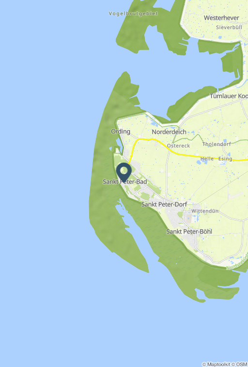 Durch die zentrale und ruhige Lage im Blanker- Hans-Weg 2 (direkt im Kurzentrum Bad) benötigt man nur 3 Min, um zum Wellenbad/Kurmittelhaus und es ist ein Katzensprung zum Badestrand und die Kurpromenade. Das Haus Hauke Haien St. Peter-Ording liegt mitten im Ortsteild Bad. Zu Fuß erreichst du die Promenade, die Seebrücke sowie die Dünen-Therme in wenigen Minuten.