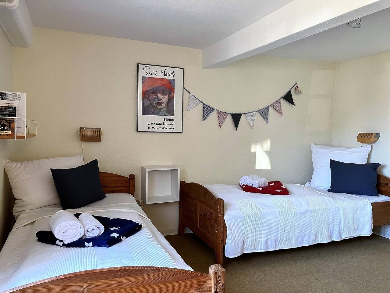 Die Küche ist voll ausgestattet und vom Essplatz hast du einen schönen Blick in den Garten. Relaxe im urigen Wohnzimmer, dass zum Verweilen und Entspannen einlädt mit WLAN, Stereoanlage, Fernseher und DVD-Player oder genieße einen Föhrer Tee zusammen mit einem guten Buch. Zwei Schlafzimmer versprechen ruhige Nächte. Eines davon verfügt über ein Doppelbett, das andere über zwei Einzelbetten. Das Duschbad ist funktional. Angenehm ist das separat liegende WC. Ein besonderes Highlight im Sommer ist der schön angelegte Garten mit Gartenhäuschen, Holzterrasse und Gartenmöbeln (ca. von April bis Ende September) und Kinder können sich über ein Schaukelgerüst freuen.