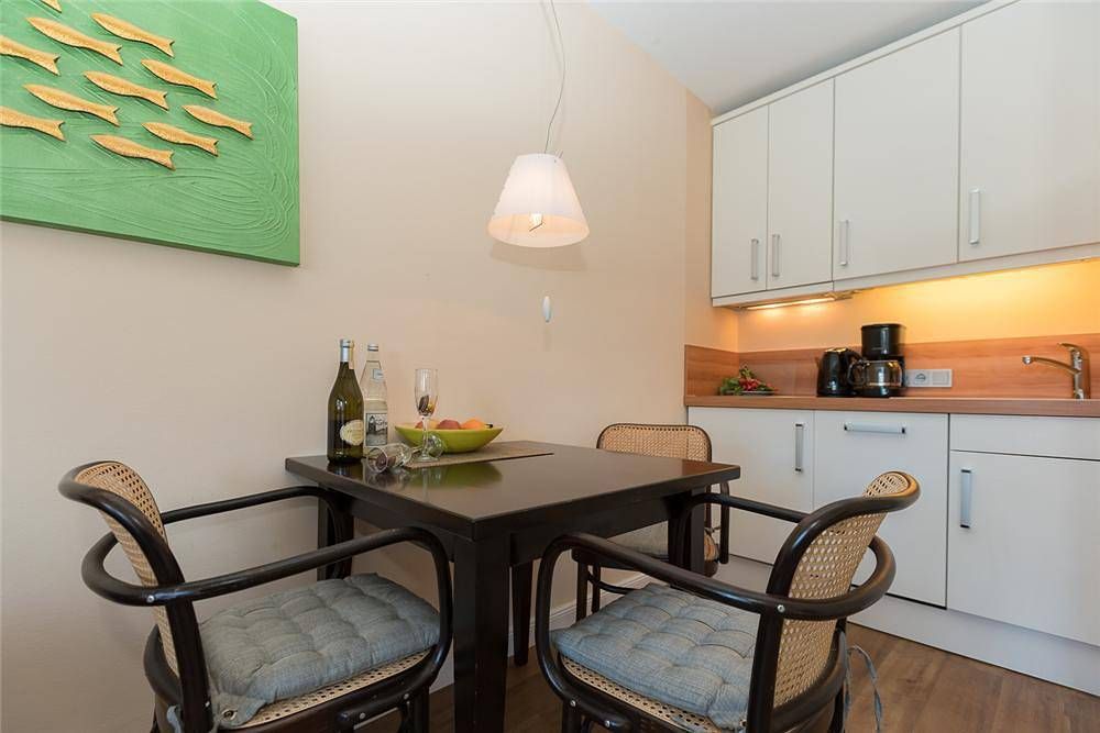 Gemütliche 2-Zimmer Wohnung in Wenningstedt auf Sylt Im Zentrum von Wenningstedt-Braderup, nur wenige Minuten vom Strand entfernt, liegt dieses Kleinod. Mittendrin statt nur dabei. In dieser Wohnung werden Sie erholsame Tage unweit des Wenningstedter 'Dorflebens' verbringen. Die 2 Zimmer Wohnung erstreckt sich über 2 Etagen, 1. OG & DG. Im 1. Obergeschoss ist die offene Küchenzeile sehr gut in den Wohn-/Essbereich integriert. Vom Wohnbereich gelangen Sie auf den nach Westen liegenden Balkon. Das moderne Duschbad ist ebenso auf dieser Ebene untergebracht. Balkon Richtung Westen Ostmarkstrasse 4, Wenningstedt Bitte beachten Sie, dass eine eventuell anfallende Kurabgabe nicht im Gesamtpreis enthalten ist. Diese ist vor Ort zu leisten.