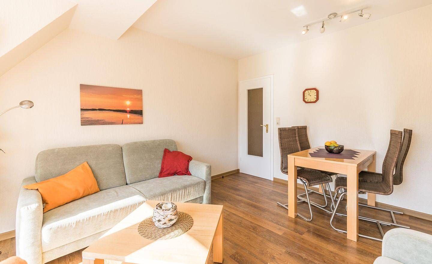 Eine gemütliche Einrichtung verspricht einen angenehmen Urlaub in der Ferienwohnung Abendrot 1 - kostenloses W-LAN inklusive. Im ersten Obergeschoss haben in zwei Schlafzimmern bis zu 4 Personen Platz. Die Küche befindet sich in einer Nische vom Wohnraum abgängig. Ihr Parkplatz liegt auch auf dem Grundstück. Das Auto kann aber getrost stehen gelassen werden - Sie sind mitten im Zentrum von Büsum! Der Bahnhof ist auch nur 200 Meter entfernt. Wir freuen uns auf Ihre Übernachtung in der Ferienwohnung Abendrot Whg. 1 bei uns in Büsum! Wohnzimmer: Couchgarnitur, Essecke, Schrankwand, Flachbild Sat-TV, Balkon, Zugang zum Balkon, CD- Player Küche: Einbauküchenzeile, Geschirrspüler, Mikrowelle, Wasserkocher, Toaster, Kaffeemaschine (Filter), Kühlschrank mit Eisfach, Herd mit Cerankocheld Schlafzimmer 1: Boxspringbett (2 getrennte Matratzen á 200cm x 80cm x 60 cm) Schlafzimmer 2: 2 Einzelbetten , á 200cm x 80cm x 55cm, Kleiderschrank 2türig, Nachtschrank, Verdunklungsvorhang Bad: Dusche, WC, Waschbecken Handtuchheizung, Fön, Lüfter Haus & Service: wischbarer Bodenbelag in allen Räumen, Fahrradabstellraum,1 kostenloser Parkplatz am Haus, Nichtraucherwohnung, W-LAN (HotSpot), Balkonmöbel, Wäsche optional dazu buchbar zur gemeinschaftlichen Nutzung: abschließbarer Fahrradabstellraum, Bücher, Gesellschaftsspiele, Bügeleisen und Bügelbrett, Garderobe Für kurzfristige Anfragen melden Sie sich bitte telefonisch bei uns.