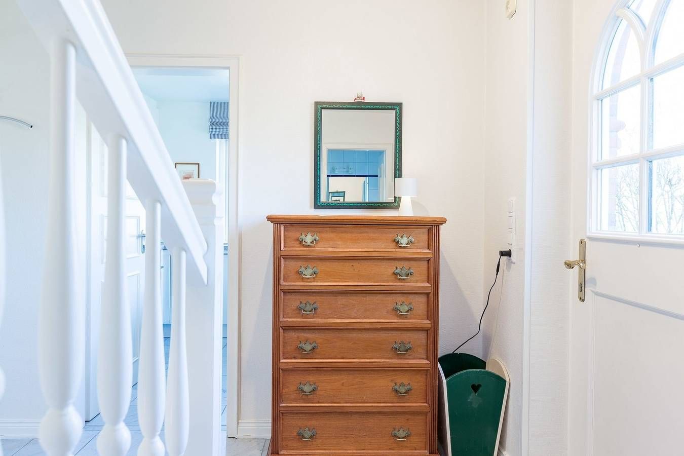 Diese Endhaushälfte unter Reet läßt für Gäste kaum Wünsche offen. Das tiefgezogene Reet und der für die Insel Föhr so typische Baustil gibt einem das Gefühl in einem der ältesten Häuser der Insel zu wohnen. Dabei muss auf keinen Komfort verzichtet werden. Die moderne Enrichtung bietet mit vielen ausgesuchten Details eine Menge, damit Ihre Urlaubswünsche in Erfüllung gehen. Sie wohnen direkt am alten Kurkpark und spüren in Ihrem Garten den Wind vom Meer wenn er durch die Blätter und Äste der mächtigen Zedern und Düneneichen streicht. Der Strand liegt in nur 100 Meter Entfernung. Wem es im gemütlichen Strandkorb am Haus denn doch einmal ein wenig zu langweilig wird, ist in etwa 15 Gehminuten im Trubel der kleinen Stadt von Wyk. Ein Haus zum Verlieben! **** Sterne