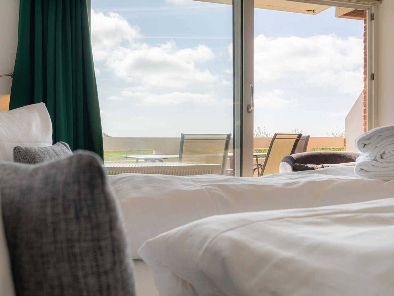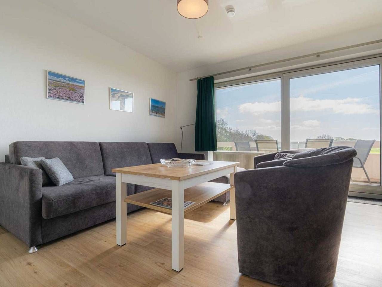 Meerblick. Strandnah. Natur. Schöne 2-Zimmer-Ferienwohnung Dannebrog im Haus Am Golfplatz mit ca. 45 m² auf 1 Ebene (1. OG) für bis zu 4 Personen (Wohlfühlbelegung: max. 2 Erwachsene). In strandnaher Lage direkt am...