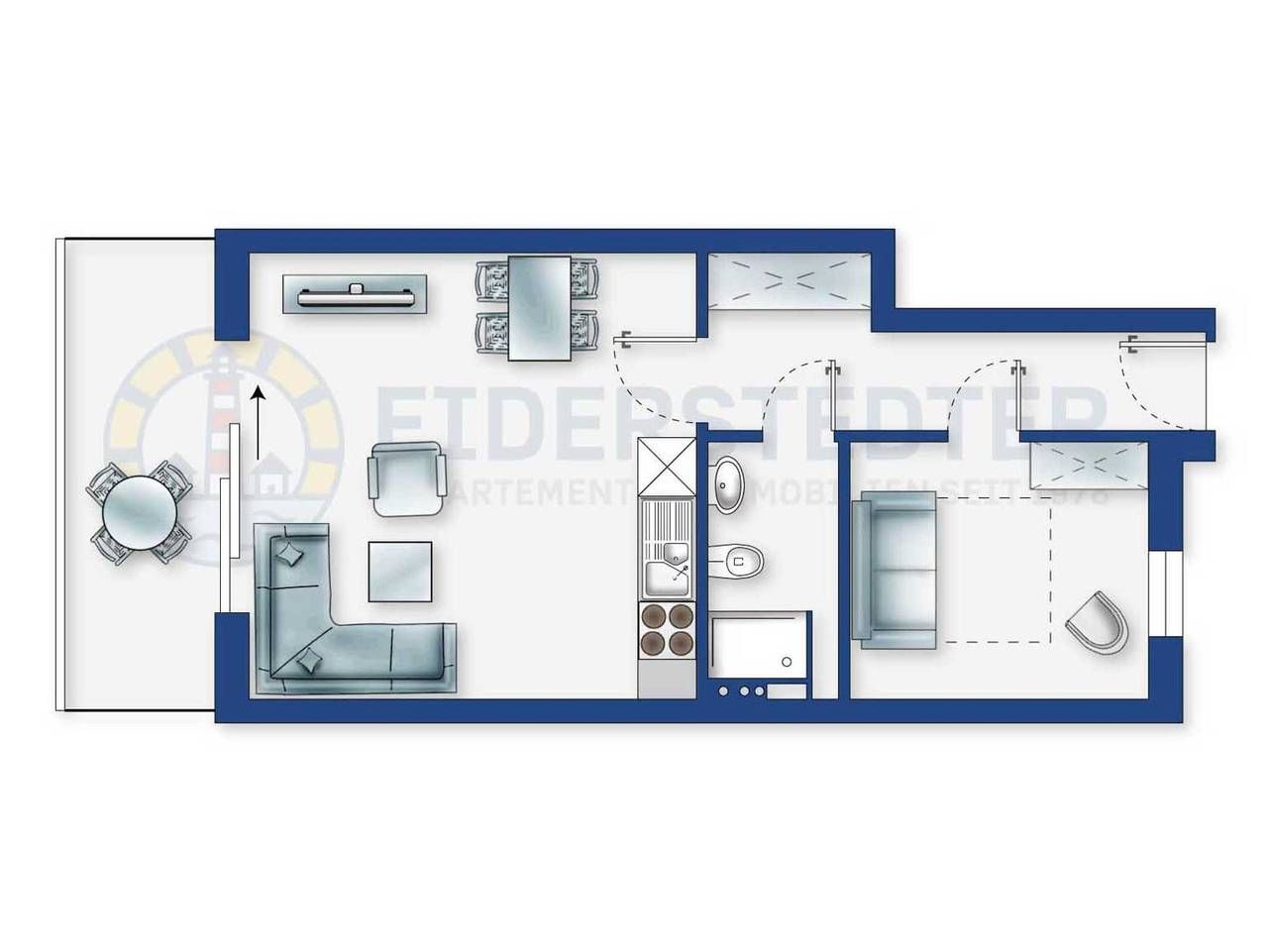 Meerblick. Strandnah. Natur. Schöne 2-Zimmer-Ferienwohnung Dannebrog im Haus Am Golfplatz mit ca. 45 m² auf 1 Ebene (1. OG) für bis zu 4 Personen (Wohlfühlbelegung: max. 2 Erwachsene). In strandnaher Lage direkt am Deichübergang im Ortsteil Böhl in St.Peter-Ording. Genießen Sie den traumhaften Ausblick aus dem Wohnzimmer auf den schönen grünen Golfplatz, den Deich mit Schafen bis weit auf die Nordsee hinaus. Sehr komfortabel ausgestattet und geschmackvoll eingerichtet. Ein Domizil zum Verwöhnen! Wohnzimmer mit großem Ecksofa (ausklappbar zum bequemen Bett mit Matraze, 170x200cm), Sessel, großem SMART-TV (Sat), Internet-Radio mit Bluetooth und Esstisch mit 4 Stühlen. Direkter Zutritt zum breiten Balkon nach Südosten. Offene Küche mit Backofen, Mikrowelle, Geschirrspüler und Kühlschrank mit Gefrierfach. Schlafzimmer mit ausklappbarem Schlafsofa (150x200cm), Sessel und Einbau-Kleiderschrank. Badezimmer (Wannenbad) mit Badewanne mit Dusch-Handstück, WC und Heizkörper. Flur mit Garderobe, Spiegel und Einbau-Schränken. Staubsauger vorhanden. Tiefgaragen-Stellplatz (max. Höhe 190cm, Breite 230cm) und Fahrradkeller vorhanden. Moderne Direkt-Heizung. Kostenloses WLAN. Die Bettwäsche wird gestellt. Handtücher können dazugebucht werden. Haustiere und Rauchen sind nicht erlaubt. Die Wohnanlage liegt direkt am Golfplatz und in unmittelbarer Nähe des Strandübergangs im Ortsteil Böhl in St. Peter-Ording. Zum Seedeich sind es ca. 100 m, den Strand erreichen Sie bequem zu Fuß. Restaurants finden Sie am Strand und in der Böhler Landstraße, Einkaufsmöglichkeiten sind im Gewerbegebiet im Ortsteil Dorf zahlreich vorhanden. Alle volljährigen Mitreisenden sind kurabgabenpflichtig.