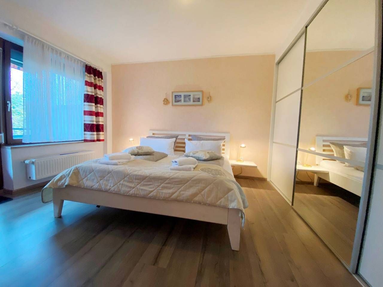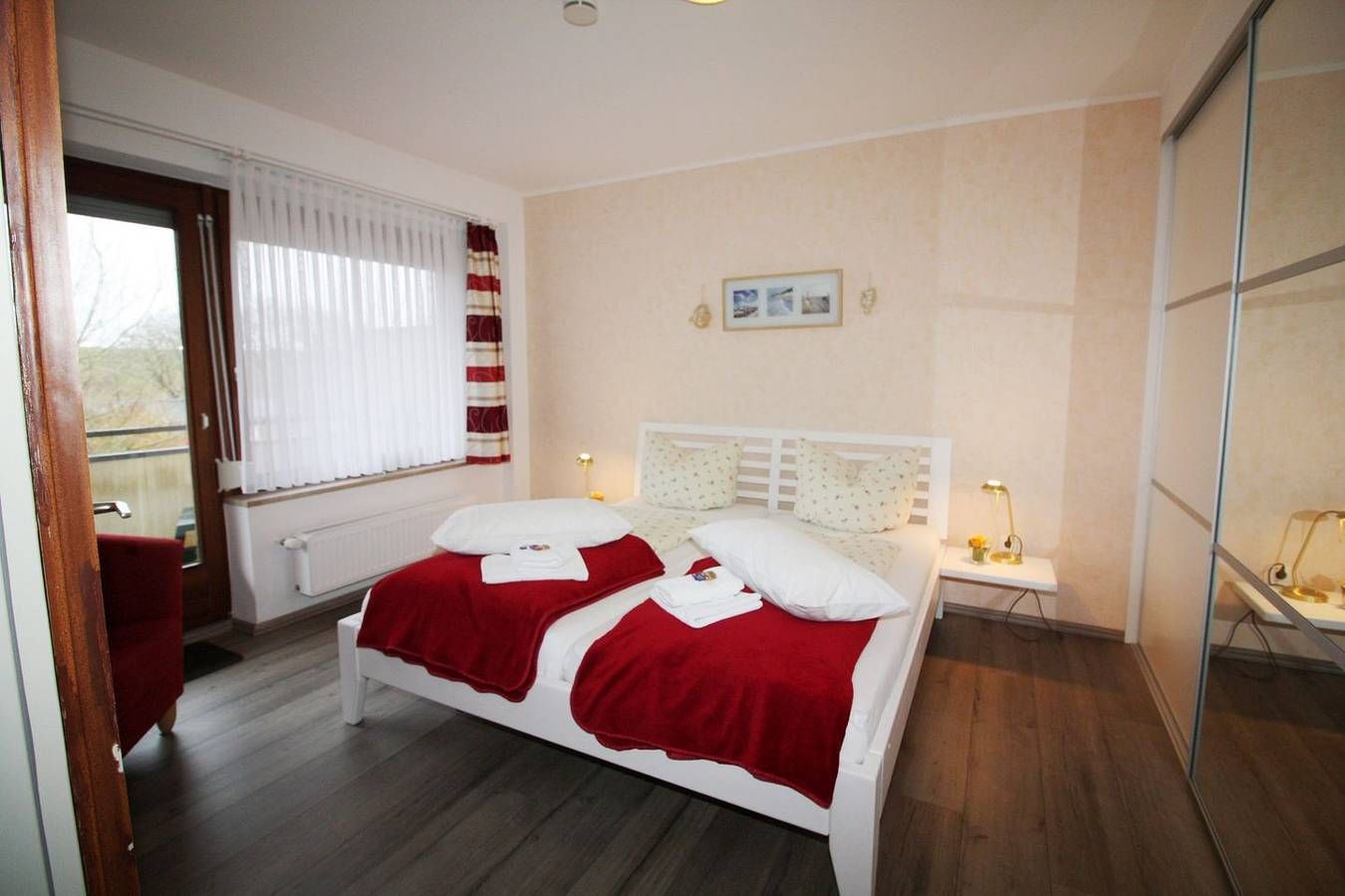 Unser Haus ist direkt in erster Reihe hinterm Deich am Kurpark gelegen. Das 2-Raum Appartement im 1. OG auf ca. 39 m² hat 1 Schlafzimmer (1 x Doppelbett ), ein Wohnzimmer mit Balkon zur Seeseite (Süden) mit Blick in den Kurpark, separate kleine Küche und Duschbad. Die Wohnung ist gemütlich eingerichtet. Die Einbauküche verfügt über einen Backofen, Wasserkocher, Kaffeemaschine, Toaster, sowie Geschirr für den täglichen Bedarf sind ebenfalls vorhanden. Haustiere sind nicht erlaubt. Alle Wohnungen im Haus am Kurpark verfügen über WLAN in der Wohnung. Im Flurregal finden Sie Bücher und Spiele zum Zeitvertreib, wenn das Wetter mal nicht mitspielen sollte. Eine Fahrradgarage ist vorhanden. Parkplätze sind ebenfalls am Haus vorhanden. Münz-Waschmaschine und Münz-Trockner sind im Keller vorhanden. Der Kurpark bietet eine Oase der Ruhe. Beim Schlendern werfen Sie einen Blick in den Kräutergarten oder genießen die Stille. Friedliche Sitzplätze laden zum Verweilen und genießen der Blumenpracht ein. Die Betten sind bei Anreise bezogen.