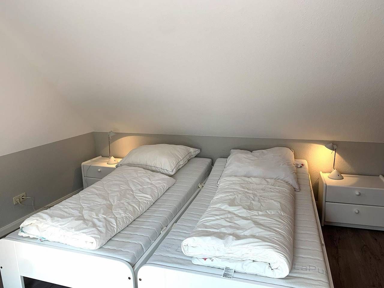 Das Haus am Kurwald liegt nur wenige Gehminuten von Strand und Kurzentrum entfernt in ruhiger Lage. Zahlreichen Einkaufsmöglichkeiten und Restaurants finden Sie in der Nähe. Zu der Wohnung gehört ein Pkw-Stellplatz auf dem Grundstück. In der 3-Zimmer-Maisonettewohnung Haus am Kurwald1 Nr. 04 machen Sie mit bis zu 5 Personen entspannt Urlaub. Eine große, gemütliche Eckcouch steht ebenso für Sie bereit, wie die schicke, moderne Küchenzeile mit Cerankochfeld, Backofen und Spülmaschine. Insgesamt 5 Einzelbetten in 2 Schlafzimmer sorgen für Ihre angenehme Nachtruhe. Ein Schlafzimmer ist im 1. OG, das andere im DG. Der nette kleine Balkon ergänzt das Angebot. WLAN ist hier inkl.. Wohnzimmer: Eckcouch, Couchtisch, Beistelltisch, Stehlampe, Kofferradio mit CD-Player, Ecktisch, Tischlampe, Telefon, TV-Tisch, Kabel-TV, Vitrinenschrank, Eckbank, Esstisch, 2 Stühle, Küchenzeile, 4 Plattenherd mit Ceranfeld und Backofen, Dunstabzugshaube, Kühlschrank, Spülmaschine, Kaffeemaschine, Wasserkocher, Toaster, Handmixer, Geschirr, Kochtöpfe Schlafzimmer: 2 Einzelbetten, 2 Nachttische, Kleiderschrank, Anrichte, Bügelbrett, Bügeleisen Schlafzimmer 2: 3 Einzelbetten, 3 Nachttische, 3 Sessel, Einbaukleiderschrank, Treppe nach unten Bad: Dusche, Waschbecken, WC, Duschkabine, Schrank, Staubsauger Flur: Garderobe, Spiegel, Schuhschrank, Treppe nach oben Lage: Nord- Westlage und Süd- Westlage, 1. Obergeschoss und Dachgeschoss, ruhig, Strand 500 m, Bäcker 400 m, Bahnhof 3 km, Einkaufen 400 m, Schwimmbad 500 m, Kurzentrum 500 m, Ortsteil Bad Pkw-Stellplatz auf dem Grundstück, Haustiere nicht erlaubt