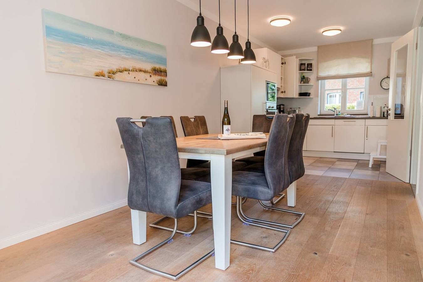 In absoluter Toplage am Wyker Südstrand wurden 2017 zwei neue Ferienhäuser mit insgesamt fünf Wohneinheiten errichtet. Der Strand liegt Ihnen quasi zu Füßen auch zu dem Aqua-Föhr mit dem Meerwasserwellenbad und den Kureinrichtungen gelangen Sie mit wenigen Schritten. Über die Strandpromenade kommen Sie in die Wyker Innenstadt und die Fußgängerzone, in welcher sich die zahlreichen Restaurants, Cafés und netten Lädchen befinden. In diesen modernen Wohnungen wird es Ihnen an Nichts fehlen und Sie können entspannt Ihre schönste Zeit des Jahres hier verbringen. Das Hausteil hat 3 Schlafräume, welche sich alle im 1. OG befinden, und eine schöne, wohnungseigene Terrasse mit angrenzendem Garten. Auch ein eigener Parkplatz steht am Ferienhaus zur Verfügung. Das Hausteil erstreckt sich über das Erdgeschoss, 1. Obergeschoss bis zum 2. Obergeschoss. Das Hausteil ist modern ausgestattet und hell und freundlich und in inseltypischen Farben eingerichtet. Auch ein Hund ist hier herzlich willkommen. Das Ferienhaus befindet sich in direkter Nähe zum Strand und zur Promenade. Nach einem kurzen Fußweg vorbei am Schwimmbad kommt man auch schon in die Wyker Innenstadt und dort zu zahlreichen Einkaufsmöglichkeiten. Auch ein Waldstück befindet sich in unmittelbarer Nähe. Die Freizeitangebote befinden sich alle in unmittelbarer Umgebung des Objektes. Ein äußerst angenehmer Aufenthalt für unsere Gäste und somit die sorgfältige Reinigung der uns anvertrauten Ferienunterkünfte ist unser höchstes Gebot. Damit wir diesem gerecht werden, weist jede unserer Ferienimmobilien in den Monaten Mai bis einschließlich Oktober einen festgelegten An- und Abreisetag auf. Weitere Infos finden Sie auf unserer Homepage! Fester An- und Abreisetag Juli - August: Donnerstag Feste An- und Abreisetage Mai - Oktober: Montag - Freitag Mind. 7 Übernachtungstage: April - Oktober; Weihnachten und Jahreswechsel Mind. 2 Übernachtungstage: November - März