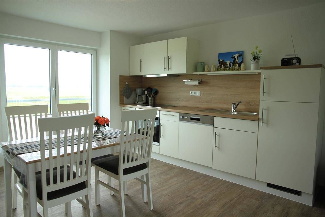 Herzlich Willkommen im Haus am Meer. Unsere komplett neu renovierte, und liebevoll ausgestattete Ferienwohnung befindet sich in ruhiger Lage direkt am Nordseedeich in Vollerwiek und bietet mit einer Fläche von 65 qm Platz für 2-3 Personen. Ausgestattet mit einem separaten Schlafraum mit Doppelbett, Wohnraum mit einem Sofa mit Schlafmöglichkeit. Die komplett ausgestattet Einbauküche inkl. Geschirrspüler lässt keine Wünsche für den Urlaubshaushalt offen. Das Bad ist mit Dusche und WC ausgestattet. Im großen Garten steht Ihnen eine eigene Terrasse zur Verfügung. 2 Hunde / bis zu einer mittleren Größe sind gegen eine Gebühr von 8,00€ pro Nacht von Willkommen. Erleben Sie ihren Urlaub direkt am Nordseedeich in Vollerwiek in traumhafter schöner, ruhiger Lage. Mit nur wenigen Schritten können Sie Nordseeluft genießen, die Wege am Innendeich laden zu Spaziergängen oder Fahrradtouren ein, oder Sie gehen zum Baden an der bewachten Badestelle. Zu den Stränden von St.Peter-Ording sind es ca. 12 Automin., Einkaufsmöglichkeiten (ca. 10 Autom.), z.B. in Tönning, der kleinen Hafenstadt mit dem weit übers Land bekannten Multimar Wattforum. Bei Ihrer Ankunft sind die Betten für Sie bezogen und frische Handtücher liegen bereit. Der Hund ist gegen einen Aufpreis willkommen. Die Anreise ist ab 15.00 h, wir möchten Sie bitten die Ferienwohnung am Abreisetag bis 10.00 zu verlassen.