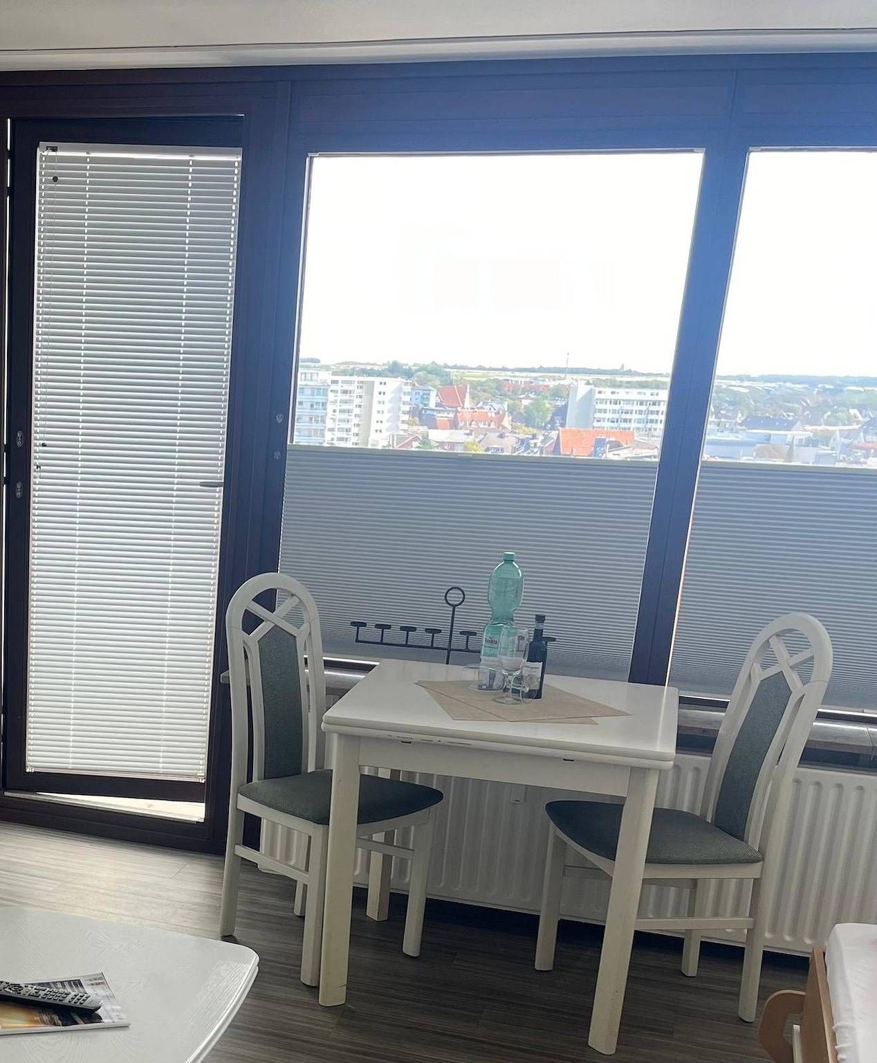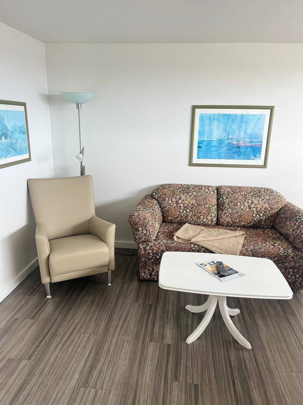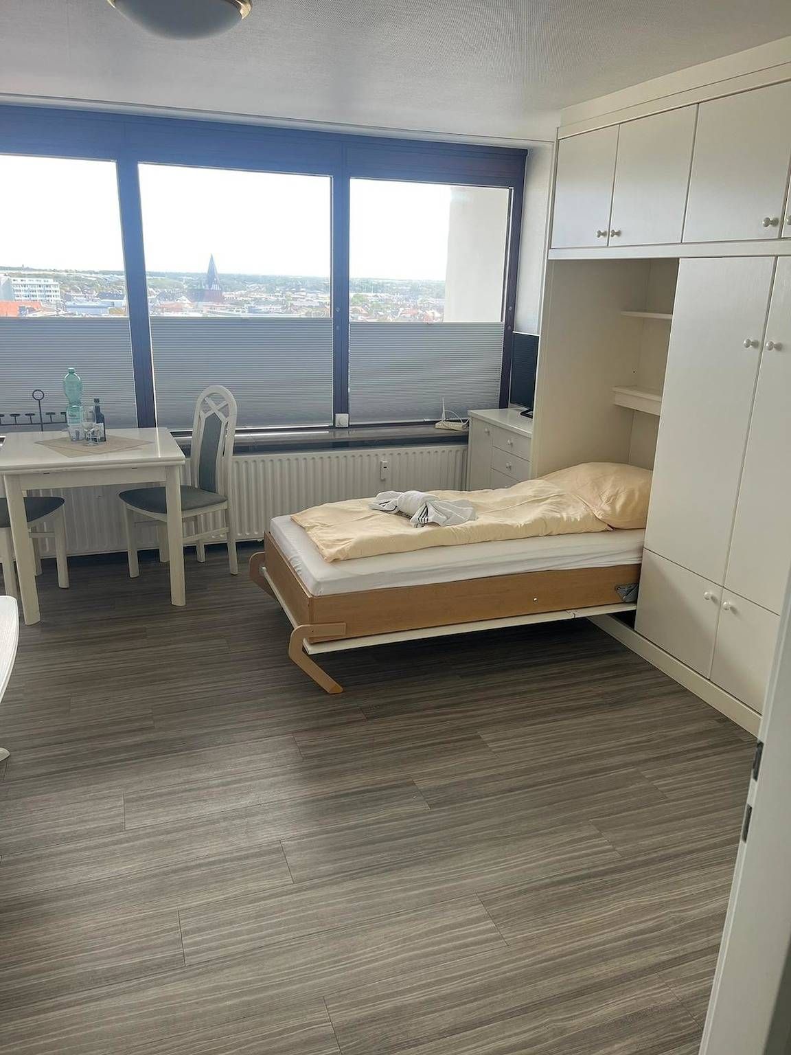 Appartement 156 im 7.OG zum Osten, Landseite, für 1 bis 2 Personen. Vorflur, separate kl. Küche mit Zugang zum kl. Balkon zum Norden, NEU renoviertes Bad mit Dusche / WC, heller Wohn-/Schlafraum mit zwei Einzelschrankbetten, Sitzgarnitur bestehend aus einem Sofa und Sessel, Flachbildfernseher, Radio. Hauseigenes freies WLAN. KEIN Teppichboden. Ein Balkon zum Osten, mit herrlichen Blick über die Dächer von Westerland, rundet dieses nette und ca. 40 qm große Appartement ab. Ein Platz in der Garage kann extra hin zugebucht werden. Der Tiefgaragenplatz muss bestellt werden, ansonsten verfällt der Anspruch!