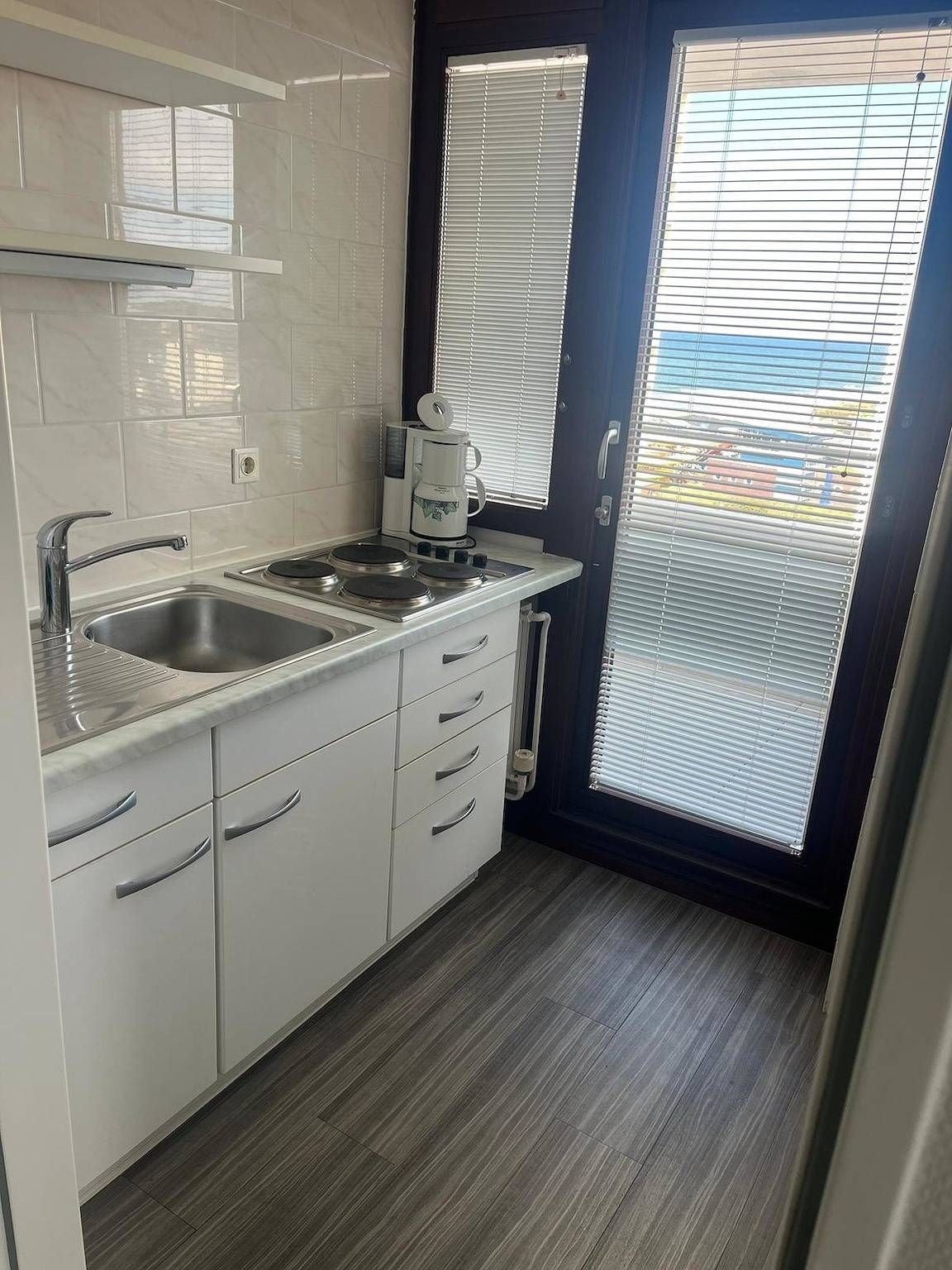 Appartement 156 im 7.OG zum Osten, Landseite, für 1 bis 2 Personen. Vorflur, separate kl. Küche mit Zugang zum kl. Balkon zum Norden, NEU renoviertes Bad mit Dusche / WC, heller Wohn-/Schlafraum mit zwei Einzelschrankbetten,...