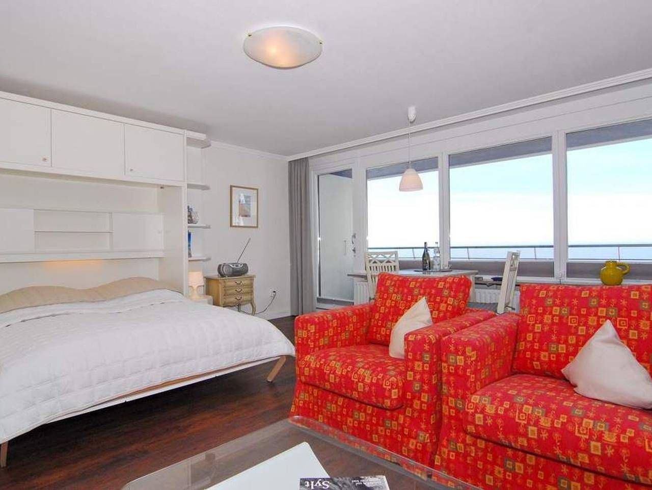 1-Zimmer-Ferienwohnung im Haus am Meer zur Seeseite, 6. OG,[nbsp][nbsp]ca. 42 qm, Nichtraucher-Whg.! Wohn-/Schlafraum mit Doppelschrankbett, Couchecke, Eßplatz am Fenster mit leicht eingeschränktem Blick auf das Meer, Kabel-TV,...