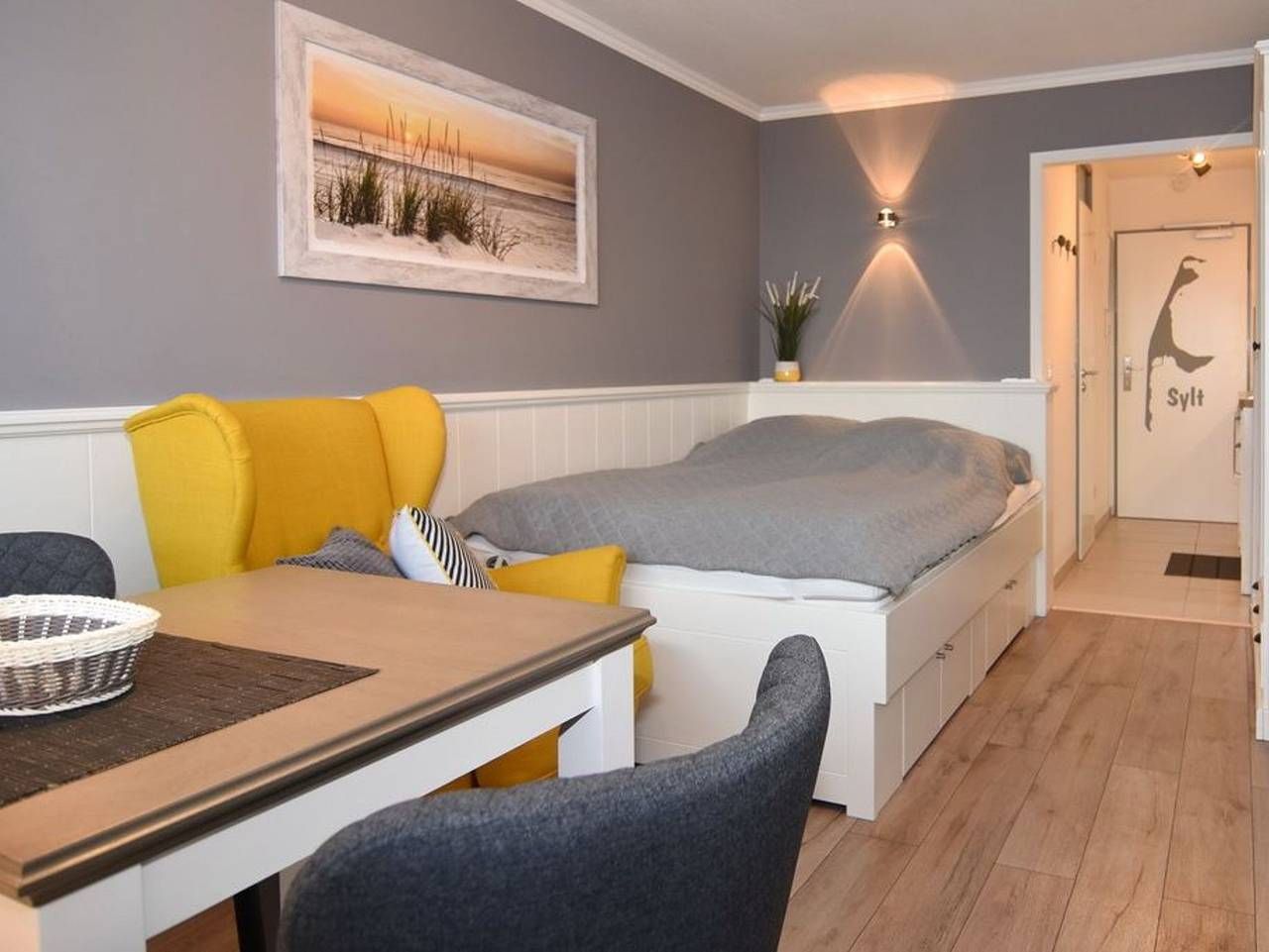 Komplett renovierte, moderne 1-Zimmer-Wohnung in unmittelbarer Strandnähe für 2 Personen. Die Wohnung befindet sich im 7. OG des Haus am Meer mit Ostbalkon zur Landseite und bietet einen tollen Weitblick über Westerland. Auf ca. 23qm verfügt die Wohnung über einen kombinierten Wohn- /Schlafzimmer mit festem Doppelbett (140*200), Essplatz am Fenster, Sessel und Fußhocker, Flat-TV und Radio. W-Lan (ohne Gewähr), Küchenzeile mit Geschirrspüler und Mikrowelle, Duschbad/WC. Tierhaltung und Rauchen ist nicht gestattet. Bettwäsche und Handtücher sind zur Anreise aufgezogen. Ein PKW-Stellplatz kann kostenpflichtig zugebucht werden.