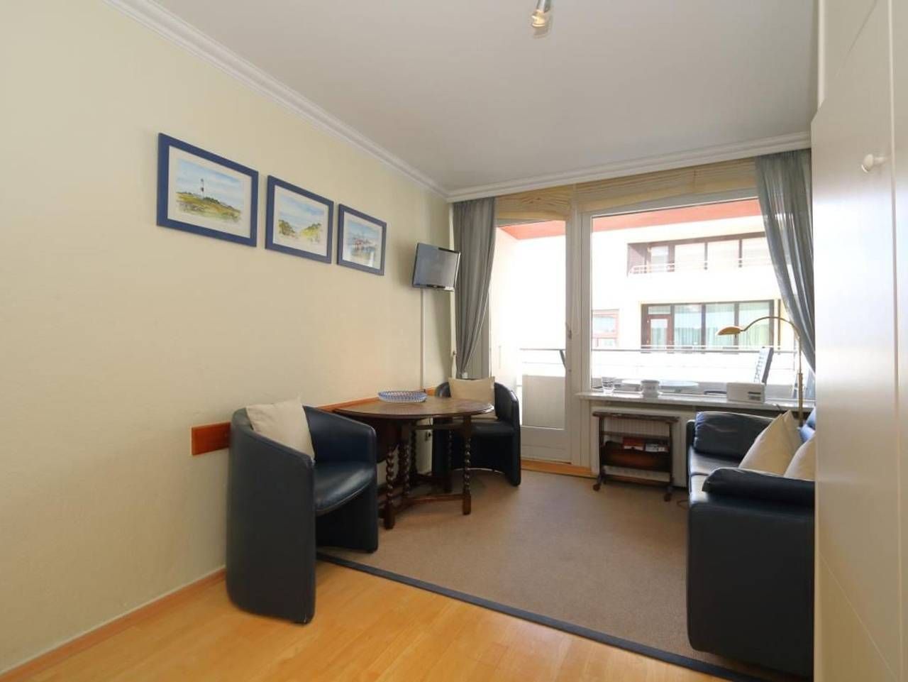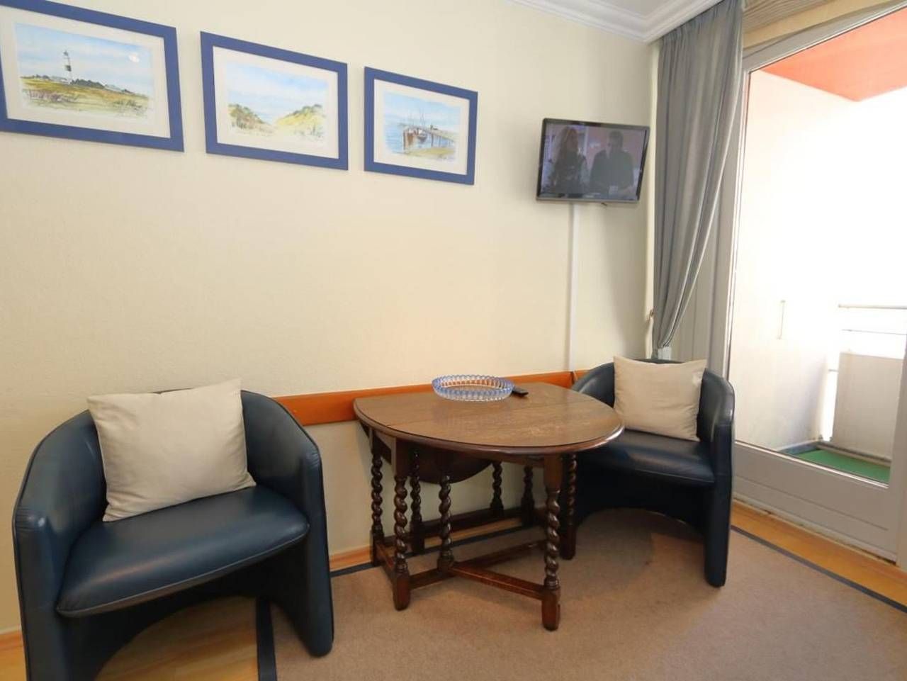 Haus am Meer App. 56 Lage: Das Appartement mit Meerblick und Westbalkon befindet sich in der 2. Etage eines gepflegten Appartementhauses im Kurzentrum, direkt am Hauptstrand. Das Haus liegt zentral in Westerland, zwischen den beiden großen Fußgängerzonen. Größe: 1-Zimmer-Appartement ca. 25 m² für zwei Personen Die traditionell eingerichtete Ferienwohnung hat eine einladende Raumaufteilung und verfügt neben dem Balkon mit eingeschränktem Meerblick über das Flachdach ebenso über eine Küche, ein Badezimmer mit Duschkabine und einen Schlaf-und Wohnbereich. Ausstattung der Küche: Wasserkocher Filterkaffeemaschine Gängige Küchenutensilien Herd mit zwei großen und zwei kleinen Platten Backofen Kühlschrank mit Gefrierfach Toaster Durch den anschließen Flur gelangen Sie in den Wohn-und Schlafbereich, der Ihnen eine gemütliche Atmosphäre bietet. Ausstattung Wohn-/Schlafbereich: Schrankbett (Matratzengröße ca. 2 x 1,60 m) Büchersammlung Großer Einbauschrank mit Beleuchtung Decke Blaue Ledercouch mit Couchtisch (vergrößerbar) Zwei Sessel und ein weiteres kleines Tischchen Vorhänge zum Abdunkeln des Raumes Wohnzimmerlampe Bitte beachten Sie die Regelung zur gesonderten Kurtaxe der jeweiligen Gemeinde auf Sylt. Diese wird gesondert berechnet und ist spätestens bei Anreise fällig. Gästeinformation: Ein Wäschepaket ist bereits automatisch mit im Angebot aufgeführt. Wenn Sie keine Wäsche wünschen, bitten wir Sie, die Wäsche spätestens 48 Stunden vor Anreise explizit und schriftlich abzubestellen. Vielen Dank. Im neuen Kurzentrum, Haus am Meer, direkt an der Westerländer Promenade gelegen, befindet sich diese Ferienwohnung für 2 Personen Schrankbett (Matratzengröße ca. 2 x 1,60 m)