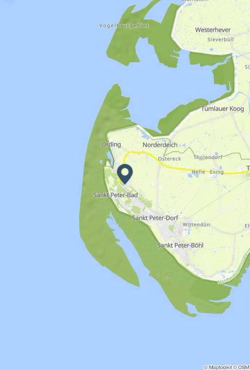 Ruhig. Erholsam. Am Wäldchen. Schöne 3-Zimmer-Ferienwohnung im Haus Am Wald mit ca. 62 m² auf 2 Ebenen (OG, DG) für bis zu 4 Personen. Ruhige Lage im Ortsteil Bad in St. Peter-Ording. Ein Hund ist herzlich willkommen. Wohnzimmer mit Sofa, zwei Sesseln und TV (Sat) mit DVD-Player. Essbereich mit Esstisch, 4 Stühlen und Anricht mit Mikrowelle. Direkter Zugang zum möblierten Balkon nach Südwesten mit Blick auf das grüne Gartengrundstück und den Waldesrand. Vom Wohnzimmer führt eine Treppe zum DG. Kleine separate Küche Backofen, Kühlschrank (ohne Gefrierfach) und Geschirrspüler. 1. Schlafzimmer mit Doppelbett (2x 80x200cm) und Einbauschrank. 2. Schlafzimmer mit 2 Einzelbetten (90x200cm und 100x200cm) und Regal-Ablagefächern. Badezimmer mit Dusche, WC, Handtuchwärmer, Tageslicht und Föhn. Extra-WC im DG zwischen den Schlafzimmern. Kinderhochstuhl und -reisebett (nur Gestell) kostenlos in der Wohnung vorhanden. Gemeinschaftlich nutzbare Haushaltsgeräte im Hausflur. Gemeinschaftlicher Waschraum mit Waschmaschine, Wäschetrockner und Bügelset. Großes Gartengrundstück am Waldesrand mit zwei gemeinschaftlich nutzbaren Sonnenfreisitzen und Kinderspielgeräten. Kostenloses WLAN (Glasfaser). Pkw-Stellplatz und überdachte Fahrradabstellmöglichkeiten am Haus. Die Bettwäsche wird gestellt. Handtücher können dazugebucht werden. Rauchen ist nicht erlaubt. Ideale Lage! 4 Ferienwohnungen für 2 - 6 Personen. Direkt am Kiefernwald und nur 700 Meter zu Fuss zur Dünen-Therme, Strandpromenade sowie Ortszentrum Ording - so präsentiert sich das Haus am Wald in toller und absolut ruhiger Lage. Alle volljährigen Mitreisenden sind kurabgabenpflichtig.
