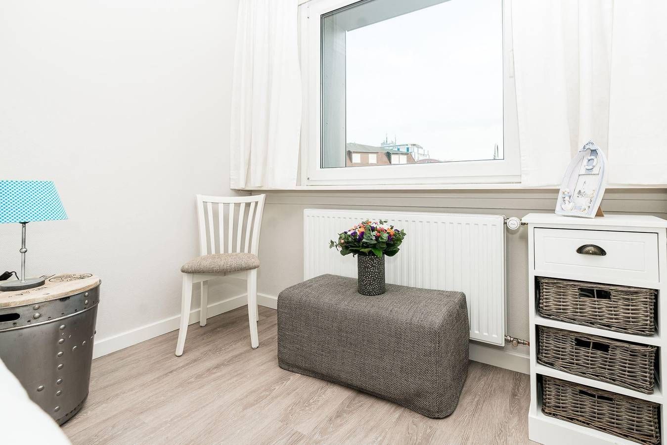Zentral gelegene schöne und modernisierte 2-Zimmer Wohnung, Farhstuhl im Hause, Parkplatz vorhanden Wunderschöne 2-Zimmer Wohnung im 1.OG mit großzügigem Ostbalkon im Haus Ankerlicht. Zentral gelegen, 2 Fußminuten zur Friedrichstr. und ca. 5 Gehminuten zum nächsten Strandübergang. In dieser Wohnung werden Sie sich von Anfang an wohl fühlen, sie wurde gerade erst renoviert und in der kompletten Wohnung Designbelag verlegt . Dieses moderne und schicke Ambiente in zeitgemäßer Farbgebung führt sie zum absoluten Wohngefühl. Großes und geräumiges Schlafzimmer mit Doppelbett 180x200 und Kleiderschrank. Der Wohnbereich ist ausgestattet mit einem Flachbildschirm 45 Zoll, einer kleinen Stereo Anlage, bequemen 3-Sitzer Leder Sofa und Sessel, sowie einem Essplatz mit Stühlen. Außenstellplatz Nr. 76, gebührenfrei. Balkon mit Tisch und 2 Stühlen Stephanstrasse 8, Westerland Bitte beachten Sie, dass eine eventuell anfallende Kurabgabe nicht im Gesamtpreis enthalten ist. Diese ist vor Ort zu leisten.