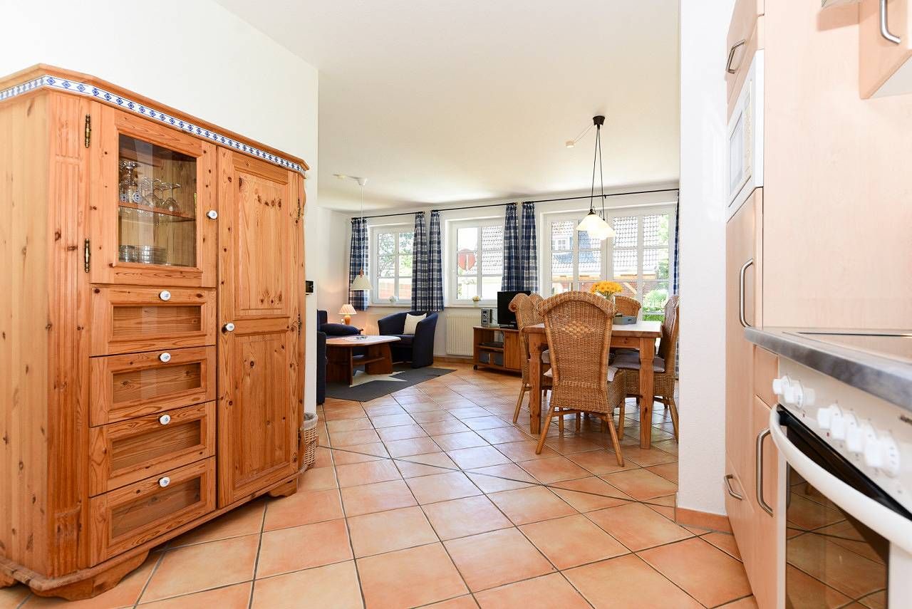 Moin und herzlich willkommen in Ihrer friesischen Urlaubsoase. Diese charmante Doppelhaushälfte bietet auf ca. 100 m² Platz für bis zu 6 Personen und liegt nur wenige Schritte vom Strand entfernt. Eingebettet in eine malerische Umgebung grenzt das Grundstück direkt an einen Wald mit dem beliebten Kinderspielplatz "Löwenhöhle". Ob in der kalten oder warmen Jahreszeit - hier ist Erholung garantiert: Genießen Sie kuschelige Winterabende vor dem dänischen Eisenofen im Wohnzimmer oder warme Sommertage in Ihrem Strandkorb auf der Terrasse. Für unbeschwerte Strandtage können Sie über uns einen Saisonstrandkorb direkt am Strand für einmalig 10,00 € dazu buchen. Auch Ihr verbeiner ist hier herzlich willkommen. Das helle und geräumige Wohnzimmer lädt mit seinem gemütlichen Ambiente und moderner Unterhaltungstechnik - Flachbildschirm, DVD- und CD-Player - zu entspannten Stunden ein. Die großzügige Essecke bietet einen schönen Blick ins Grüne und direkten Zugang zur sonnigen Terrasse mit Garten. In der geschmackvoll eingerichteten und voll ausgestatteten Einbauküche können Sie Ihre Urlaubsküche in vollen Zügen genießen. Im Obergeschoss erwarten Sie drei behagliche Schlafzimmer: ein Zimmer mit Doppelbett und zwei weitere mit je zwei Einzelbetten. Ein großzügiges Wannenbad, welches durch ein Glaselement ebenfalls als Dusche genutzt werden kann, sorgt für großen Komfort. Im Erdgeschoss steht Ihnen ein weiteres Badezimmer mit Duschkabine zur Verfügung. Für ruhige Momente und Lesestunden bietet der gemütliche Spitzboden eine einladende Sitz- und Leseecke - perfekt, um sich zurückzuziehen und zu entspannen. Erleben Sie unvergessliche Tage in dieser friesischen Doppelhaushälfte und genießen Sie die Kombination aus Strandnähe, Komfort und Natur. Wir freuen uns darauf, Sie willkommen zu heißen. Strandkorbsaison: 01.05. - 30.09.