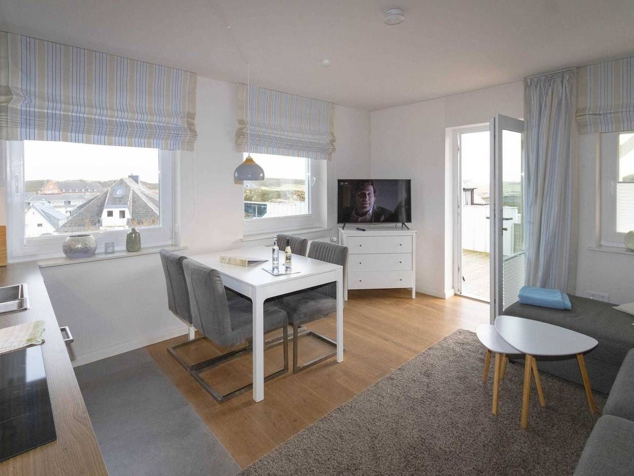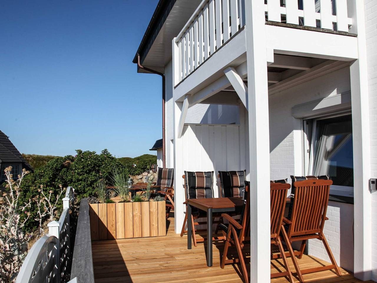 Die Wohnung Strandgut liegt im Haus Atair in Hörnum auf einer Düne mit traumhaftem Blick bis hin zu den Inseln Föhr und Amrum. Sie bietet auf 40 m² eine hochwertige Ausstattung mit Geschmack zum Detail und wurde gerade komplett neu renoviert. Eine Kombination mit der Wohnung Leuchtfeuer im gleichen Haus auf der gleichen Ebene ist möglich, wenn Sie Platz für eine größere Familie brauchen. In absoluter ruhiger Lage mit Blick auf die Dünenlandschaft und das Meer liegt das Appartement Strandgut nur wenige Gehminuten vom Weststrand entfernt. Die örtlichen Einkaufsmöglichkeiten sind mit dem Auto in wenigen Minuten zu erreichen. In unmittelbarer Nähe liegt ein Restaurant, in dem Sie Hunger und Durst stillen können.