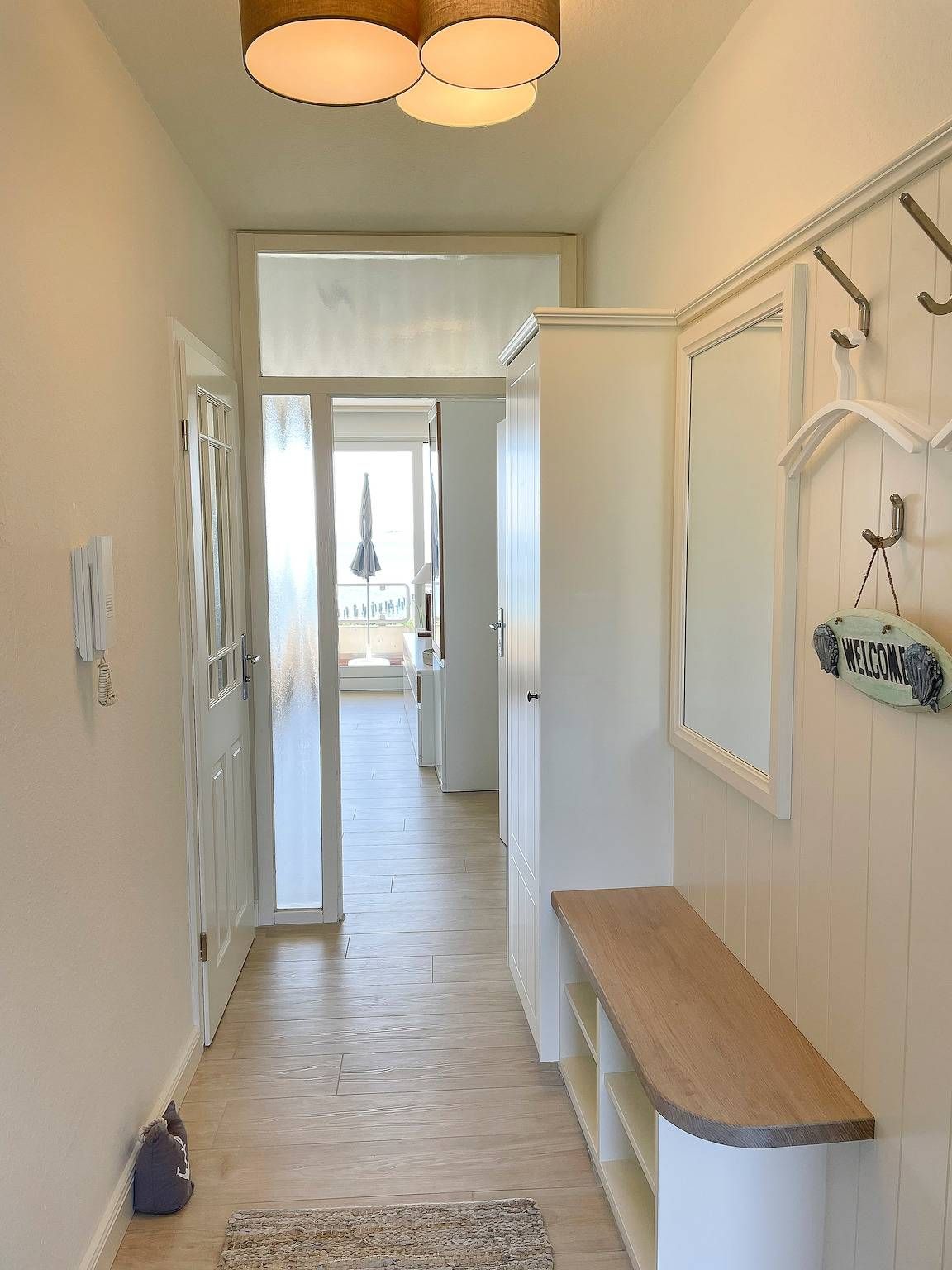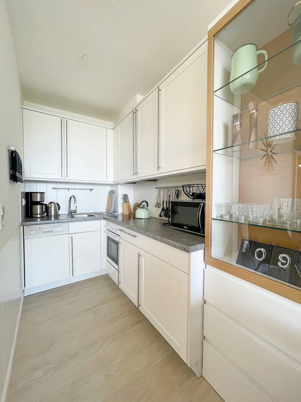 Moin und herzlich willkommen im Haus "Bi de Wyk, Whg C19". Dieses charmante 2-Zimmer-Appartement direkt am beliebten Wyker Südstrand bietet Ihnen alles, was Sie für einen erholsamen Urlaub an der Nordsee benötigen. Die Appartementanlage verfügt über ein eigenes Hallenbad (Pool) sowie eine Sauna (Saunanutzung gegen Gebühr) - perfekt für entspannte Stunden nach einem Strandspaziergang. Ein Fahrstuhl sorgt für zusätzlichen Komfort und alle Wohnungen bieten einen Balkon zur Seeseite mit atemberaubendem Meerblick. Nach kurzer Rücksprache mit dem Vermittlungsbüro steht Ihnen ein kostenfreier PKW-Stellplatz zur Verfügung. Wäschepakete (Bettbezüge und Handtücher) sind nicht inklusive, können jedoch optional hinzugebucht oder selbst mitgebracht werden. Die Wohnung C19 begrüßt Sie mit einer modernen sowie gemütlichen Ausstattung und harmonischen Farben. Der offen gestaltete Wohnraum lädt zum Verweilen ein, während das Schlafzimmer mit einem bequemen Doppelbett für erholsame Nächte sorgt. Ein stilvolles Duschbad rundet das Wohlfühlambiente ab. Genießen Sie den unverbauten Panoramablick auf die Nordsee und die Halligwelt - ob durch das große Fenster oder vom Balkon aus. Am Strand steht Ihnen während der Strandkorbsaison ein eigener Strandkorb zur Verfügung, um die Sonne und das Meeresrauschen in unmittelbarer Nähe zu genießen. Freuen Sie sich auf entspannte Tage in der Wohnung C19 - wir freuen uns auf Sie. Strandkorbsaison: 01.05. - 30.09.