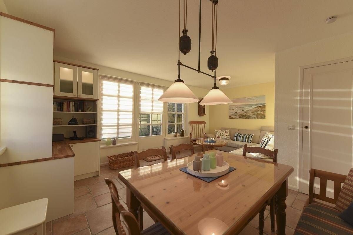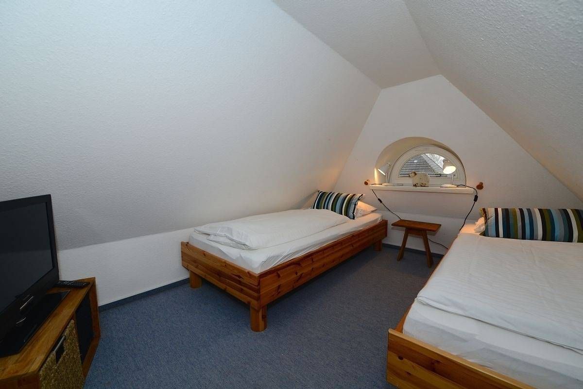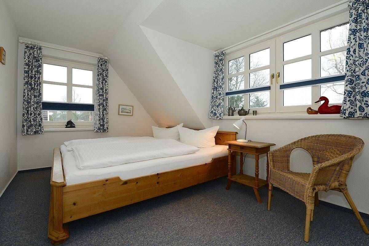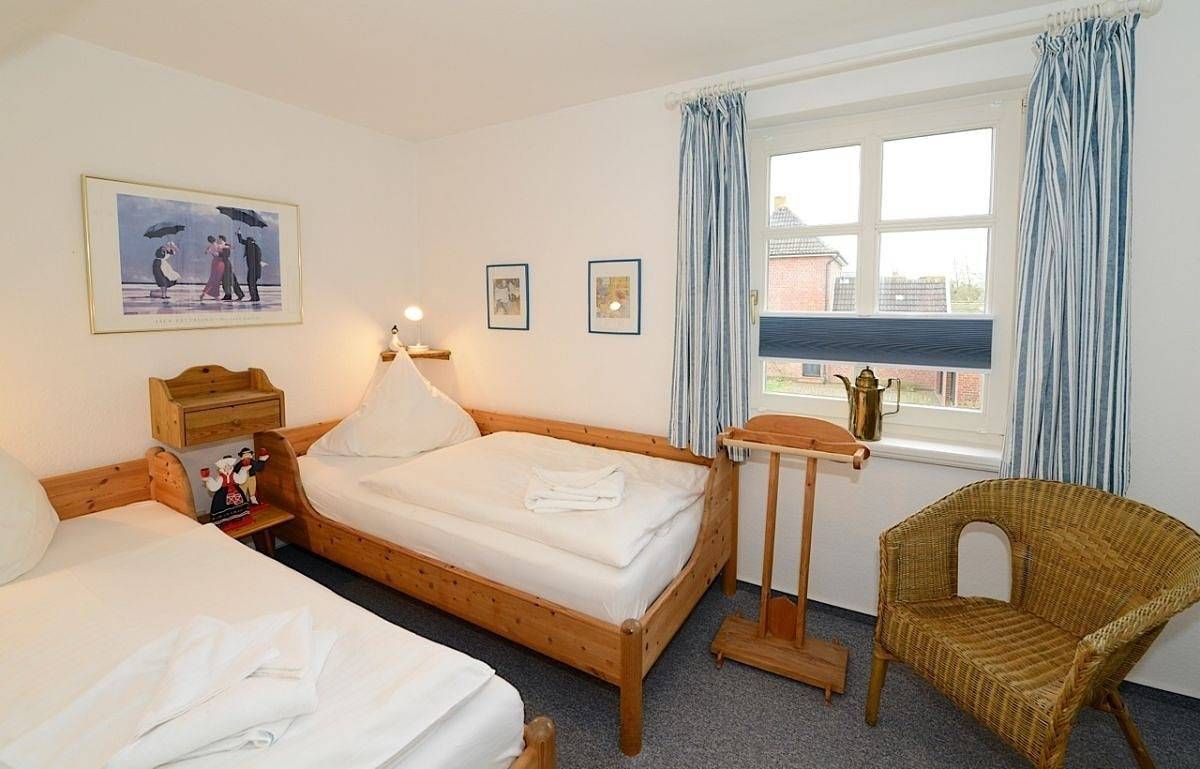 Moin und herzlich willkommen im malerischen Friesendorf Nieblum, einem der schönsten Orte auf der Insel Föhr. Zentral an der Südküste zwischen Wyk und Utersum gelegen, lädt Nieblum - zwischen friesentypischen Reetdachhäusern und romantischen Bauerngärten -mit zahlreichen Cafés und Restaurants zum Verweilen ein. Einkaufsmöglichkeiten, eine Fleischerei sowie ein Bäcker sind bequem zu Fuß erreichbar - hier fehlt es Ihnen an nichts. Die Ferienanlage "Häuser Bornholm", erbaut 1985 unter Reet, liegt zentral und dennoch ruhig in einem parkähnlichen garten. Wohnung 23 erstreckt sich über drei Etagen mit Schlafzimmern oben und Wohnbereich, Küche sowie Gäste-WC im Erdgeschoss. Eine Terrasse mit Garten und ein kostenfreier Stellplatz runden das Angebot ab. Ab 18 Übernachtungen ist die Erstausstattung mit Wäschepaketen inklusive. Bitte beachten Sie, dass eine An- und Abreise während der Hochsaison ausschließlich mittwochs möglich ist. Erleben Sie Wohlfühlmomente in dieser modernen und geschmackvoll eingerichteten Ferienwohnung. Die großzügige Sitzgarnitur im Wohnbereich bietet der ganzen Familie ausreichend Platz und lädt zu gemütlichen Abenden ein. Große Fensterfronten lassen viel Tageslicht herein, während die Holzmöbel eine angenehme Wärme sowie Behaglichkeit ausstrahlen. Moderne Unterhaltungstechnik sorgt für Unterhaltung und rundet das Ambiente perfekt ab. Die fröhlich gestaltete Einbauküche ist komplett ausgestattet und bietet mit ihrer gemütlichen Sitzecke den idealen Ort für einen Kaffee zwischendurch oder entspannte Gespräche. In der ersten Etage erwartet Sie ein lichtdurchflutetes Schlafzimmer mit komfortablem Doppelbett. Ein weiteres Schlafzimmer mit zwei Einzelbetten befindet sich ebenfalls auf dieser Etage. Im Dachgeschoss bietet ein drittes Schlafzimmer, ebenfalls mit zwei Einzelbetten, zusätzlichen platz für Familie oder Freunde. Die modernen Bäder glänzen mit hochwertiger Ausstattung und elegantem Design. Ein stilvolles Duschbad steht Ihnen im Obergeschoss zur Verfügung, während im Erdgeschoss eine praktische Gäste-Toilette den Komfort ergänzt. Genießen Sie diese charmante Unterkunft, die Ihnen mit ihrer hellen und einladenden Atmosphäre einen unvergesslichen Urlaub verspricht. Den Gästen steht ein eigener Strandkorb auf der Terrasse zur Verfügung. Grillen ist auf dem gesamten Grundstück wegen des Reetdaches strengstens untersagt.