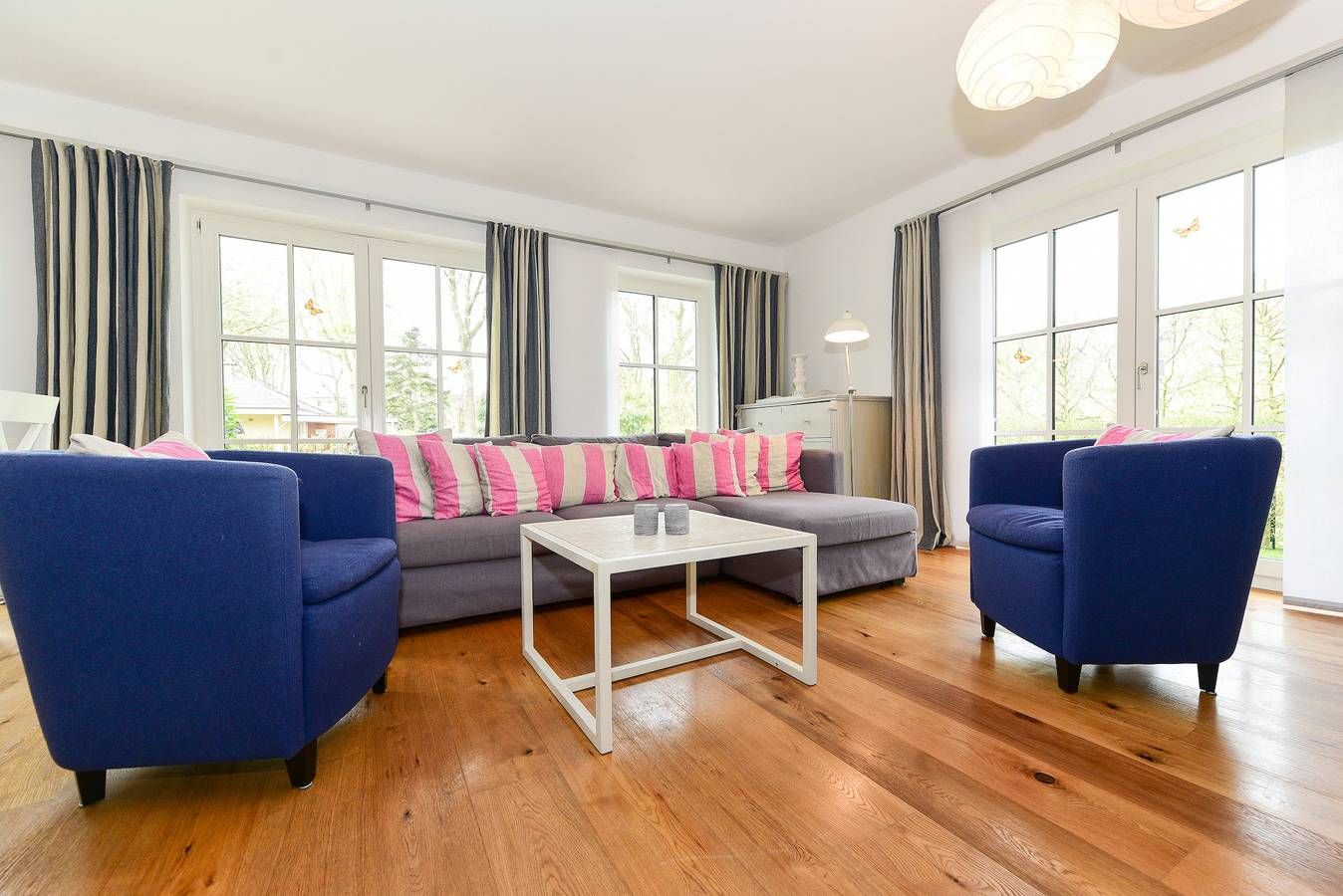 Willkommen im Haus Waldstraße 26 – Ihr exklusives Urlaubsziel am Wyker Südstrand! Genießen Sie unvergessliche Urlaubstage in einer der beiden modernen, stilvoll eingerichteten Wohnungen, die in einer ruhigen, bevorzugten Wohngegend liegen – nur wenige Gehminuten vom Strand und Meer entfernt. Die geschützte Lage der Insel Föhr in der Nordsee sorgt für ideale Strände, die besonders familienfreundlich sind und zahlreiche Bade- und Freizeitmöglichkeiten bieten. Einkaufsmöglichkeiten, Restaurants, Cafés sowie das beliebte Aqua-Föhr Meerwasserwellenbad befinden sich in unmittelbarer Nähe. Zusätzlich steht Ihnen eine 22 kW Wallbox für das Laden Ihres E-Fahrzeugs sowie ein kostenfreier PKW-Stellplatz direkt vor dem Haus zur Verfügung. Ab 7 Übernachtungen ist die Erstausstattung mit Bettwäsche und Handtüchern inklusive, sodass Sie direkt in Ihren Traumurlaub starten können. Für Großfamilien oder Freunde bieten wir die Möglichkeit, das gesamte Haus zu einem exklusiven Preisvorteil von 10% des Mietpreises zu buchen, sodass Sie alle Annehmlichkeiten und den gesamten Raum für Ihre gemeinsame Erholung genießen können. Das Haus Waldstraße 26 ist ein DTV-klassifiziertes 4-Sterne-Objekt, das Ihnen hohen Komfort und eine erstklassige Ausstattung bietet, um Ihren Urlaub noch angenehmer zu gestalten. Die Erdgeschoss- und Souterrain-Wohnung "Brandente" bietet Ihnen alles für einen rundum erholsamen Urlaub. Der großzügige, lichtdurchflutete Wohn- und Essbereich wird durch eine sonnige Südterrasse ergänzt und lädt zum Entspannen ein. Der dänische Ofen sorgt an kühleren Tagen für behagliche Wärme, während die bodentiefen Fenster den Raum mit Tageslicht durchfluten. Der Esstisch ist ideal für gesellige Runden, und die offene, modern ausgestattete Küche begeistert Hobbyköche. Zwei der vier Schlafzimmer befinden sich im Erdgeschoss: eines mit einem komfortablen Doppelbett und das andere mit zwei Einzelbetten. Im Souterrain erwarten Sie zwei weitere Schlafzimmer, jeweils mit Boxspringbetten für besten Schlafkomfort. Das großzügige Badezimmer im Erdgeschoss, mit einer Badewanne, die mit Lichttherapie für zusätzliche Entspannung sorgt, und einer Regendusche bietet den perfekten Rückzugsort. Ihre private Wellness-Oase mit Sauna, Ruheliege und einer weiteren Regendusche im Souterrain rundet das Erlebnis ab – der ideale Ort, um den Alltagsstress hinter sich zu lassen. Den Gästen des Hauses steht eine 22 KW Ladestation für Elektrofahrzeuge kostenfrei zur Verfügung. Strandkorbsaison: 01.05. - 30.09.
