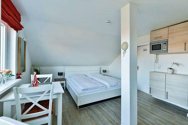 Kleines, renoviertes 1-Zimmer-Appartement in strandnaher Lage. Sie wohnen in der charmanten Villa "Brönshoog" im Bäderstil-Villa - im Herzen von Wenningstedt am schönen Wenningstedter Dorfteich gelegen. Renoviertes Appartement am schönen Wenningstedter Dorfteich auf Sylt. Modernes und gemütliches 1-Zimmer-Appartement (2. Etage, ca. 25 qm) mit Pantry-Küche (Ceran-Kochfeld, Geschirrspülmaschine, Mikrowelle, Kühlschrank und Eisfach, Kaffeemaschine, Toaster, Wasserkocher etc.), ein Doppelbett mit zwei Matratzen (1,80 x 2,00 Meter), Esstisch, TV, Radio, kostenloses Internet (WLAN) sowie ein Badezimmer mit Dusche, WC und Föhn. Waschmaschine, Wäschetrockner und ein kostenloser Pkw-Abstellplatz sind am Haus vorhanden. Am Haus steht Ihnen ein kostenloser Pkw-Abstellplatz zur Verfügung (freie Parkplatzwahl). Villa Brönshoog auf Sylt: Zentral, in der Ortsmitte von Wenningstedt auf Sylt gelegen - nur 400 Meter vom Strand entfernt mit Blick auf den idyllischen Wenningstedter Dorfteich! Diverse Einkaufsmöglichkeiten wie Bäcker, Supermarkt, Drogerie, Apotheke etc. sowie Restaurants, Bistros, Fahrradverleih und Friseur befinden sich in unmittelbarer Nähe. Eine Bushaltestelle ist nur ca. 50 Meter vom Haus entfernt. Das Haus verfügt insgesamt über 5 schöne Appartements. Bitte schauen Sie sich auch unsere anderen, neu renovierten Appartements an: Objektnummern 105718, 105722, 106246 und 106268. Sie können sich alle fünf Appartements der Bäderstil-Villa hier bei Sylt-Travel anschauen. - Ein Schlüsselsafe befindet sich direkt am Haus, sodass Sie zu jeder Zeit anreisen können. - Von Ihrem Appartement aus haben Sie einen kleinen Dorfteich-Blick. Strandnahe, zentrale Lage. - Persönlich geführte Appartements und Ansprechpartner in unmittelbarer Nähe. Bitte beachten Sie, dass eine eventuell anfallende Kurabgabe nicht im Gesamtpreis enthalten ist. Diese ist vor Ort zu leisten.