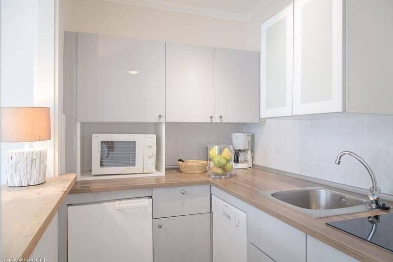 Haus Carmen Sylva, direkt am Strand, Dünenstraße 12, Appartement 25, Westerland für 2 Personen. Das Appartement befindet sich in der 2. Etage in einem beliebten, mehrstöckigen Appartementhaus, direkt am Strandübergang. Die Wohnung ist hell und freundlich eingerichtet und mit Laminat ausgelegt. Im Wohnbereich befindet sich ein Essplatz und eine Sitzgruppe. Im Schlafzimmer steht ein Doppelbett (Bett 160 x 200). Die separate Küche ist offen gestaltet und hat einen Tresen. Duschbad. Im Haus befindet sich ein Fahrstuhl, dieser hält nur in Zwischenetagen, Zugang zum Appartement nicht barrierefrei. Eine Waschküche mit Münzautomaten steht zu Ihrer Verfügung.