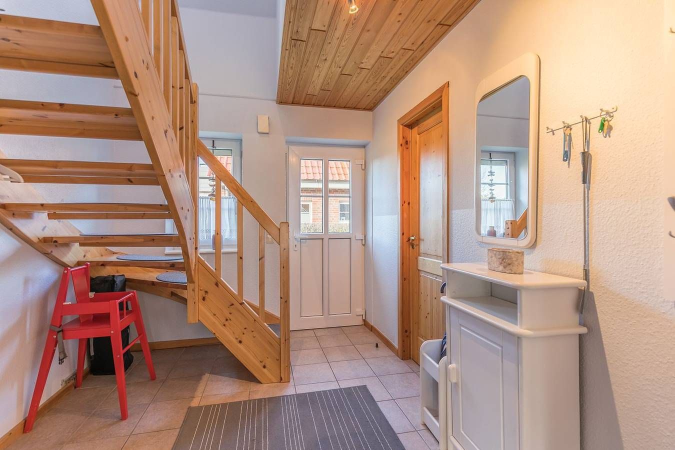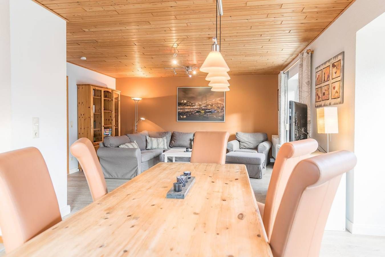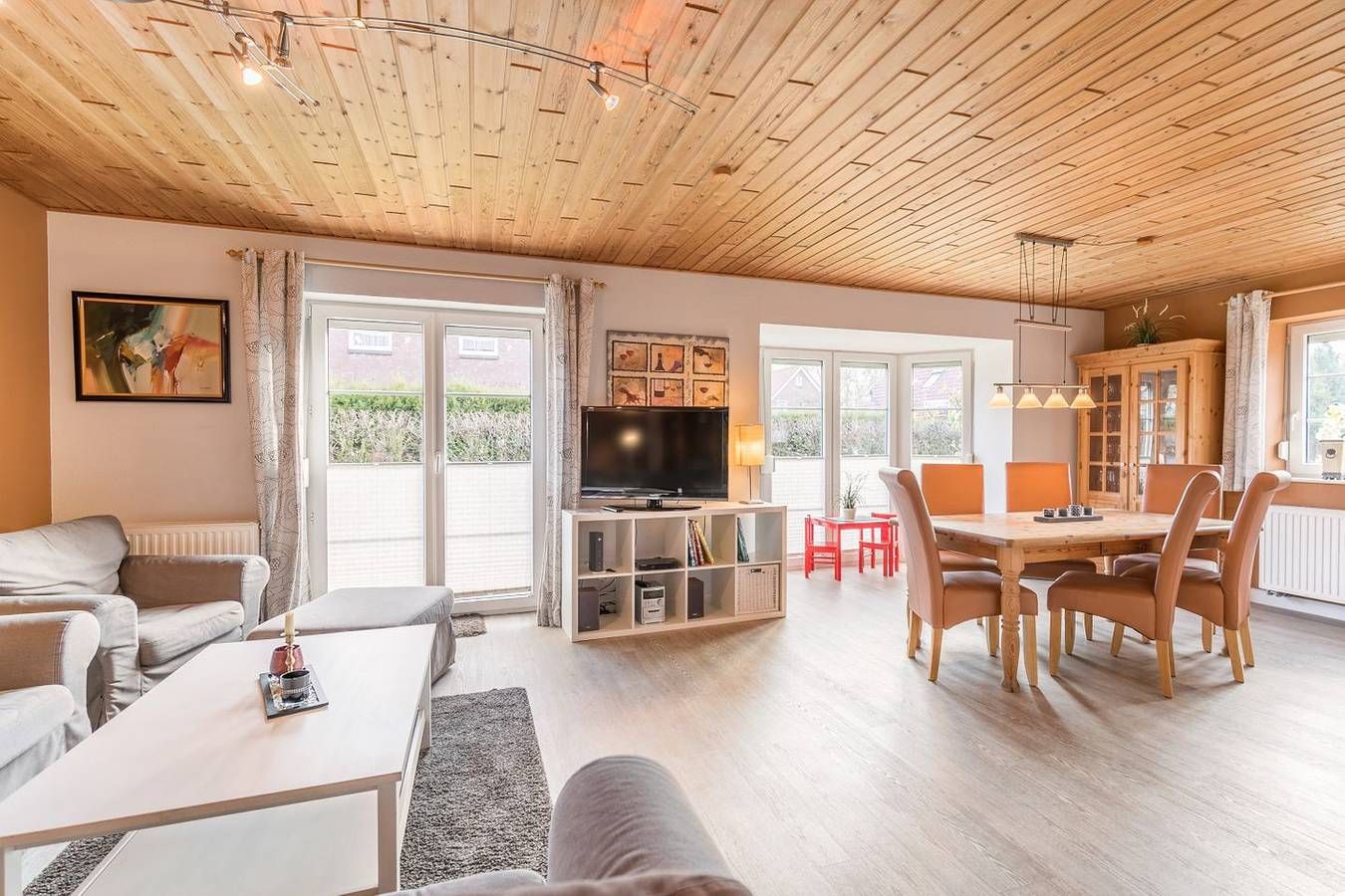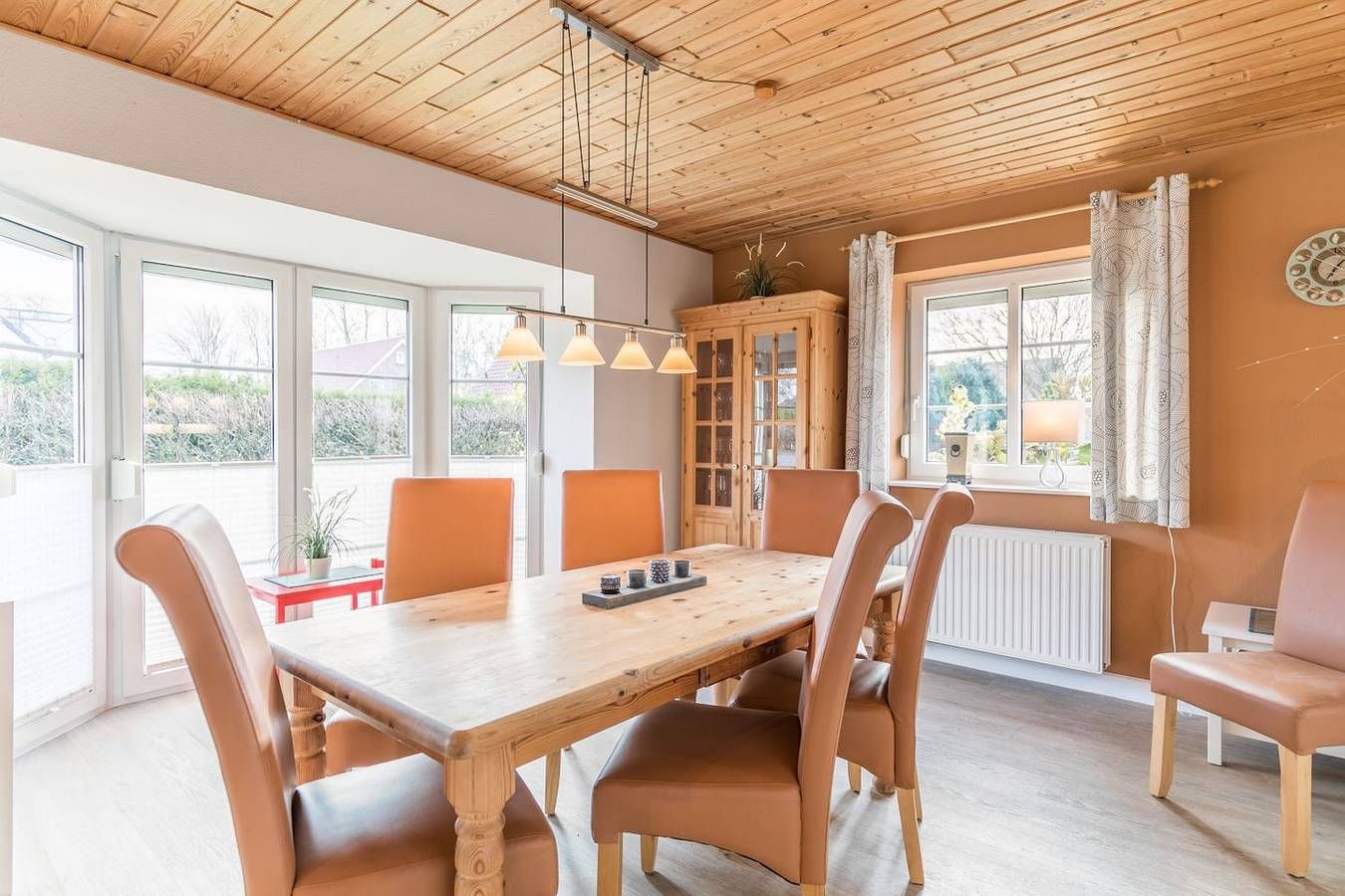 Ferienhaus Dania13 – großzügiger Nordseeurlaub für die ganze Familie In ruhiger Lage in einem Wohngebiet von Büsum heißt Sie das gemütliche Ferienhaus Dania13 herzlich willkommen. Die Doppelhaushälfte im skandinavischen Stil bietet auf rund 104 m² ausreichend Platz für bis zu 6 Personen – ideal für Familien, Freunde und auch Ihren Vierbeiner. Im Erdgeschoss erwartet Sie ein heller Wohn- und Essbereich mit Zugang zur Terrasse und zum kleinen Garten. Die funktionale Küche ist gut ausgestattet und erfüllt alle Ansprüche des täglichen Bedarfs. Zwei Bäder – eines davon mit Eckwanne – sowie drei separate Schlafzimmer sorgen für Komfort und Privatsphäre. Ein eigener Parkplatz direkt am Haus, Außenjalousien, WLAN und ein abschließbarer Fahrradschuppen stehen Ihnen ebenfalls zur Verfügung. Die Familienlagune, Einkaufsmöglichkeiten und das Zentrum von Büsum sind bequem erreichbar. Freuen Sie sich auf entspannte Urlaubstage in freundlicher, ruhiger Atmosphäre – im Ferienhaus Dania13! Wohnzimmer EG: Ecksofa und Sessel, Essbereich für 6 Personen, Kabel-TV, 102cm Flachbildschirm, Radio Küche EG: Zum Essbereich offen, Ceranfeld, Backofen, Mikrowelle, Kaffeemaschine, Wasserkocher, Kühlschrank Hauswirtschaftsraum EG: Spülmaschine, Waschmaschine, Gefrierschrank, Bügelbrett- und -eisen Windfang EG: Großzügige Hänge- und Ablagemöglichkeiten, Schuhständer, Kindertisch mit 2 Kinderstühlen Bad 1: EG, begehbare Dusche, WC Bad 2: OG, Dusche, WC, Eck-Badewanne, Spiegelschrank Schlafzimmer 1 / OG: Doppelbett, Kleiderschrank, Kabel-TV, 66cm Flachbildschirm mit BluRay-Player Schlafzimmer 2 / OG: OG, Doppelbett Kleiderschrank Schlafzimmer 3 / OG: 2 Einzelbetten, Kleiderschrank Haus & Service: W-LAN, Außenjalousien, Garten, Strandkorb am Haus, 1 kostenloser Parkplatz, Pavillon im Garten, Kinderhochstuhl sowie Kinderreisebett, Fahrradschuppen, Wäsche optional dazu buchbar Hunde-Informationen: Hunde-Freilauffläche im Rechenmeisterweg 4 in Büsum, Hundestrände in Büsum, Westerdeichstrich und Deichhausen, Tierarzt 3km entfernt Gerne begrüßen wir zum Urlaub Sie im Ferienhaus Dania 13 bei uns in Büsum!