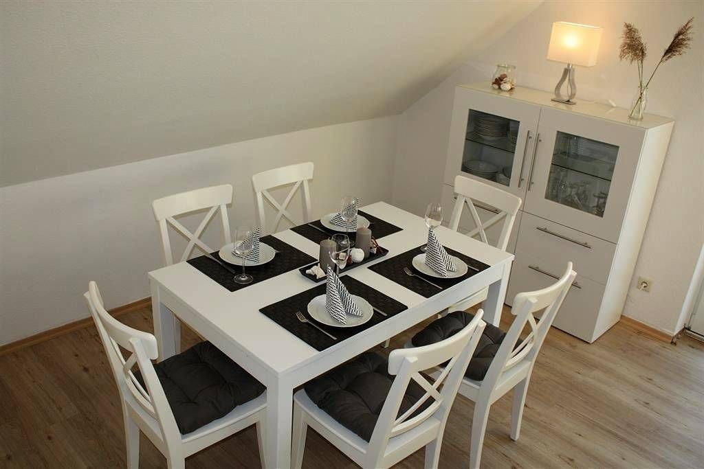 NEU 2018! ...unsere komfortable Ferienwohnung "Seeadler" ca. 90m² wurde Anfang 2018 komplett renoviert, befindet sich im 1.Stock und verfügt über 2 Schlafzimmer (Betten 90x200cm und 80x200 cm) mit neuen Matratzen, ein großes Wohnzimmer mit Schlafcouch (140x200cm) und einer gemütlichen Lounge-Ecke, einem SAT-Flachbild-Fernseher und einer Musikanlage. Auf der Galerie lädt das Esszimmer mit komplett neuer, offener und zeitgemäß eingerichteter Küche zum gemeinsamen Genießen ein. Auch das Badezimmer wurde komplett erneuert, ist hell und modern gestaltet und verfügt neben WC und Dusche auch über eine Waschmaschine und einen Haarfön. Ein Parkplatz und W-LAN stehen Ihnen außerdem zur Verfügung. Vom Balkon aus genießen Sie den Blick über Felder und Wiesen, direkt auf den Nordseedeich. Den großen Garten mit Pavillon und Gartenmöbeln können Sie zur Erholung und zum Spielen nutzen. In dem Haus befindet sich eine zweite Ferienwohnung, sodass es auch möglich ist, das gesamte Haus mit beiden Wohnungen für bis zu 12 Personen zu mieten. Unsere Ferienwohnungen „Deichblick“ und „Seeadler“ liegen im schönen Vollerwiek, am Meer, auf der nordfriesischen Halbinsel Eiderstedt. Sie haben die Möglichkeit das komplette Haus zu buchen. Es besteht aus 2 separaten Wohnungen, die durch einen gemeinsamen Flur verbunden sind. Vom Ortskern in Vollerwiek zur Nordsee sind es ca. 800m. Die endlosen Sandstrände von St. Peter Ording sind mit dem Auto in wenigen Minuten zu erreichen. Das Haus liegt auf einem 1000 qm Grundstück mit herrlichem Garten und viel Platz zum Erholen und Spielen. Die Entfernung nach Garding (mit Einkaufsmöglichkeiten wie Edeka, Bäcker, Drogerie, Apotheke, Restaurants u.s.w.) beträgt ca 5 km. Ein sehr schönes ruhiges, kinderfreundliches und doch zentrales Urlaubsgebiet erwartet Sie. Der Himbeer/- Brombeer-Garten zum Selbstpflücken plus Cafe sind zu Fuß in ca. 2 Minuten erreichbar. Direkt gegenüber dem Haus befindet ein Fahrradverleih. Ein Wäschepaket (Bettwäsche und Handtücher) kann unter Zusatzgebühr hinzugebucht werden. Ein Kinderhochstuhl eine Babywippe, Parkplätze und ein Kinderbett stehen Ihnen kostenfrei zur Verfügung. ~Die Anreise ist ab 16Uhr möglich~ So finden Sie zum Ferienhaus Deichblick: Sie kommen aus Süden auf der A23. Diese bis zum Ende fahren und auf der B5 weiter in Richtung Tönning. Dort folgen Sie der Ausschilderung in Richtung St. Peter-Ording auf der B202 bis in die Ortschaft Garding. Im Ort Garding biegen Sie links hinter dem EDEKA markt in Richtung Welt/Vollerwiek ab. Hinter der Ortschaft Welt überqueren Sie die Eiderdammstraße und kommen nach ca. 1km in unseren Ort Vollerwiek. Hinter dem Ortschild biegen Sie in die erste Straße rechts (“Im Dorf”) ein und sind direkt am Ziel. Das Ferienhaus Deichblick ist rechts das erste Haus.