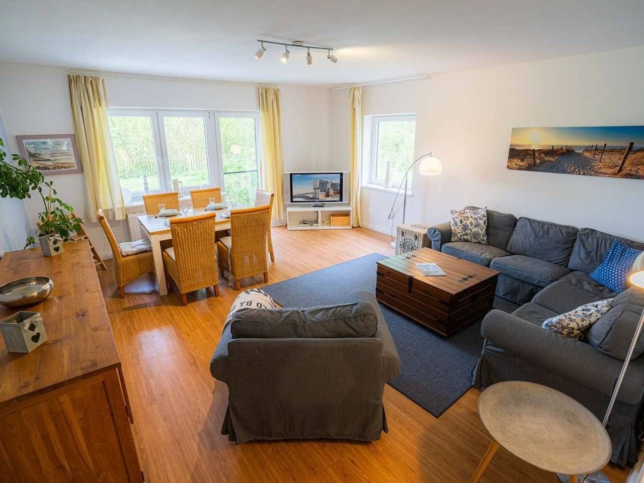Ruhe. Erholung. Am Deich. Schöne 3-Zimmer-Ferienwohnung Wellenreiter im Haus Deichwelle - landestypisch unter Reet - mit ca. 92 m² auf 1 Ebene (EG) für bis zu 5 Personen (Wohlfühlbelegung: max. 4 Erwachsene). In ruhiger,...