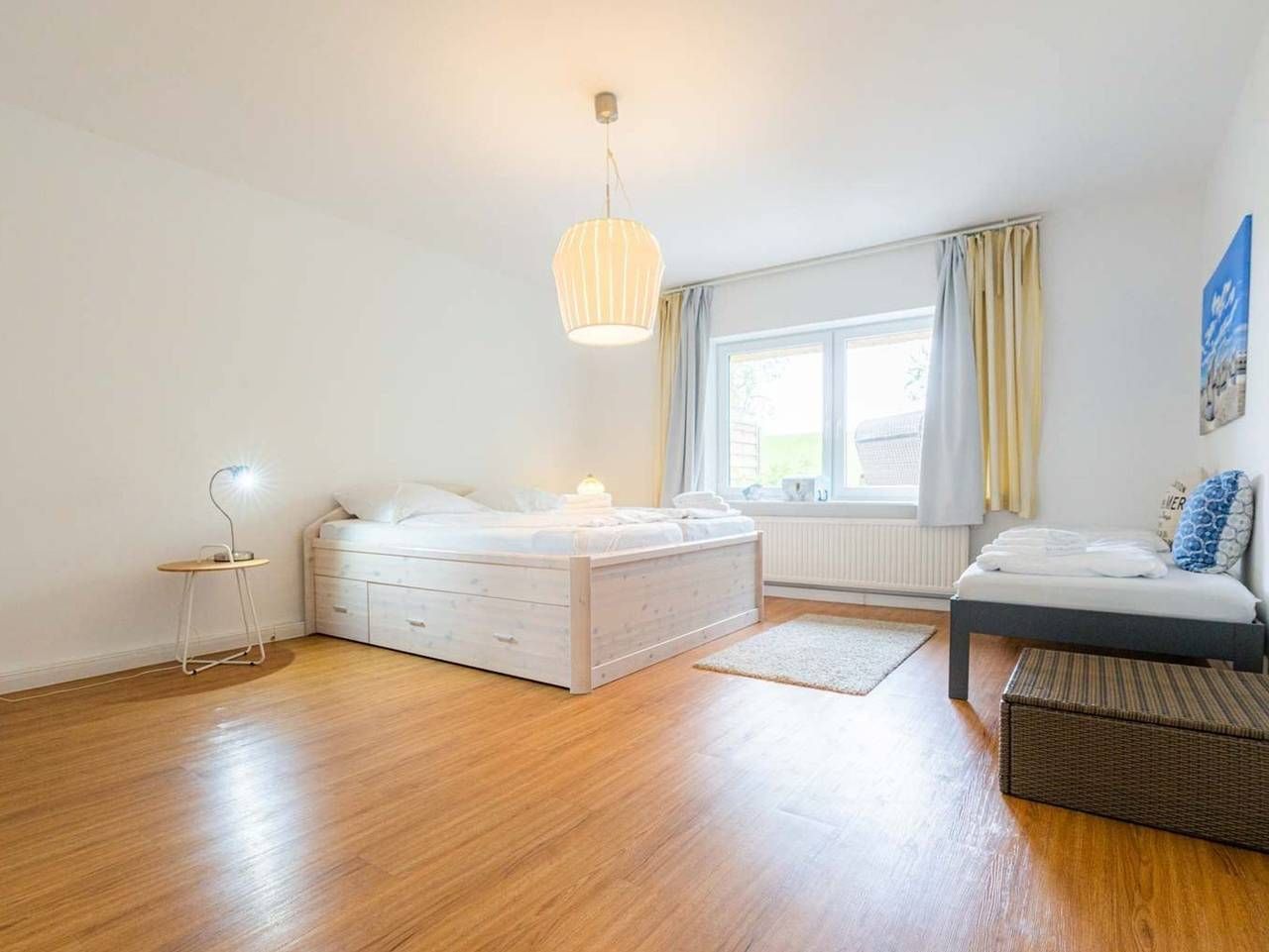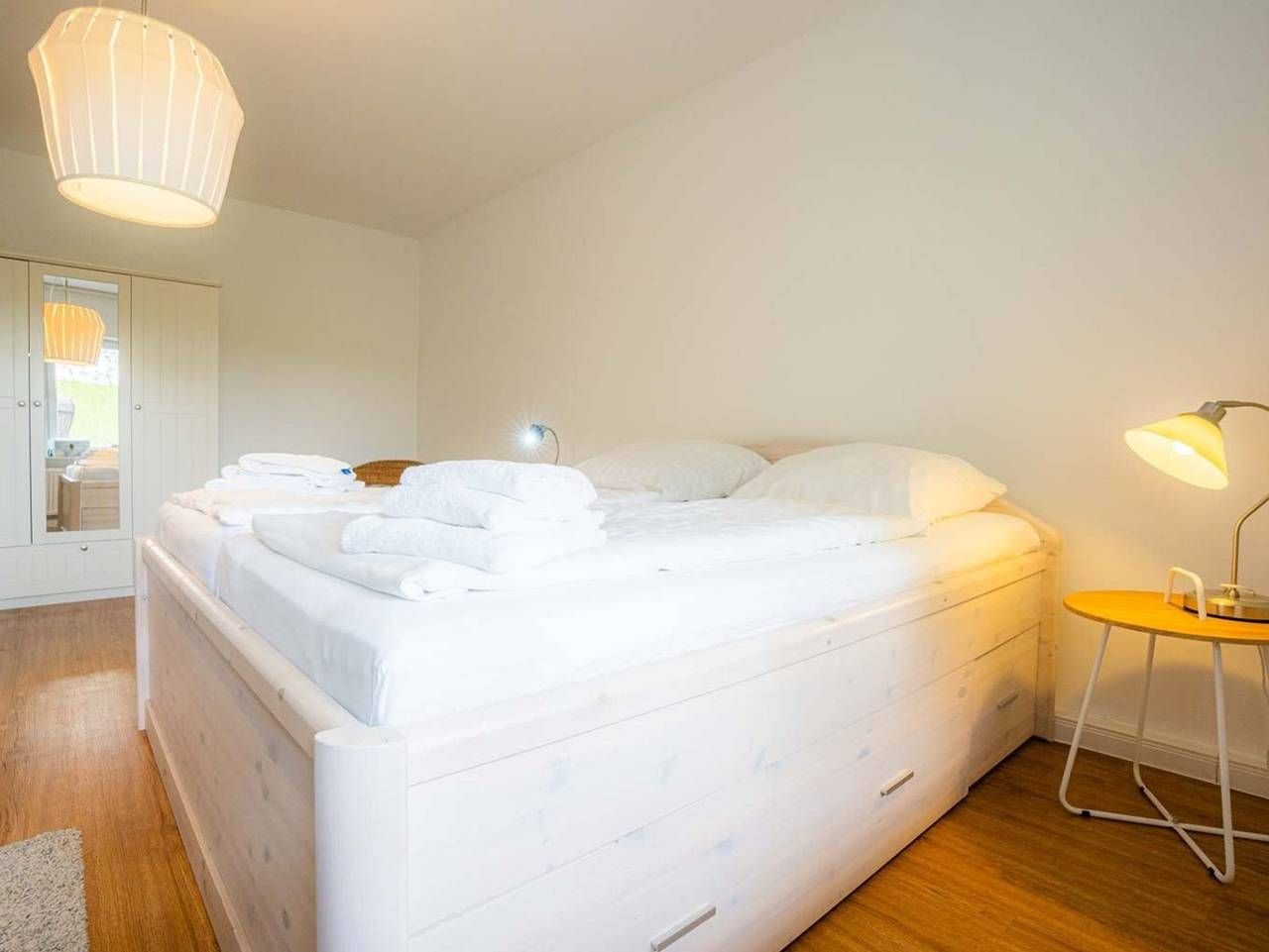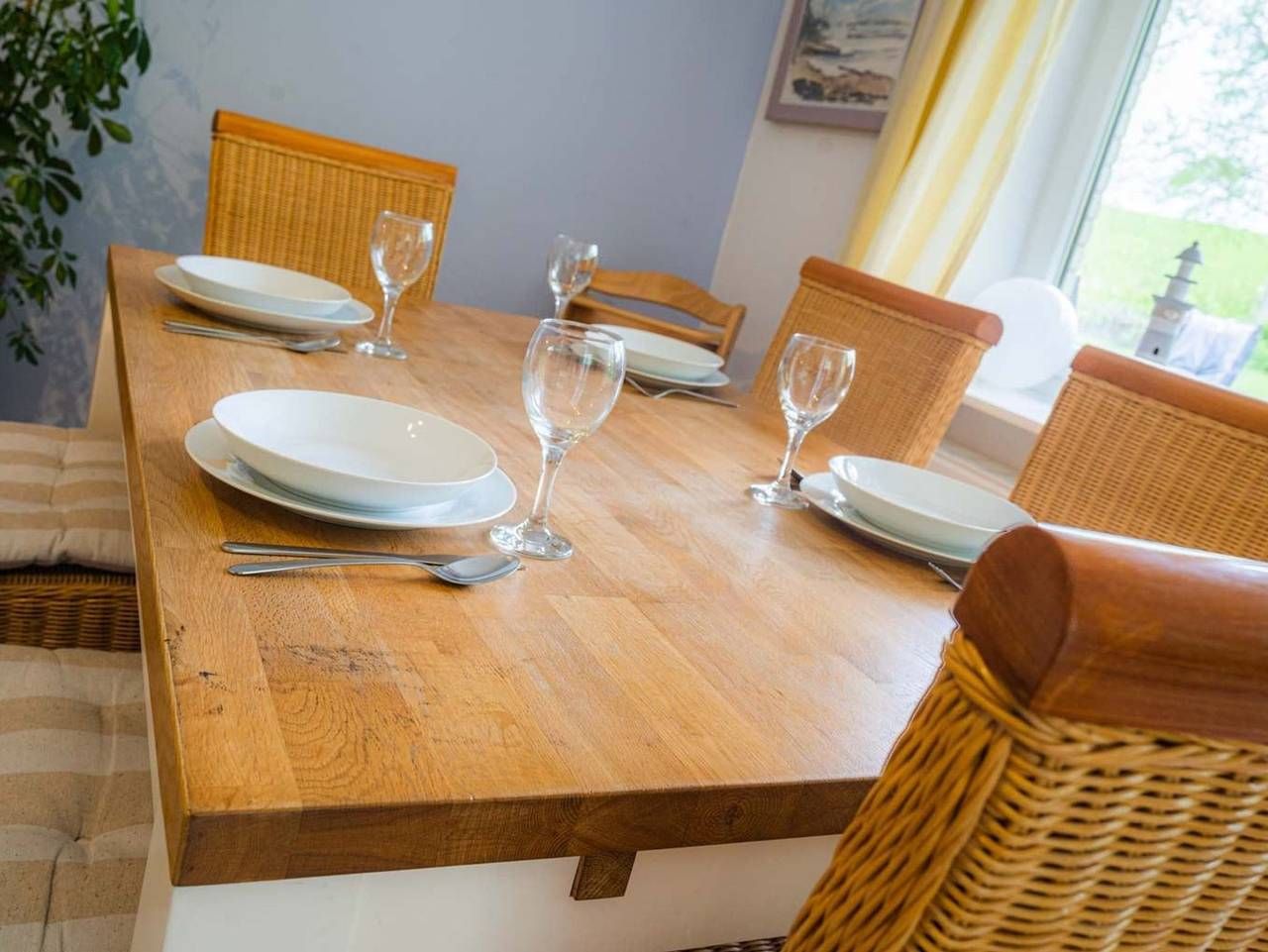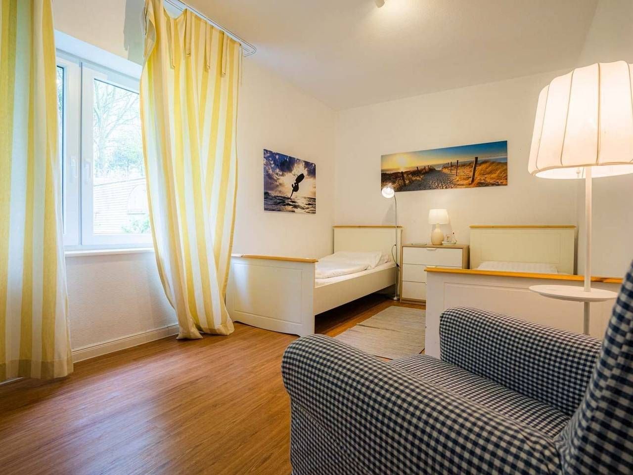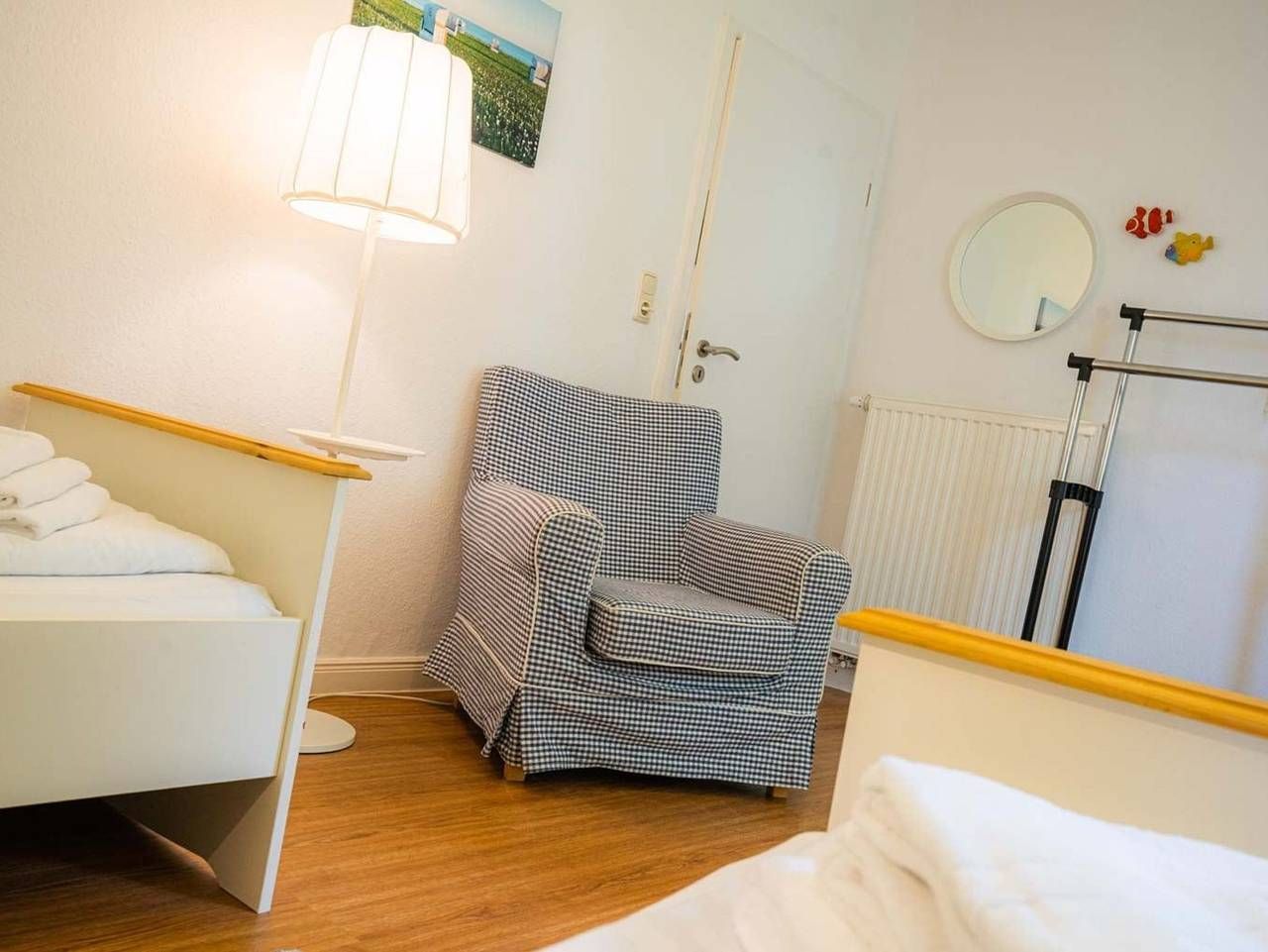 Ruhe. Erholung. Am Deich. Schöne 3-Zimmer-Ferienwohnung Wellenreiter im Haus Deichwelle - landestypisch unter Reet - mit ca. 92 m² auf 1 Ebene (EG) für bis zu 5 Personen (Wohlfühlbelegung: max. 4 Erwachsene). In ruhiger, naturnaher Lage direkt hinter dem Deich in Vollerwiek. Zur Badestelle ist es nur ein kurzer Weg zu Fuß. Ein Hund ist herzlich willkommen. Wohnzimmer mit großem Ecksofa, Sessel, TV (Sat) mit DVD-Player und Esstisch mit 6 Stühlen. Kostenloses WLAN. Direkter Zugang zur möblierten Süd-Terrasse mit Blick auf den Deich. Separate Küche mit Backofen, Mikrowelle, Geschirrspüler und Kühlschrank mit Gefrierfach. 1. Schlafzimmer mit Doppelbett (2x 90x200cm), einfachem (ausklappbarem Schlaf-) Sofa (115x200cm) und Kleiderschrank. 2. Schlafzimmer mit 2 Einzelbetten (je 90x200cm), Sessel und Kleiderschrank. Badezimmer (Duschbad) mit Dusche, WC, Tageslicht und Föhn. Großer Flur mit Garderobe und Spiegel im Eingangsbereich der Wohnung. In diesem Domizil sind ein kostenloses Kinderreisebett (nur Gestell, ohne Bettzeug) und ein Kinderhochstuhl vorhanden und können kostenlos genutzt werden. Gemeinschaftlicher Hauswirtschaftsraum mit Waschmaschine und Trockner vorhanden. Hier befindet sich auch Staubsauger. Pkw-Stellplatz vor dem Haus. Fahrräder können in einer Garage abgestellt werden. Auf dem großen Gartengrundstück befinden sich Kinderspielgeräte und eine Picknick-Bank. Die Bettwäsche wird gestellt. Handtücher können dazugebucht werden. Rauchen ist nicht erlaubt. In unserem Reetdachhaus direkt hinterm Deich können Sie unbeschwerten Urlaub machen. Kein Lärm, nur Meeresgeräusche, Schafsblöken und der Wind der durch die alten Bäume streift - herrlich! Entspannen Sie in unserem riesigen Garten mit Liegen, bringen Sie Fahrräder mit, wir haben einen Fahrradunterstand, einen Parkplatz vor dem Haus, 200 m zum Deichübergang. Hier können Sie bei Flut direkt baden, 600 Meter zur Badestelle und Imbiss Vollerwiek. WLAN im Haus. Hunde sind gern gesehene Gäste (1 Hund/Wohnung). Ihre Betten sind frisch bezogen - Ferien in der DeichWelle sind einfach stressfrei! Alle volljährigen Mitreisenden sind kurabgabenpflichtig.