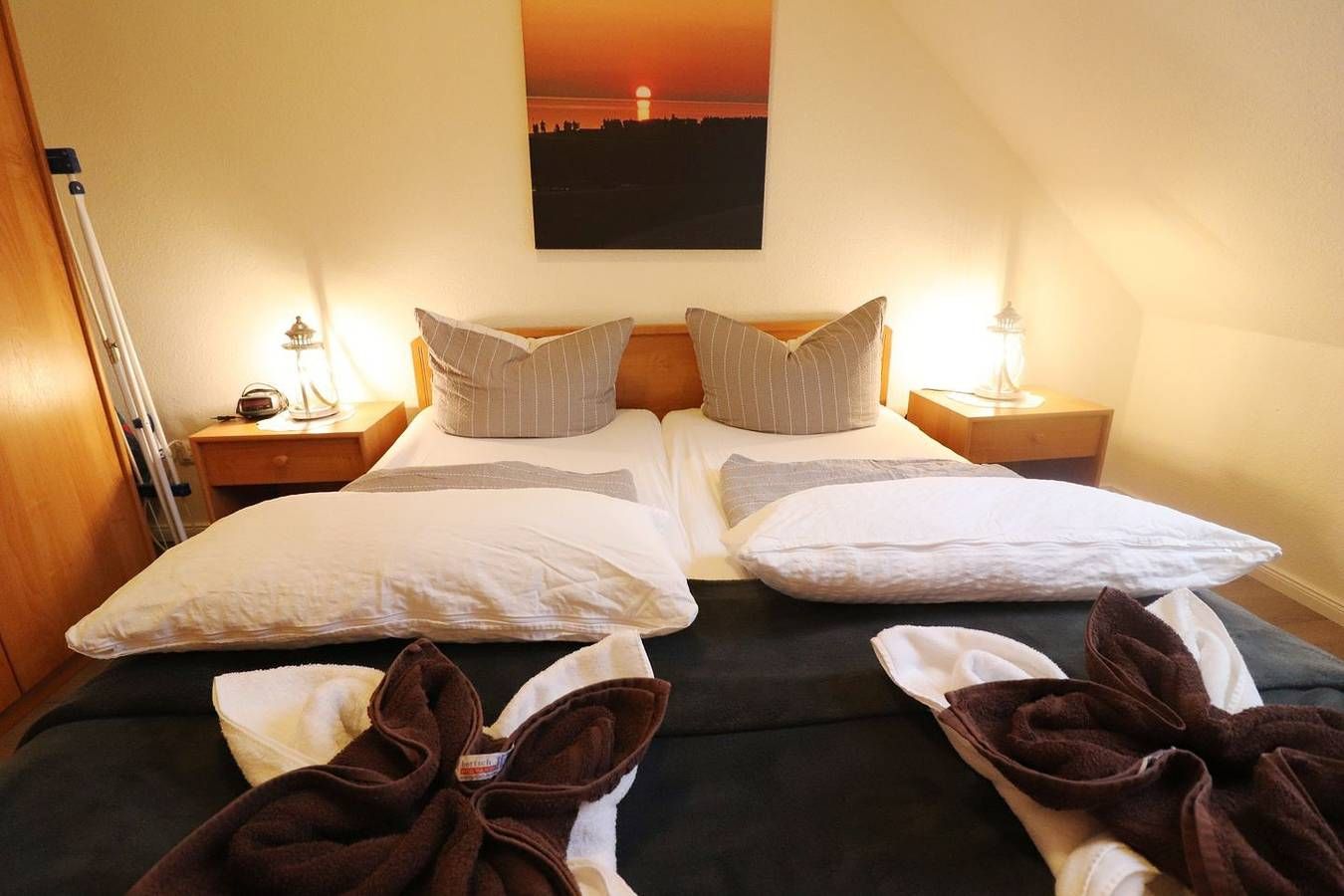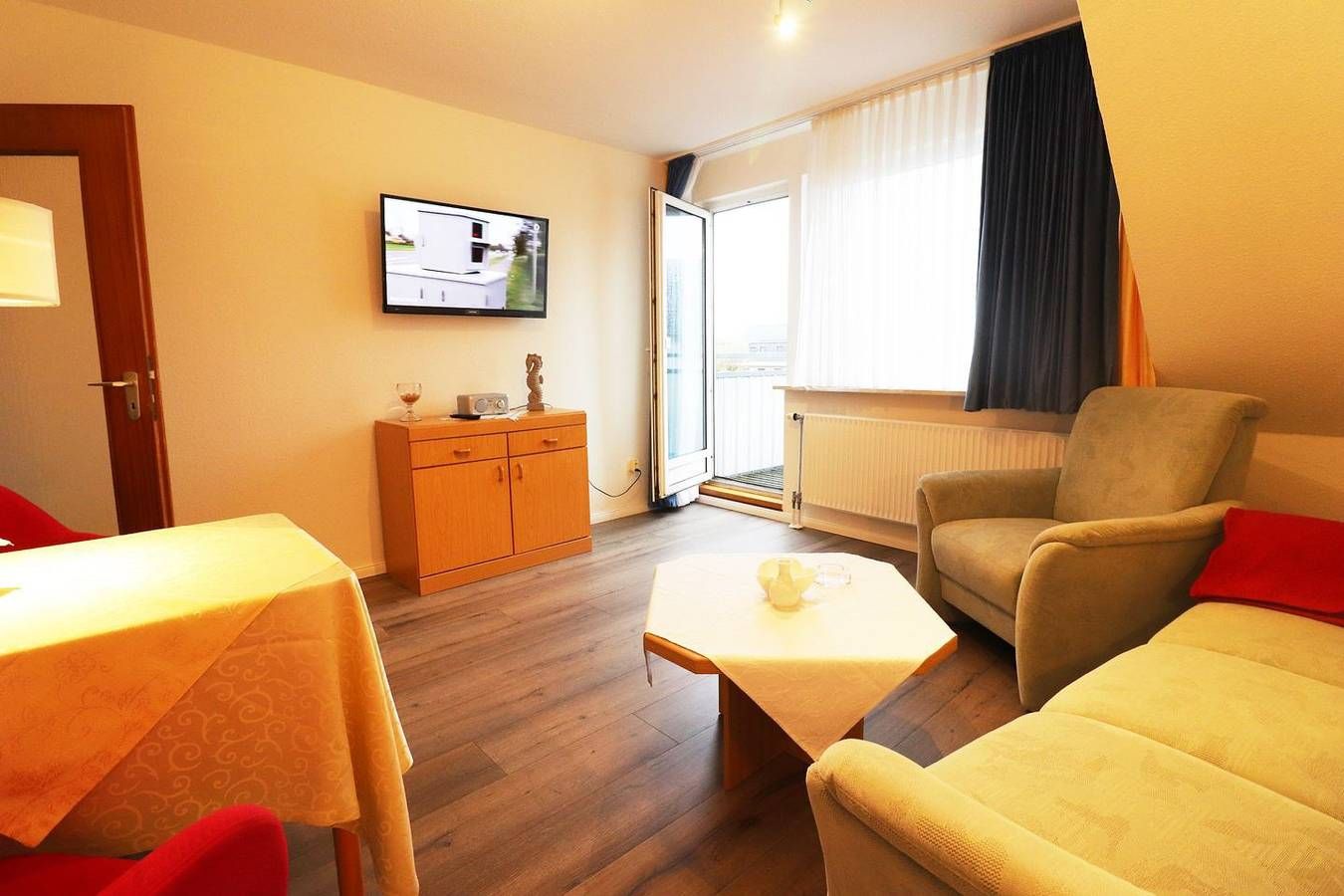 Die 2-Raum-Wohnung hat ca. 35 m² und 1 Schlafzimmer (1 x Doppelbett). Hervorragend geeignet für Singles und Paare. Dieser Wohnungstyp befindet sich im 2. Stock. Die Wohnung hat eine separate Küche und ein Duschbad. Die Küche hat einen Geschirrspüler, Mikrowelle, Wasserkocher, Kaffeemaschine, Toaster, sowie Geschirr für den täglichen Bedarf sind ebenfalls vorhanden. Haustiere sind nicht erlaubt. Alle Wohnungen im Haus "Dithmarschen" verfügen über WLAN in der Wohnung. Am Haus sind ausreichend Parkplätze vorhanden. Ihnen stehen eine Münz-Waschmaschine und ein Münz-Trockner zur Verfügung. Rasenfläche, eine Sandkiste, sowie ein abschließbarer Carport für Fahrräder sind direkt am Haus gelegen. Durch die Lage im ersten Kurgebiet von Büsum kann man sowohl den Sand- wie auch den Grünstrand bequem zu Fuß erreichen, aber auch der Weg in das Ortszentrum von Büsum ist nicht weit. Ein Bäcker und Supermarkt sind nur eine Querstraße entfernt. Die Betten sind bei Anreise bezogen.