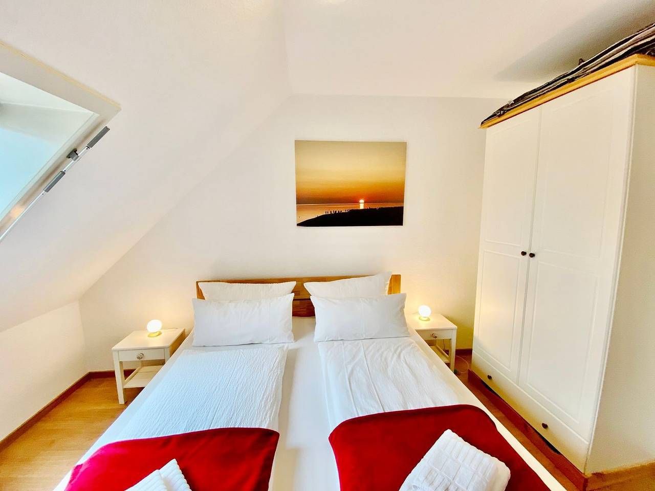 Die 2-Raum-Wohnung hat ca. 35 m² und 1 Schlafzimmer (1 x Doppelbett). Hervorragend geeignet für Singles und Paare. Dieser Wohnungstyp befindet sich im 2. Stock. Die Wohnung hat eine separate Küche und ein Duschbad. Die Küche hat einen Geschirrspüler, Mikrowelle, Wasserkocher, Kaffeemaschine, Toaster, sowie Geschirr für den täglichen Bedarf sind ebenfalls vorhanden. Haustiere sind nicht erlaubt. Alle Wohnungen im Haus "Dithmarschen" verfügen über WLAN in der Wohnung. Am Haus sind ausreichend Parkplätze vorhanden. Ihnen stehen eine Münz-Waschmaschine und ein Münz-Trockner zur Verfügung. Rasenfläche, eine Sandkiste, sowie ein abschließbarer Carport für Fahrräder sind direkt am Haus gelegen. Durch die Lage im ersten Kurgebiet von Büsum kann man sowohl den Sand- wie auch den Grünstrand bequem zu Fuß erreichen, aber auch der Weg in das Ortszentrum von Büsum ist nicht weit. Ein Bäcker und Supermarkt sind nur eine Querstraße entfernt. Die Betten sind bei Anreise bezogen.