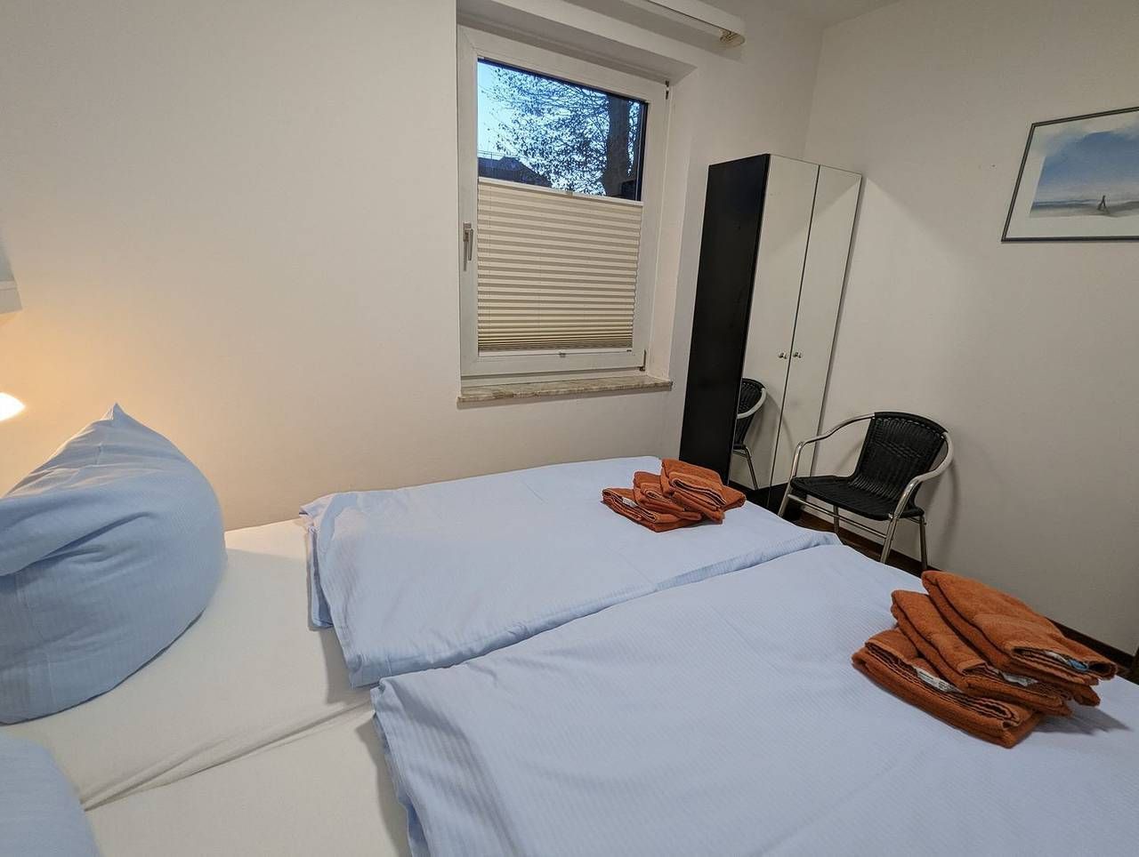 Ihre Wohnung Nr. 3 befindet sich im Erdgeschoss, ist ca. 50 m² groß und verfügt über eine Terrasse und drei Schlafplätze. Diese Wohnung ist wie folgt aufgeteilt: WOHNBEREICH (ein Sofa, 2 Sessel, ein Couchtisch, Sat-TV, CD-Player, kostenloses Internet), Süd-West-Terrasse mit Gartenmöbel und Gartenblick, vollausgestattete WOHNKÜCHE mit Essbereich (u.a. Esstisch mit 4 Stühlen, Geschirrspüler, Mikrowelle, Backofen, Ceranfeld, Kühlschrank mit Gefrierfach, Kaffeemaschine, Toaster, Eierkocher, Besteck und Töpfe), SCHLAFZIMMER mit einem Doppelbett (180 x 200 cm) und einem Kleiderschrank, ein zweites SCHLAFZIMMER mit einem Einzelbett und einem Kleiderschrank, BADEZIMMER mit Dusche, Fenster, WC, Handtuchwärmer, Waschbecken, Spiegelschrank und Föhn, FLUR mit einer kleinen Garderobe für Jacken und Schuhe. Zur Wohnung gehört ein Parkplatz am Haus.