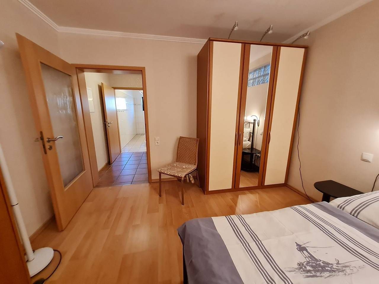 Die Wohnung D2 ist rollstuhlgerecht nach DIN 18025 und für bis zu 4 Personen geeignet. Sie befindet sich im Erdgeschoss, ist ca. 80 m2 groß und wie folgt aufgeteilt: Wohnzimmer mit einer Eckcouch, Relax-Sessel , Sat-TV und Internet, Terrasse mit Gartenmöbeln und Elektrogrill, unterfahrbare Wohnküche mit Essbereich (u.a. Geschirrspüler, Mikrowelle mit Backfunktion), zwei Schlafzimmer mit je einem Doppelbett (davon ein Bett verfügt über elektrisch verstellbares Lattenrost) und einem Kleiderschrank, Badezimmer mit Dusche, Fenster, WC, Waschbecken und Föhn, Abstellraum, Garderobe. WLAN, Waschmaschine und Wäschetrockner können kostenlos genutzt werden. Ein kostenloser PKW-Stellplatz und eine Abstellmöglichkeit für Fahrräder befinden sich neben dem Wohnungseingang.