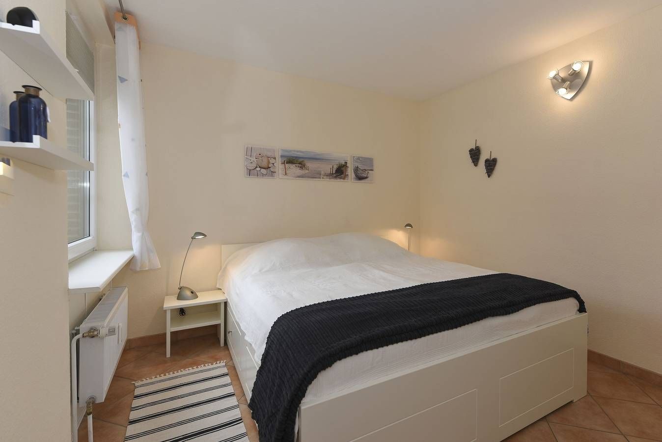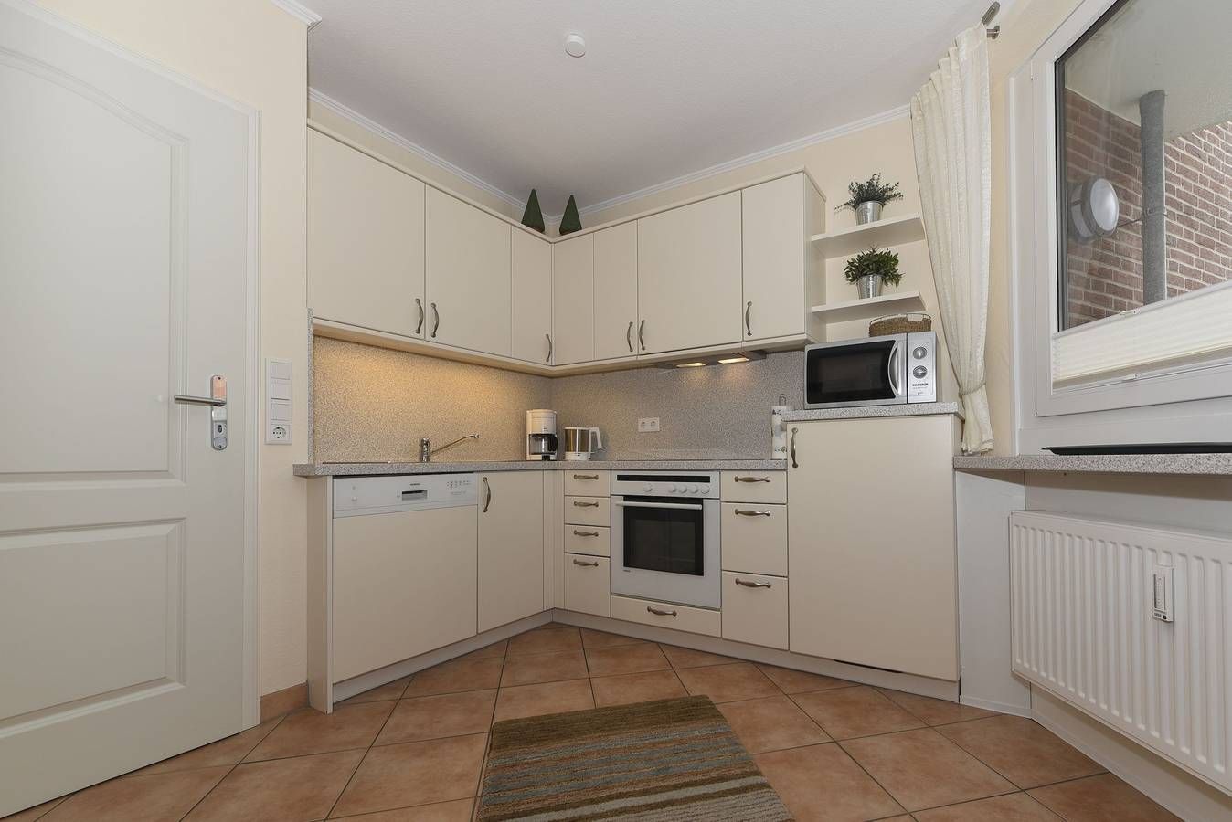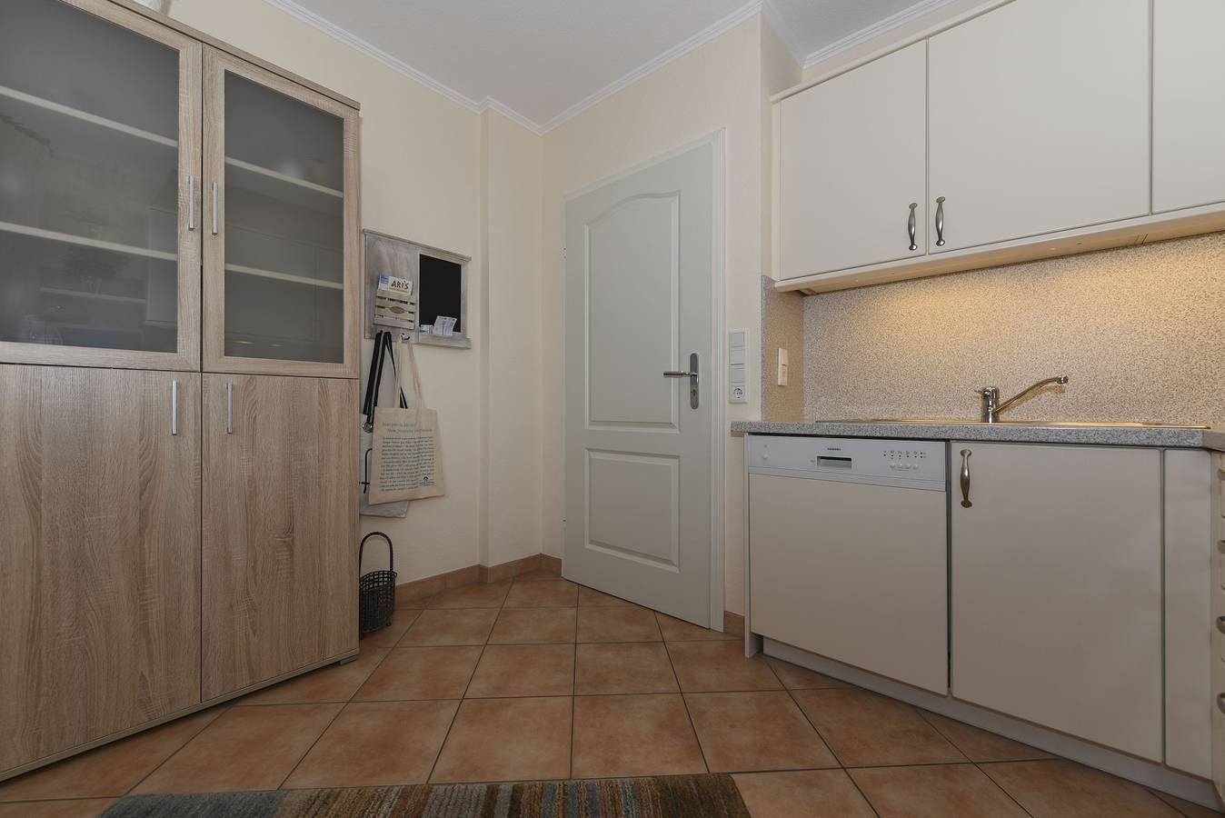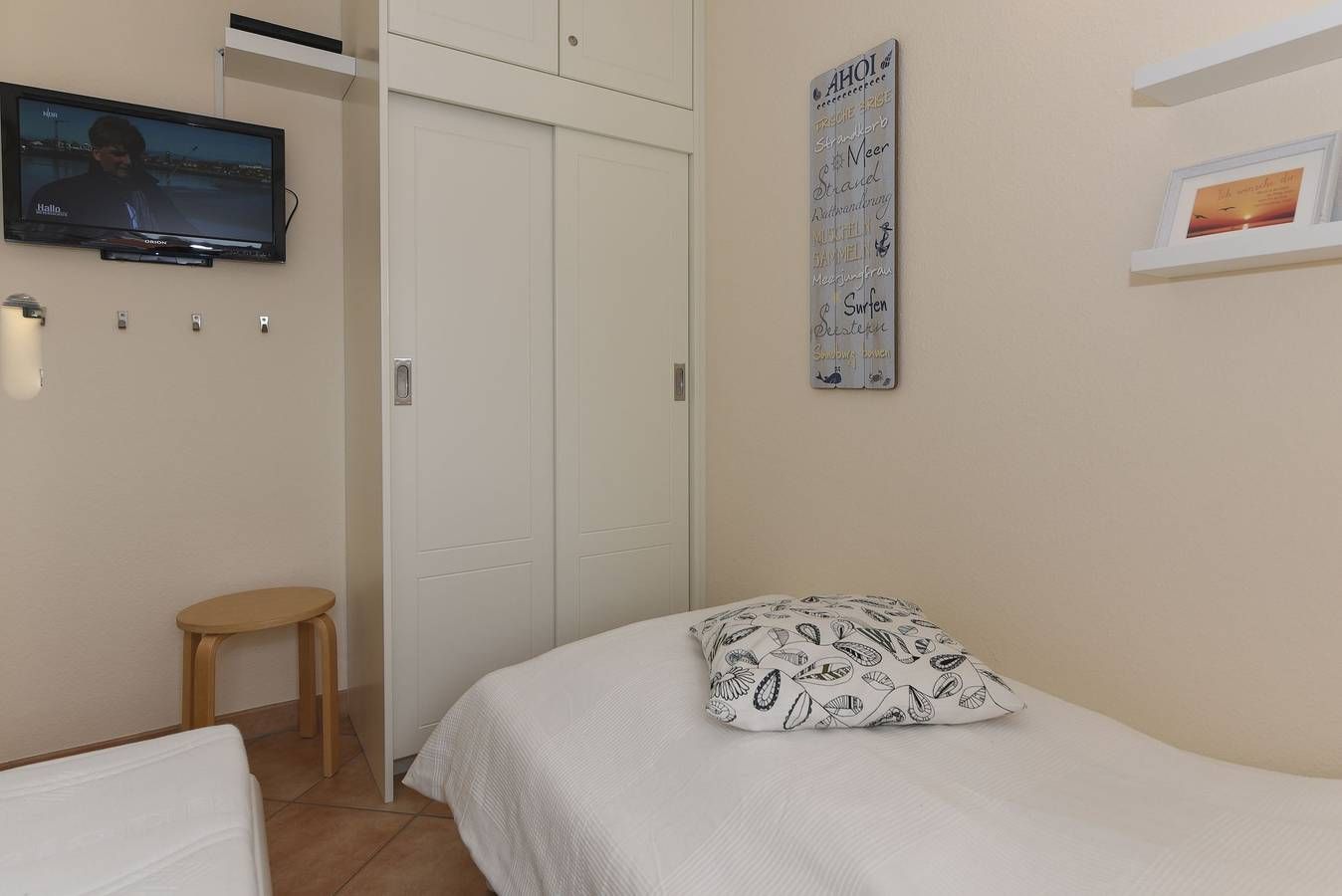 Moin und herzlich willkommen im Haus Flora - Ihrem perfekten Urlaubsdomizil direkt am wunderschönen Wyker Südstrand. Die Ferienwohnung 09 befindet sich in der zweiten Etage und ist bequem mit dem Fahrstuhl erreichbar. Hier erwarten Sie zwei gemütliche Schlafzimmer sowie ein großzügiger Wohn-Küchen-Bereich, der mit seiner einladenden Atmosphäre den idealen Rahmen für erholsame Tage bietet. Der Südbalkon mit Gartenmöbeln lädt dazu ein, die Sonne zu genießen und die frische Nordseeluft in vollen Zügen zu genießen. Für Ihren Komfort sind Einkaufsmöglichkeiten, ein Bäcker, das Schwimmbad AQUAFÖHR und die charmante Wyker Innenstadt mit ihren Cafés und weiteren Geschäften nur wenige Gehminuten entfernt. Bei einem Aufenthalt ab 18 Übernachtungen ist die Erstausstattung mit Bettwäsche und Handtüchern inklusive, damit Sie Ihren Urlaub von Anfang an entspannt genießen können. Erleben Sie erholsame Tage in Ihrer großzügigen Ferienwohnung, die ideal für eine Familie mit bis zu vier Personen gestaltet ist. Der offene Küchenbereich geht nahtlos in den Wohnbereich über und schafft ein einladendes Ambiente, in dem Sie sich sofort wohlfühlen werden. Die große Eckgarnitur lädt zu entspannten Stunden ein, während moderne Unterhaltungstechnik und ein Flachbildschirm zusätzlichen Komfort bieten. Im Elternschlafzimmer erwarten Sie ein gemütliches Doppelbett und ein großer Kleiderschrank, der viel Platz für Ihre Urlaubsgarderobe bietet. das zweite Schlafzimmer ist mit zwei Einzelbetten ausgestattet und verfügt über einen weiteren TV mit DVD-Player. Das geräumige Badezimmer ist modern eingerichtet und mit einer praktischen Dusche ausgestattet. Ein Highlight der Wohnung ist der große, sonnige Balkon mit bequemen Möbeln. Hier können Sie nicht nur die frische Nordseeluft genießen, sondern auch einen herrlichen Meerblick zwei vorgelagerten Ferienobjekten hindurch bewundern. Lassen Sie die Seele baumeln und genießen Sie unvergessliche Momente. Wir freuen uns auf Ihren Besuch. Kinderbetten: 80 x 190cm