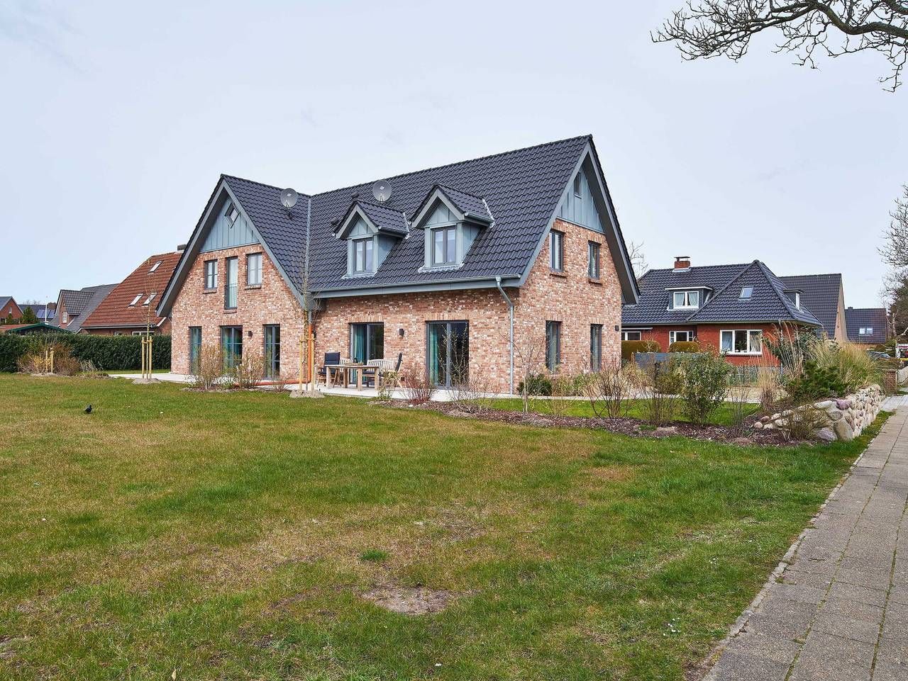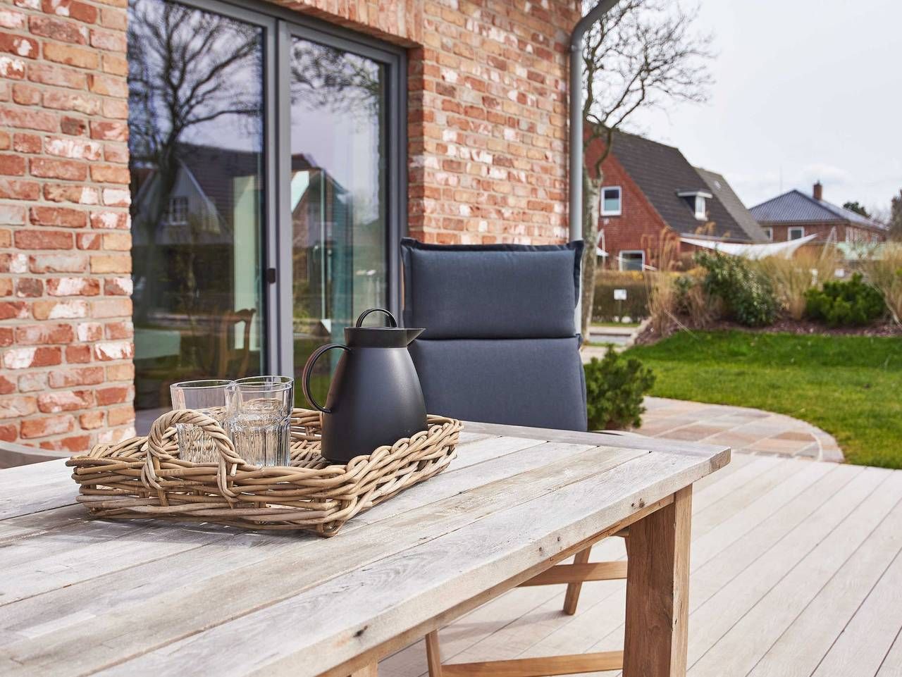 Sie wohnen zentral direkt im Herzen von Wyk, trotzdem ruhig gelegen. In wenigen Gehminuten gelangen Sie entweder zur Promenade mit den Restaurants, Cafés und Geschäften und dem weitläufigen, kinderfreundlichen Strand oder in das Wäldchen Löwenhöhle, in dem sich der größte Spielplatz der Insel befindet. Die DHH ist ca. 100 qm groß und bietet 3 Schlafzimmer für insgesamt 5 Personen. Ihr Kleinkind bis zu einem Alter von 2 Jahren können Sie selbstverständlich mitbringen, wir stellen Ihnen gern Hochstuhl und Reisebett kostenlos zur Verfügung. Zwei helle freundliche Badezimmer mit Duschbereich sorgen dafür, dass es am Morgen nicht zu Wartezeiten kommt. Im gemütlich eingerichteten Wohn- Esszimmer befindet sich die modern eingerichtete Küche in der Sie alles finden, was für einen gelungenen Urlaub nötig ist. Ein Mylinkachelofen, der mit Bioethanol befeuert wird, gehört ebenfalls zur Ausstattung des Wohnzimmers. Von der Küche aus haben Sie Zugang zur Terrasse. Zur Küche gehört ein Hauswirtschaftsraum mit Waschmaschine und Trockner. Im 1. Obergeschoss befinden sich alle drei Schlafzimmer (1 x Doppelbett, 2 x Einzelbett und 1 x Einzelbett) sowie das große Badezimmer. Das zweite Badezimmer befindet sich im Erdgeschoss. Im Dachgeschoss befindet sich eine Sauna für die kalten Tage. Dieses Haus ist somit gerade für große Familien gut geeignet. Ein PKW-Stellplatz befindet sich direkt am Haus. Sehen Sie sich gerne auch das Nachbarhaus „Friesenstern“ auf unserer Homepage an. Die Gartenstraße liegt im Zentrum von Wyk. In wenigen Gehminuten gelangen Sie zur Promenade mit den Restaurants, Cafés und Geschäften und dem weitläufigen, kinderfreundlichen Strand. Sehen Sie sich gerne auch das Nachbarhaus „Friesenstern“ an. Haus Friesenlicht - Gartenstraße 32a Die DHH in Wyk ist ca. 95 qm groß und bietet 3 Schlafzimmer für insgesamt 5 Personen. Strand und großer Spielplatz in unmittelbarer Nähe. 95 m² - 4 Zi. - 2 - 5 Pers. Kurtaxe wird vor Ort erhoben