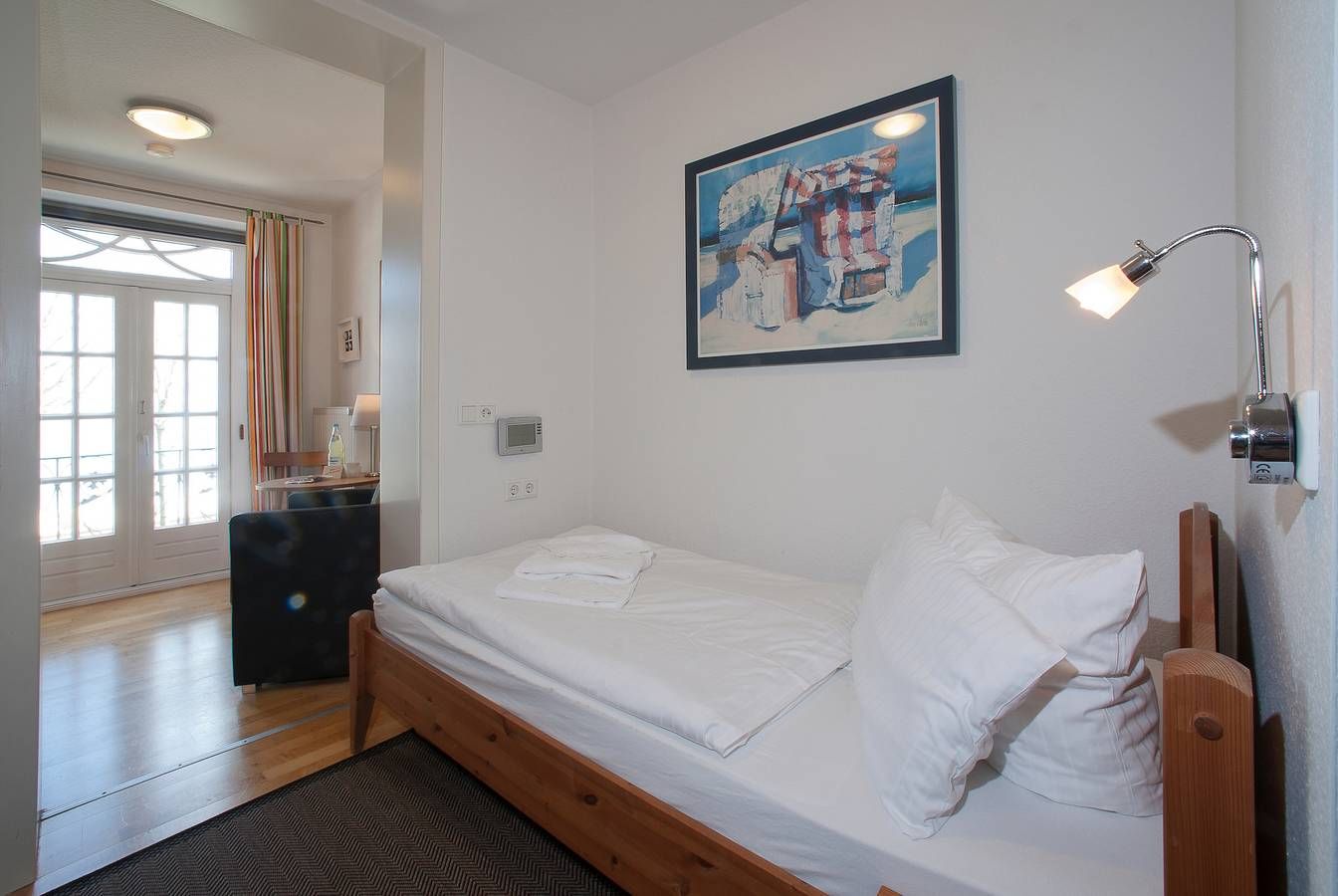 Moin und herzlich willkommen im Haus "Gud Hööb" - einem charmanten, historischen Haus mit acht Wohnungen, direkt im Herzen von Wyk. Beginnen Sie Ihren Tag mit einem kurzen Spaziergang von nur 20 Metern zum Meer - perfekt für einen erfrischenden Start in den Morgen - lassen Sie sich kulinarisch in einem der zahlreichen Restaurants oder Cafés entlang der Promenade verzaubern oder entdecken Sie kleine Schätze bei einem Einkaufbummel. Genießen Sie Ihren Urlaub in erster Reihe mit herrlichem Meerblick direkt von Ihrer Wohnung aus. Für zusätzlichen Komfort sind kostenfreie PKW-Stellplätze fußläufig zu erreichen. Ab 18 Übernachtungen ist die Erstausstattung mit Wäschepaketen inklusive, sodass Sie ganz entspannt in Ihren Urlaub starten können. Bitte beachten Sie, dass An- und Abreisen in der Hauptsaison und während der Ferienzeiten ausschließlich freitags möglich sind. Die charmante Wohnung 04 ist ein 1-Zimmer-Apartment in der ersten Etage und begeistert mit seiner einzigartigen Lage. Starten Sie Ihren Tag auf dem kleinen französischen Balkon mit einem herrlichen Blick auf die Wellen der Nordsee sowie das lebhafte Treiben am Sandwall. Die komplett ausgestattete Küchenzeile bietet alles, was Sie für eine unkomplizierte Urlaubsküche benötigen, während das bequeme Einzelbett für erholsame Nächte und süße Träume sorgt. Das kompakte Badezimmer mit Dusche und WC ergänzt den Komfort dieser einladenden Wohnung. Erleben Sie die Nordsee hautnah und lassen Sie sich von der einmaligen Lage und dem Komfort dieser Wohnung verzaubern. Wir freuen uns auf Ihren Besuch. Kostenfreier PKW-Stellplatz am Schwimmbad "AQUAFÖHR" oder auf dem "Heymannsparkplatz"