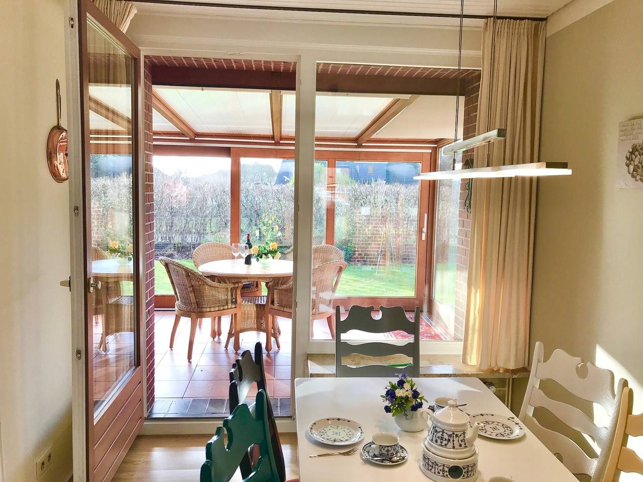 Lust auf Urlaub? Dann buchen Sie unsere schöne Ferienwohnung in Utersum! Auf 99 m² ist hier alles auf einen schönen Urlaub eingestellt. Die Wohnung im Erdgeschoß ist optimal für 4 - 6 Personen geeignet. Besonders herauszuheben ist der wunderschöne Wintergarten. Der große Garten bietet ausreichend Platz zum Sonnen, erholen und zum Spielen. Eine Waschmaschine , Trockner und Wäscheleinen im Garten steht den Gästen der beiden Wohnungen gemeinschaftlich zur Verfügung. Die Wohnung liegt nur wenige Meter vom wunderschönen Utersumer Strand entfernt. Hier können Sie sich auch sportlich mit serfen betätigen. Fußläufig vom Haus Heike befindet sich im Dorf ein Edekamarkt, ein Bäcker und Fahrradverleih sowie mehrere Restaurants und Cafés. Auf keinen Fall sollten Sie sich den berühmten und unvergesslichen Sonnenuntergang am Utersumer Strand entgehen lassen. In dem Haus Heike befinden sich zwei Ferienwohnungen, jeweils eine im Erd- und eine im Obergeschoss. Der Garten steht allen Gästen gemeinschaftlich zur Verfügung. Zusätzlicher Fernseher in einem der Schlafzimmer.