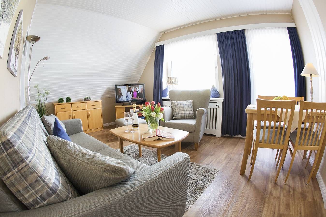 Informationen zum Gastgeber Sie wohnen zentral, aber zugleich in ruhiger Lage im historischen Ortskern Büsums. Fünf verschiedene Wohnungen erwarten Sie für einen erholsamen und erlebnisreichen Urlaub. Die Fußgängerzone, den Südstrand, den Hafen, das "Meerzeit Büsum" Wellenbad und Spa und das Gesundheitszentrum erreichten Sie in wenigen Gehminuten. Ein Bäcker befindet sich in unmittelbarer Nähe und ein Fahrradverleih gegenüber. Die Bettwäsche wird mit EUR 12,00 pro Person einmalig extra berechnet, kann jedoch auch gerne selber mitgebracht werden. Handtücher sind einmal inklusive - jedes weitere Set kostet EUR 3,00 pro Person. Konditionen/Extras Anreise zwischen 12:00 Unr 18:00 Uhr; Abreise zwischen 06:00 und 10:00 Uhr (oder nach Vereinbarung). Genaue Informationen zur Schlüsselübergabe werden nach der Buchung zugeschickt. Persönlicher Empfang bei der Anreise. Gerne stehen wir Ihnen für alle Auskünfte auch persönlich zur Verfügung. Anreisebeschreibung Mit dem Auto fahren Sie ab Hamburg durch den Elbtunnel, dann auf der A23 (Richtung Husum) über Itzehoe Richtung Heide. An der Abfahrt Heide West verlassen Sie die Autobahn und folgen der B 203 nach Büsum. Die Anfahrt erfolgt über die Westerstraße. Beschreibung. Die 3-Raum-Nichtraucher-Ferienwohnung mit ca. 47 qm befindet sich in der 1. Etage. Der Wohnraum ist mit Sofa, Sessel, Esstisch mit Stühlen und Flachbild-TV ausgestattet. Im Schlafzimmer befindet sich ein Doppelbett. Das Kinderzimmer ist mit zwei getrennt stehenden Betten und kleinem Flachbild-TV ausgestattet. Die seperate Kochnische verfügt über einen Herd, Mikrowelle, Kaffeemaschine, Wasserkocher, Toaster und Geschirr. Im Badezimmer finden Sie eine Dusche, WC und ein Waschbecken vor. Zur Ferienwohnung gehört ebenfalls ein Balkon. Konditionen/Extras Die Bettwäsche wird mit EUR 12,00 pro Person einmalig extra berechnet, kann jedoch auch gerne selber mitgebracht werden. Handtücher sind einmal inklusive - jedes weitere Set kostet EUR 3,00 pro Person. WLAN, ein abschließbarer Fahrradabstellraum sowie ein PKW-Stellplatz stehen zur Verfügung. Haustiere sind leider nicht gestattet.