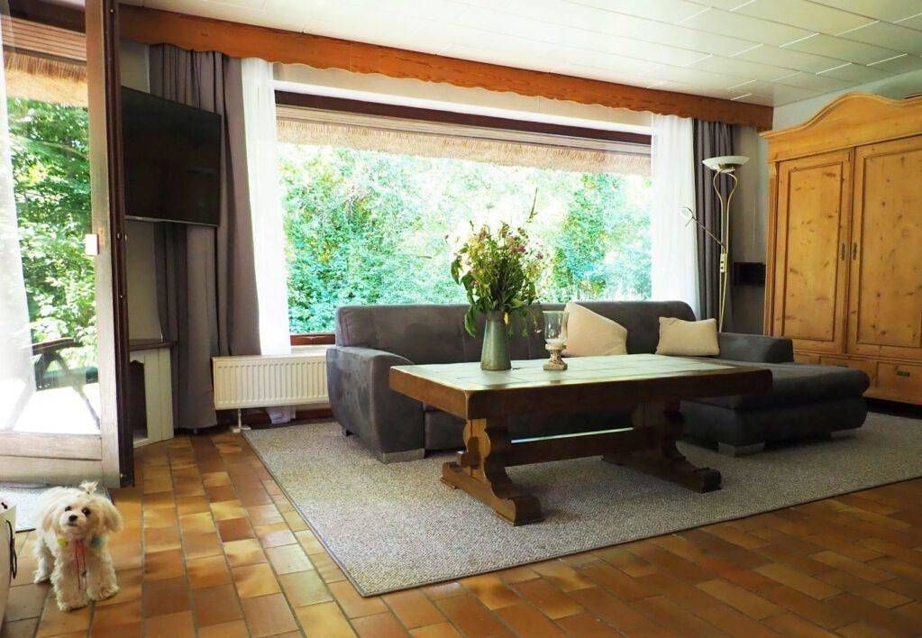 Ferienappartement EG, ca. 60 qm, 4 Personen, Hund auf Anfrage, WLAN (Hotsplot- kostenpflichtig) Wohn-Essraum mit Schlafsofa für 2 Personen, Kamin, SAT-TV, Leseecke mit 2 Sesseln. Küche mit Essbereich. Küche mit einer kleinen...