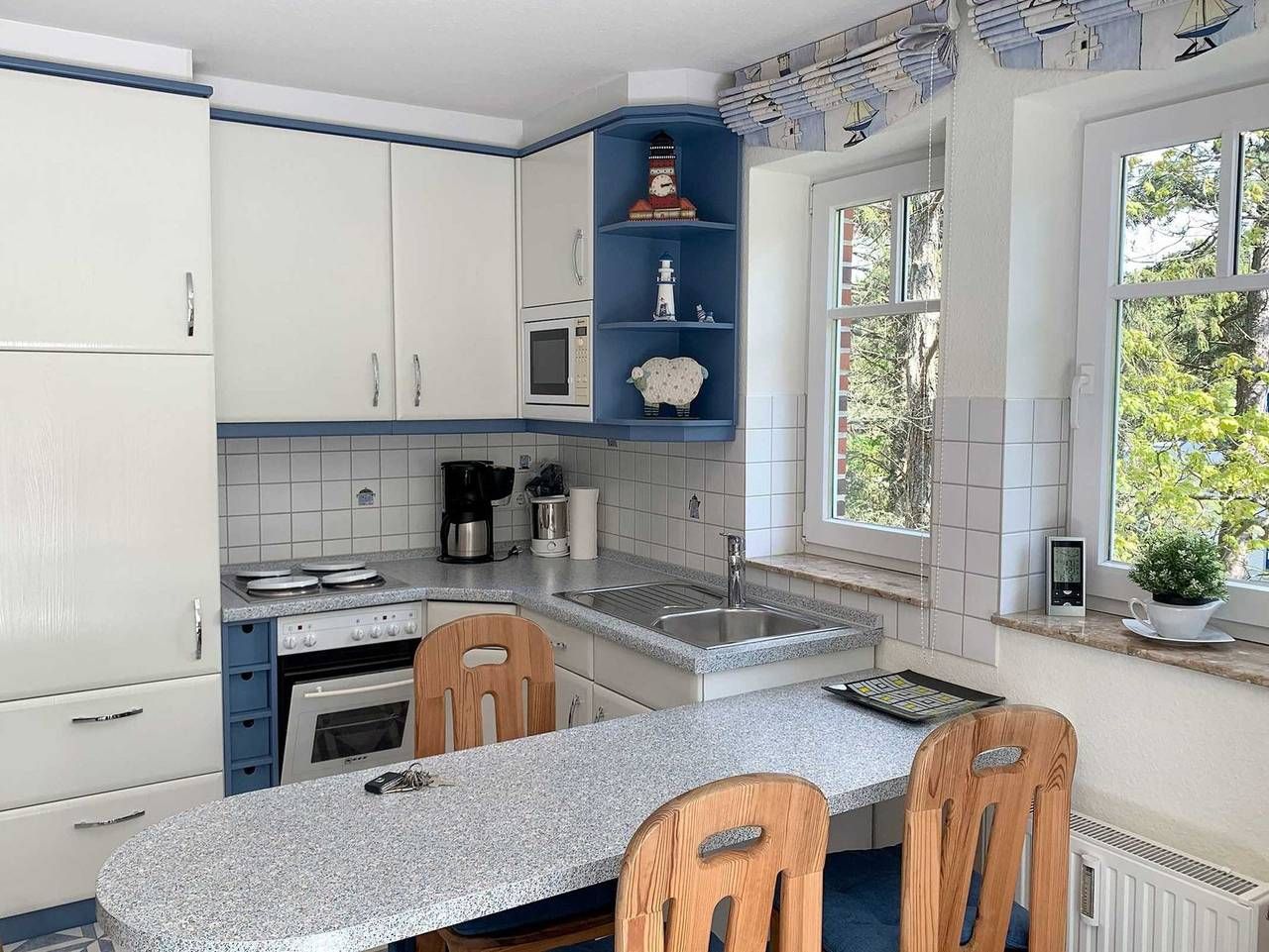 Die Ferienwohnung liegt im ersten Stock mit Blick in den Wald in St. Peter-Bad. Jeder Gast wird sich hier wohlfühlen. Du eine gemütliche Küchen - und Essecke, einen Wohnraum und einen Schlafraum. Ein kleiner Flur und Dusche/WC machen die schnuckelige Wohnung komplett. Auf dem Balkon in Süd-Ost-Lage mit Gartenmöbeln kannst du die Seele baumeln lassen und die gute Nordseeluft genießen. Ein PKW-Stellplatz gehört ebenfalls dazu., Nr. 5. Kostenloses WLAN Alle volljährigen Mitreisenden sind kurabgabenpflichtig