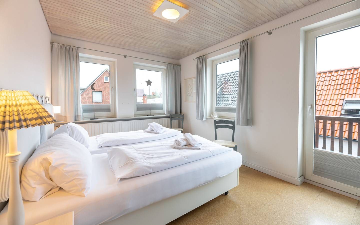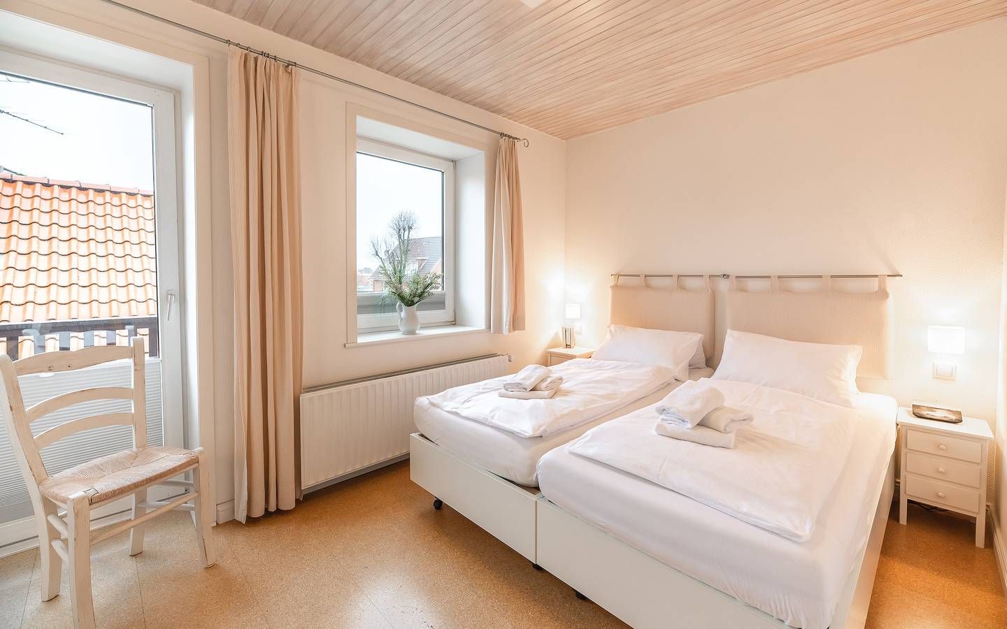 Das Haus in der Innenstadt mit seinen drei Ferienwohnungen Sylt, Amrum und Gröde eignet sich hervorragend für Paare, Familien und Freunde, die zentral und strandnah wohnen möchten. Die hervorragende Lage und die geschmackvolle Einrichtung der Wohnungen sprechen für sich.. Überzeugen Sei sich selbst! Die Wohnung "Sylt" im Haus in der Innenstadt befindet sich auf der ersten Etage und ist eine hervorragende Wahl für 2 bis 4 Personen. Die freundlich gestaltete Wohnung mit zwei Schlafzimmern, einem funktionalen Bad und einer sehr gut ausgestatteten Küche wird durch einen großzügigen Balkon ergänzt, von dem aus Sie über die Dächer der Innenstadt schauen können. Genießen Sie den Flair einer kleinen Inselstadt und erfreuen Sie sich an der zentralen Lage. Egal, ob Sie morgens schnell Brötchen holen, tagsüber mal eben vom Strand eine kurze Sonnenpause einlegen oder abends durch die Kneipen und Restaurants ziehen möchten... Sie befinden sich nach wenigen Schritten mitten im Geschehen. Ein eher seltener Luxus bei Wohnungen in der Innenstadt ist der wohnungseigene Parkplatz. In der selben Straße finden Sie zudem einen Waschsalon. Ihre Fahrräder können bei den Fahrradständern auf dem Hof abgestellt werden. Wir freuen uns darauf, Sie bei uns begrüßen zu dürfen! Bei Auswahl eines Kinderreisebetts wird dieses anstelle eines normalen Bettes bezogen. Sollten Sie das Kinderreisebett zusätzlich benötigen, buchen Sie bitte ein weiteres Wäschepaket hinzu, da wir nur bezogene Kinderreisebetten verleihen. ---------------------------------------- 2025: Infos zum Wäschepaket (obligatorisch): Unser Wäschepaket besteht aus der bezogenen Bettwäsche, 1 Duschtuch, 2 Handtüchern, 1 Geschirrtuch und einem Badvorleger und gehört obligatorisch zur Buchung dazu. Ab 21 Übernachtungen bieten wir auf Wunsch einen kostenfreien Wäschewechsel an. Zusätzlich können Handtücher und Duschtücher optional nach Bedarf einzeln hinzugebucht werden. Ab 2026 mehr Flexibilität und Individualität: Das bekannte Wäschepaket ist nicht mehr buchbar. Die Bettwäsche bleibt aus hygienischen Ansprüchen eine obligatorische Serviceleistung. Sie finden die Betten weiterhin bezogen vor. Doch Hand- und Duschtücher können Sie künftig entweder selbst mitbringen oder auf eigenen Wunsch einzeln optional hinzubuchen. Diese Variante ist aus betrieblichen Gründen erst für Buchungen in 2026 buchbar und entspricht dem Gästewunsch laut Umfrage nach mehr Flexibilität, Individualität und Nachhaltigkeit! Infos zum Präsentkorb Föhrer Inselkäse für 2 oder 4 Personen (Inhalte nicht austauschbar) Der Föhrer Präsentkorb für 4 Personen enthält: 200g Föhrer Naturkäse, 200g roten Föhrer Fruchtaufstrich, 430g Alkersumer Gemüsetopf, 6 Stangen (ca. 160g) Wattwürmer, 150g Landleberwurst , 125ml Föhrer Chutney und 0,33l Föhrer Biar. Der Föhrer Präsentkorb für 2 Personen enthält: 200g Föhrer Bärlauch-Käse, 200g Föhrer Fruchtaufstrich Apfel-Zimt, 430g vegane Linsenbolognese und ca. 130g mildem Landschinken vom Schwein.