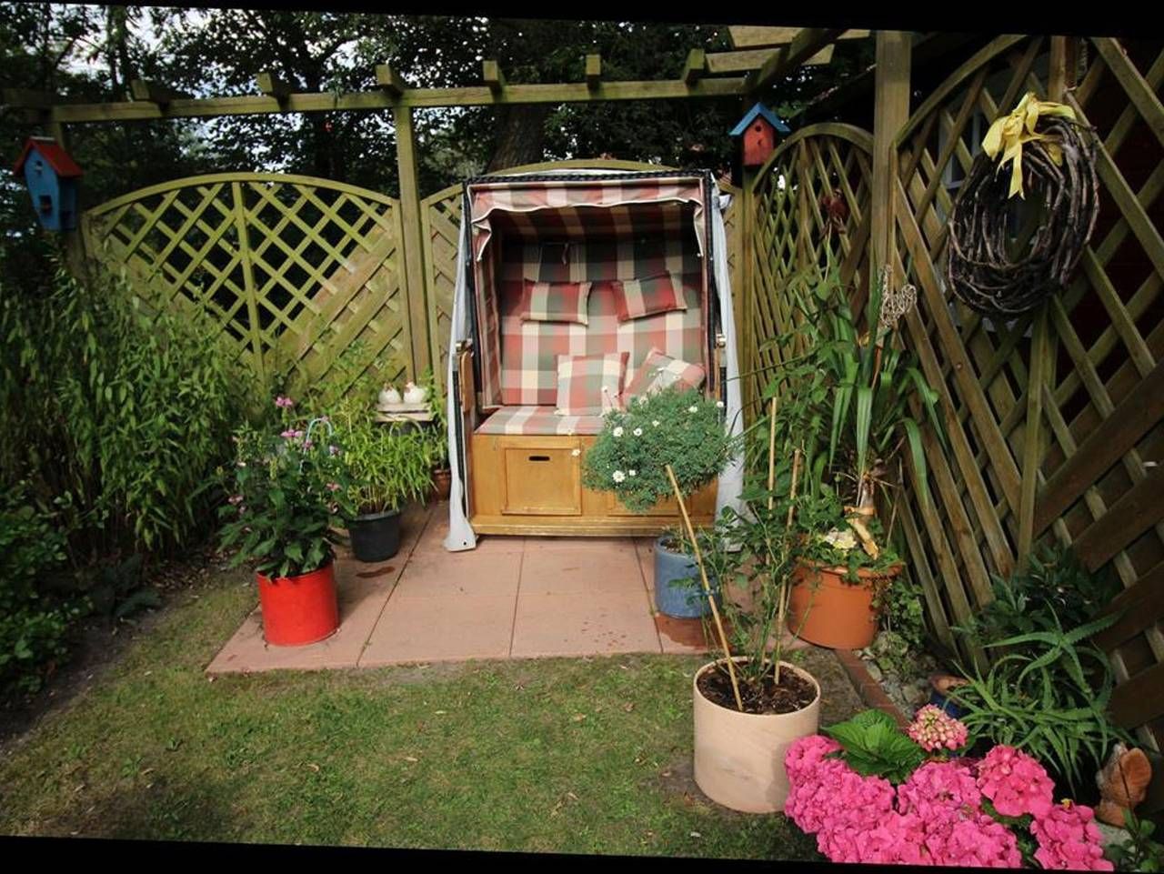 Herzlich willkommen in unserem kleinen Ferienhaus in Osterhever. Es befindet sich hinter unserem Wohnhaus im Garten. Es befindet sich in ruhiger, ländlicher Lage, Nahe am Ortseingang von Osterhever, hat eine Größe von 40 qm und ist für bis zu 3 Personen geeignet. Der schön angelegte, große Garten, Gartenmöbel, Gartenliegen und ein Strandkorb laden zum Erholen und Entspannen ein. In der gemütlichen, überdachten und wettergeschützten Gartenlaube können Grillabende verbracht werden. Ein Pkw-Stellplatz steht für Sie bereit. Die Entfernung zum nächsten Seedeich beträgt nur 3 km. Zusätzlich vermieten wir ein Doppelzimmer, das sich im Obergeschoss unseres Familienhauses befindet. Das gemütliche Ferienhaus hat eine Größe von 40 qm und ist für bis zu 3 Personen geeignet. Es besteht aus einem kombinierten Wohn-/Schlafraum mit Schrankbett, einer kleinen Sitzgruppe und SAT-TV. Einer komplett eingerichteten Küche, mit Geschirrpüler und Essplatz mit Blick die Felder und Wiesen. Im Kinderzimmer befindet sich ein Etagenbett. Das Tageslichtbad ist mit Dusche und WC ausgestattet. Bettwäsche und Handtücher werden ab 7 Nächten kostenfrei zur Verfügung gestellt. Unter 7 Nächten bringen Sie diese bitte selbst mit, oder halten gern mit Ihrem Vermieter Rücksprache.