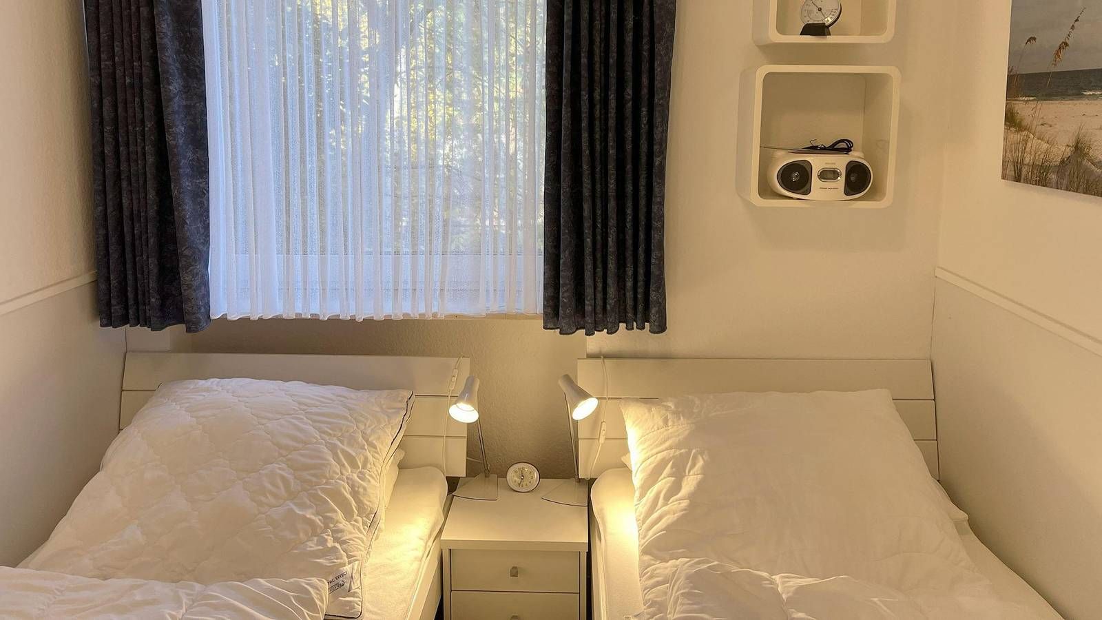 In zentraler und ruhiger Lage vom Ortsteil Bad in St. Peter-Ording liegt das Haus Königsfriesen. Die Ferienwohnung namens Rosenheim Nr. 5 für bis zu 2 Personen ist großzügig und gemütlich ausgestattet. Erholen Sie sich bei guter Nordseeluft auf dem Balkon in Süd-Westlage. Im Wohnbereich finden Sie einen Farbfernseher mit Kabel-TV, einem kostenfreien WLAN-Zugang und eine Mini-Stereoanlanlge. Das hochwertige Sofa lässt sich zum Schlafsofa umfunktionieren und im Relax-Sessel finden Sie auch die nötige Entspannung. In der modernen Küche finden Sie alles, was man zur Selbstverpflegung benötigt. Das Schlafzimmer ist mit 2 zusammenstellbaren Einzelbetten ausgestattet und hier finden Sie einen guten Schlaf. Pkw-Stellplatz auf dem Grundstück, Nr. 5. Von hier erreichen Sie den Badestrand in ca. 15 Gehminuten und das Zentrum in ca. 5 Minuten zu Fuß. Hier finden Sie Geschäfte und Boutiquen zum Bummeln, gemütliche Restaurants laden zum Schlemmen ein. Für Wellness und Badespaß sorgt die Dünentherme, ebenfalls im Zentrum gelegen. In Bad finden Sie die bekannte Seebrücke, über 1000 Meter lang, welche direkt zum Strand führt. Auszeichnung Nichtraucher keine Haustiere Parkplatz Küche Geschirrspüler Cerankochfeld 4-Platten Herd Dunstabzugshaube Mikrowelle Backofen Toaster Kaffeemaschine Kühlschrank mit Gefrierfach Wasserkocher Bad/Sanitär Duschbad Fenster im Bad Fön Wäscheständer Waschmaschine/Trockner im Haus gegen Gebühr Technik WLAN (ohne Gewähr) TV DVD-Player Radio Aussenbereich Balkon Gartenmöbel ( 01.04 bis 30.10 ) Ausstattung 2 Einzelbetten 90 x 200 Schlafsofa Bettwäsche und Handtücher optional Nachtspeicherheizung Haustierfreie Unterkunft Willkommen in unserem Haus Königsfriesen, welches im Ortsteil Bad liegt. Von hier erreichen Sie den langen traumhaften Strand in nur 15 Gehminuten und das Zentrum in nur 5 Gehminuten. Restaurants laden zum schlemmen und Geschäfte zum bummeln ein. Auch die Dünentherme liegt im Zentrum, dort finden Sie Wellnes und Badespaß pur. Haustier nur in der WOHNUNG 3 möglich. Pkw-Stellplatz auf dem Grundstück Waschmaschine u. Trockner im Haus für die Gemeinschaft gegen eine Gebühr Bett- und Badwäsche gegen eine Gebühr zusätzlich gebucht werden. Haustier nur in der WOHNUNG 3 möglich. Das Laden von Elektrofahrzeugen über den Hausstrom ist nicht gestattet. Die Anreise ist zwischen 15.30 und 17.00 Uhr möglich. Am Abreisetag steht Ihnen das Ferienobjekt bis 10.00 Uhr zur Verfügung.