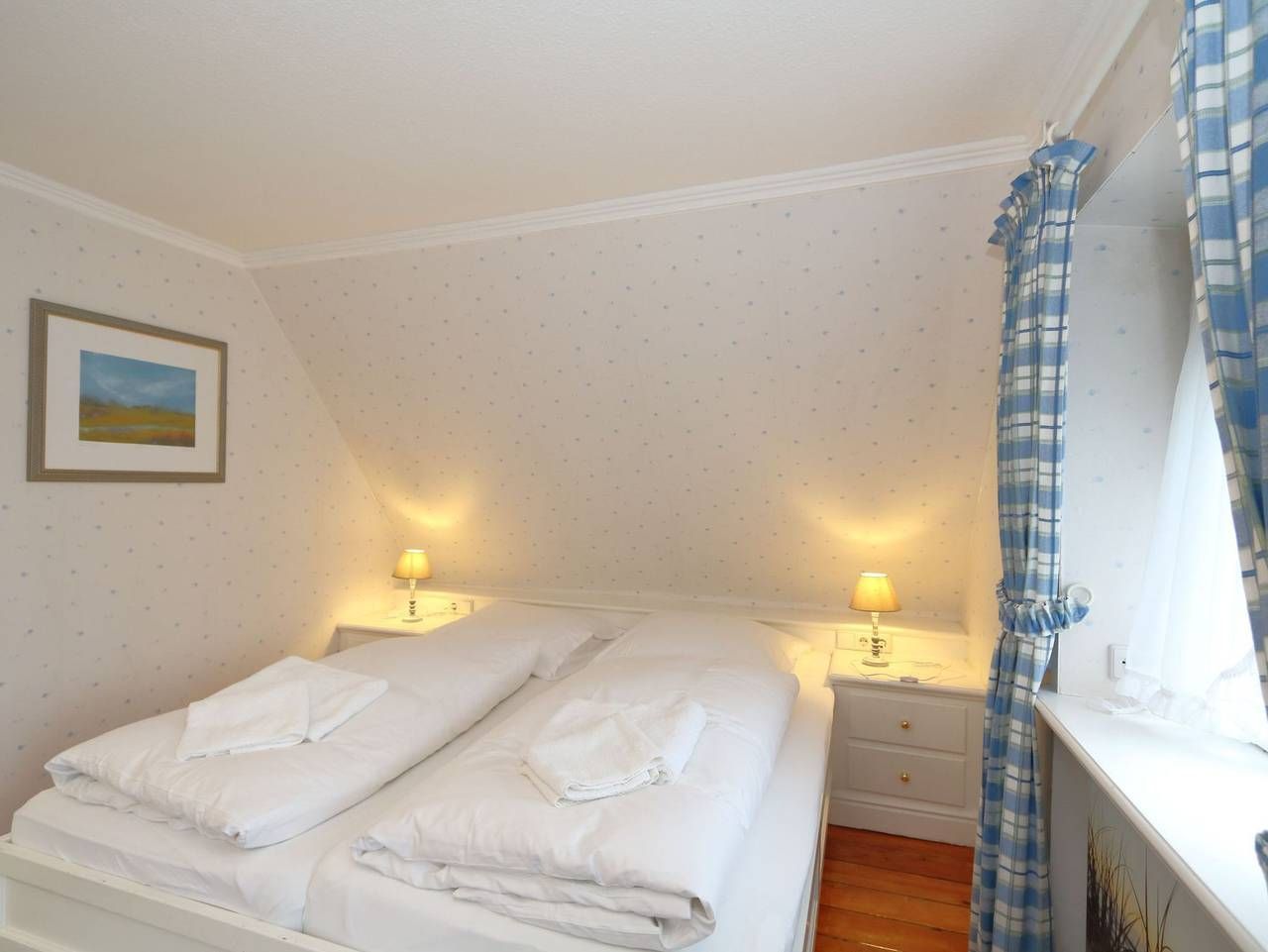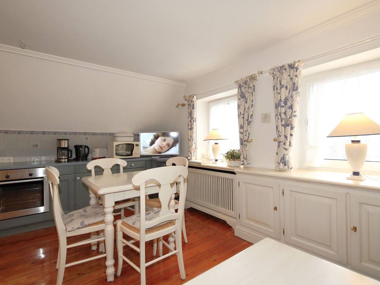 Haus Krauthahn DG Lage: Diese Appartement befindet sich im Obergeschoss eines kleinen Appartementhauses mit insgesamt drei Ferienwohnungen in Alt-Westerland in sehr ruhiger Lage. Zum Strand beträgt die Entfernung ca. 850 m. Das Stadtzentrum erreichen Sie in ca. 15 Gehminuten. Größe: 2-Zimmer-Appartement ca. 45 m² für bis zu zwei Personen. Ausstattung: Das Wohnzimmer hat eine bequeme Couchgarnitur, die auch als Schlafgelegenheit dienen kann. Die im Wohnzimmer untergebrachte Küchenzeile ist komplett ausgestattet. Die gesamte Wohnung ist im „Laura Ashley“ Stil eingerichtet und hat viele liebevolle Details. Vom Schlafzimmer mit dem Doppelbett gelangt man auf die uneinsehbare Dachterrasse mit Balkonmöbeln und Strandkorb. Im Bad mit Dachfenster ist eine Dusche. Ein Haustier kann nach Absprache gerne mitgebracht werden. Es handelt sich um eine Nichtraucherwohnung. PKW-Stellplätze befinden sich auf dem Grundstück. Bitte beachten Sie die Regelung zur gesonderten Kurtaxe der jeweiligen Gemeinde auf Sylt. Diese wird gesondert berechnet und ist spätestens bei Anreise fällig Aufgrund der positiven Rückmeldungen ist das Wäschepaket jetzt mit in dem Tagespreis enthalten. Wenn Sie keine Wäsche wünschen, bitten wir Sie, die Wäsche 48Stunden vor Anreise explizit und schriftlich abzubestellen. Vielen Dank.